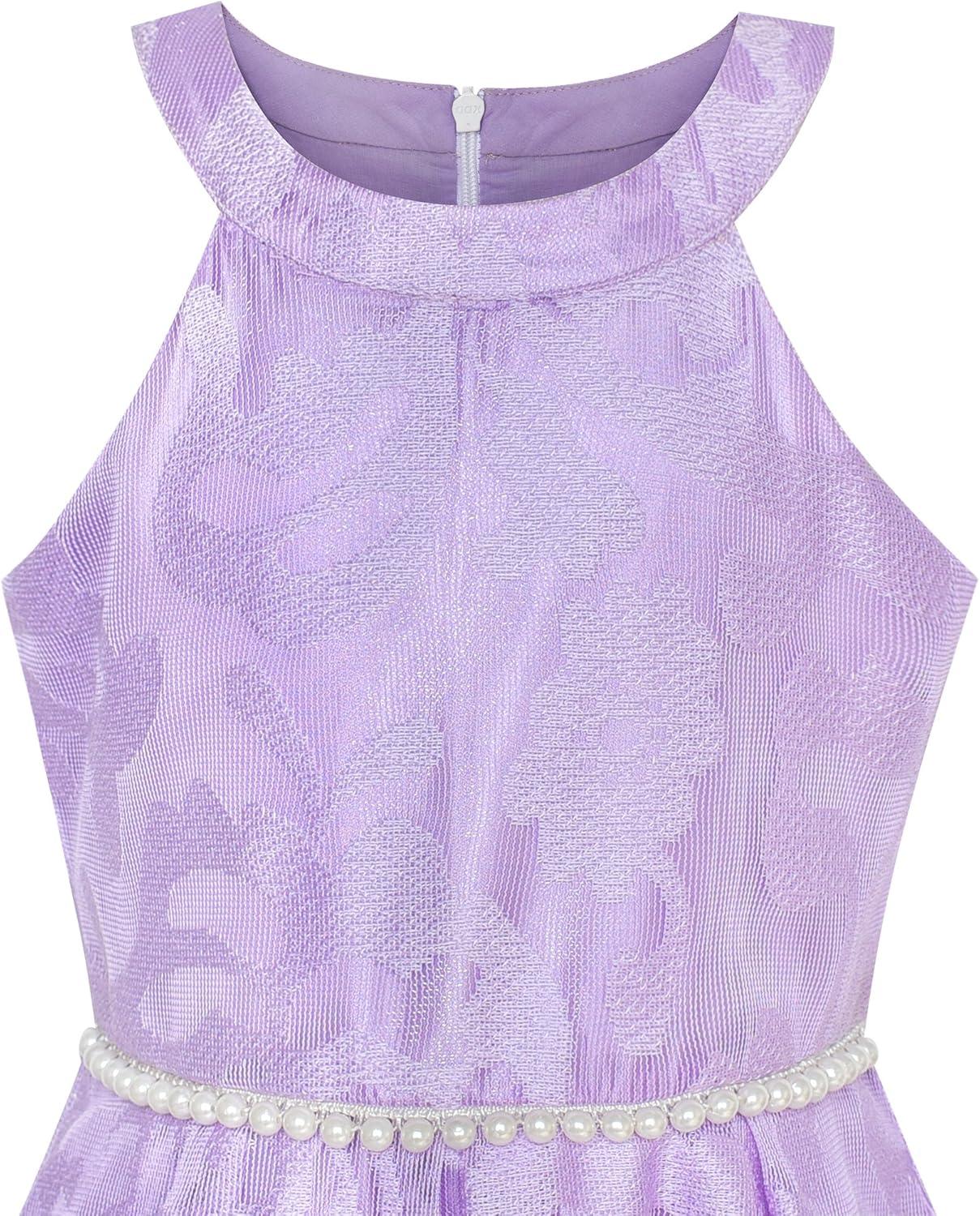 - Sunny Fashion Flower Girls Dress Halter Dress Pearl Party Wedding Birthday(Light Purple)