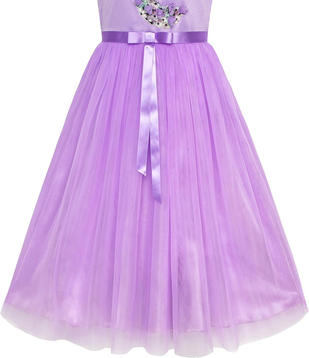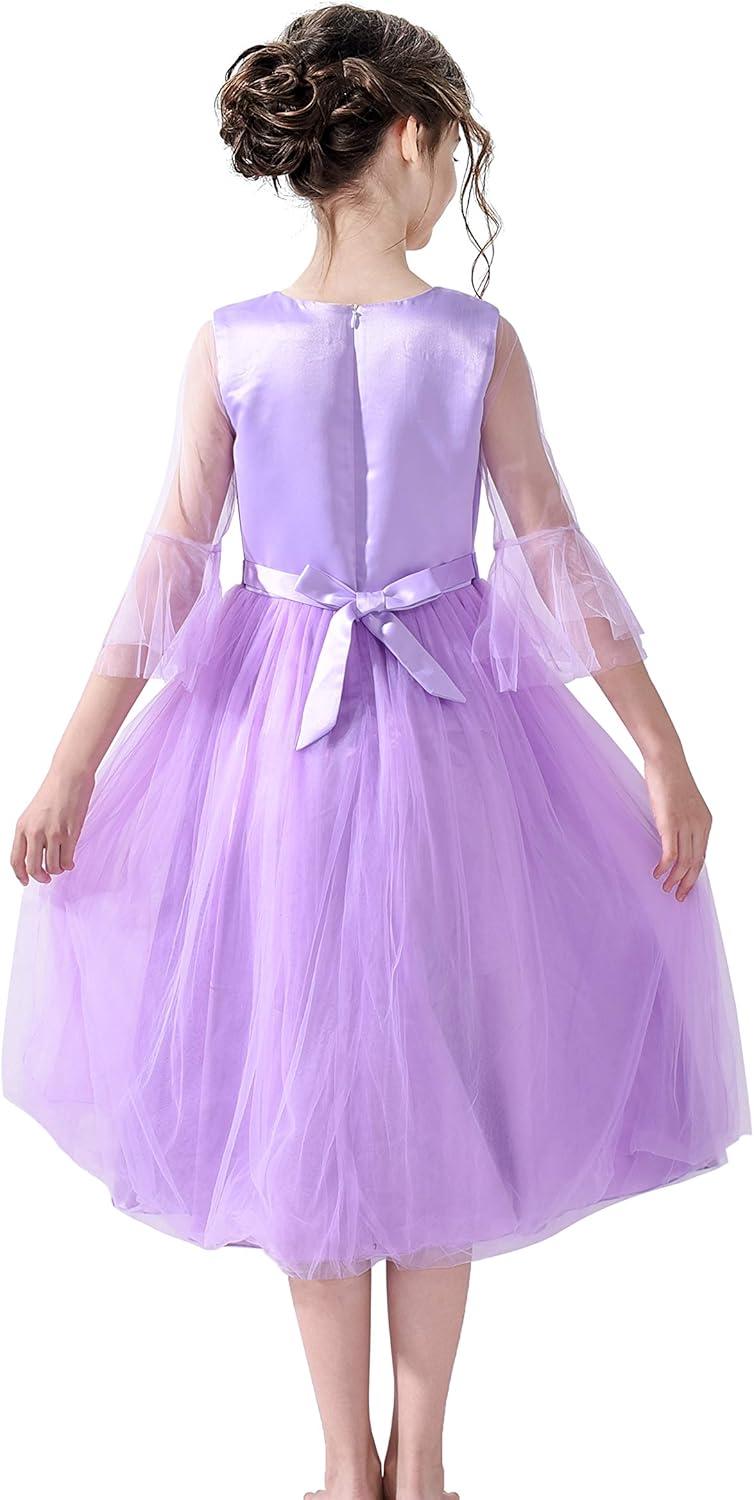 - Sunny Fashion 3 Layers Girls Dress Sunflower Wave Pageant Bridesmaid Kids(Light Purple)