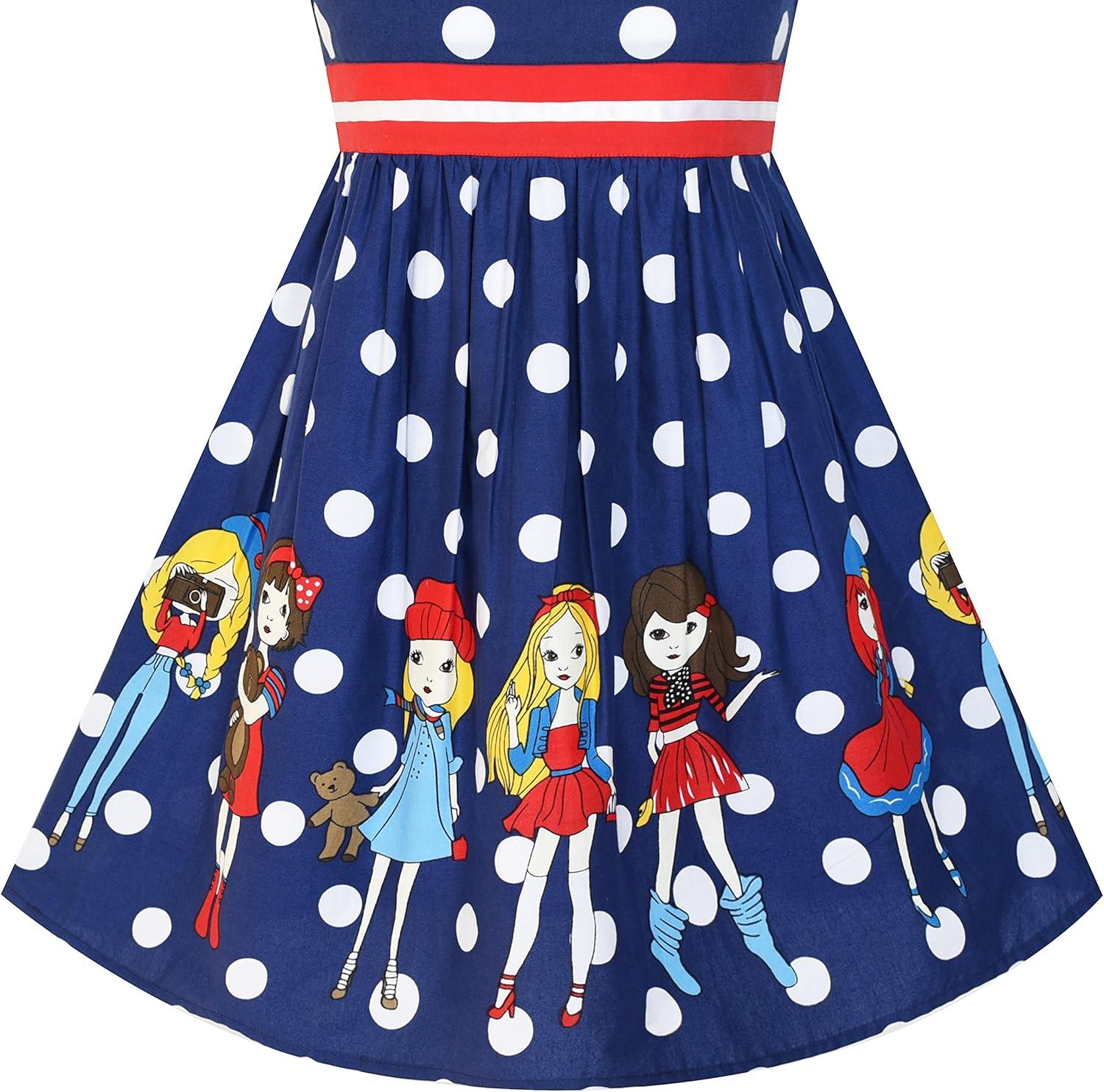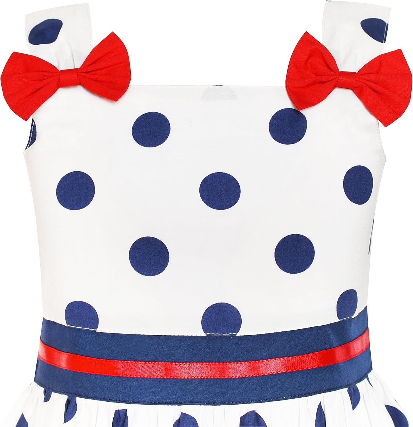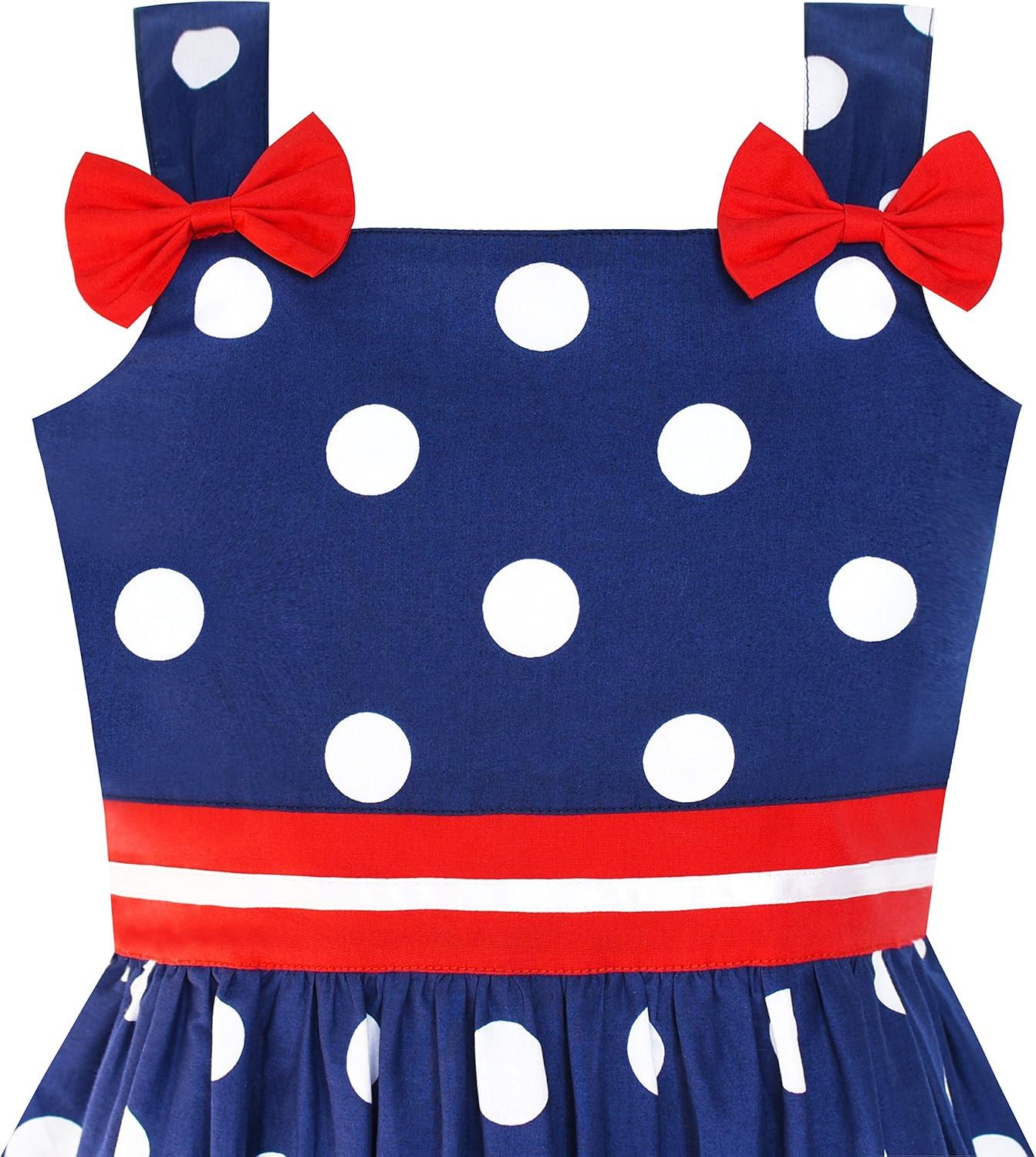 - Sunny Fashion Girls Dress Ladybug Polka Dot Bow Tie(Blue National Day)