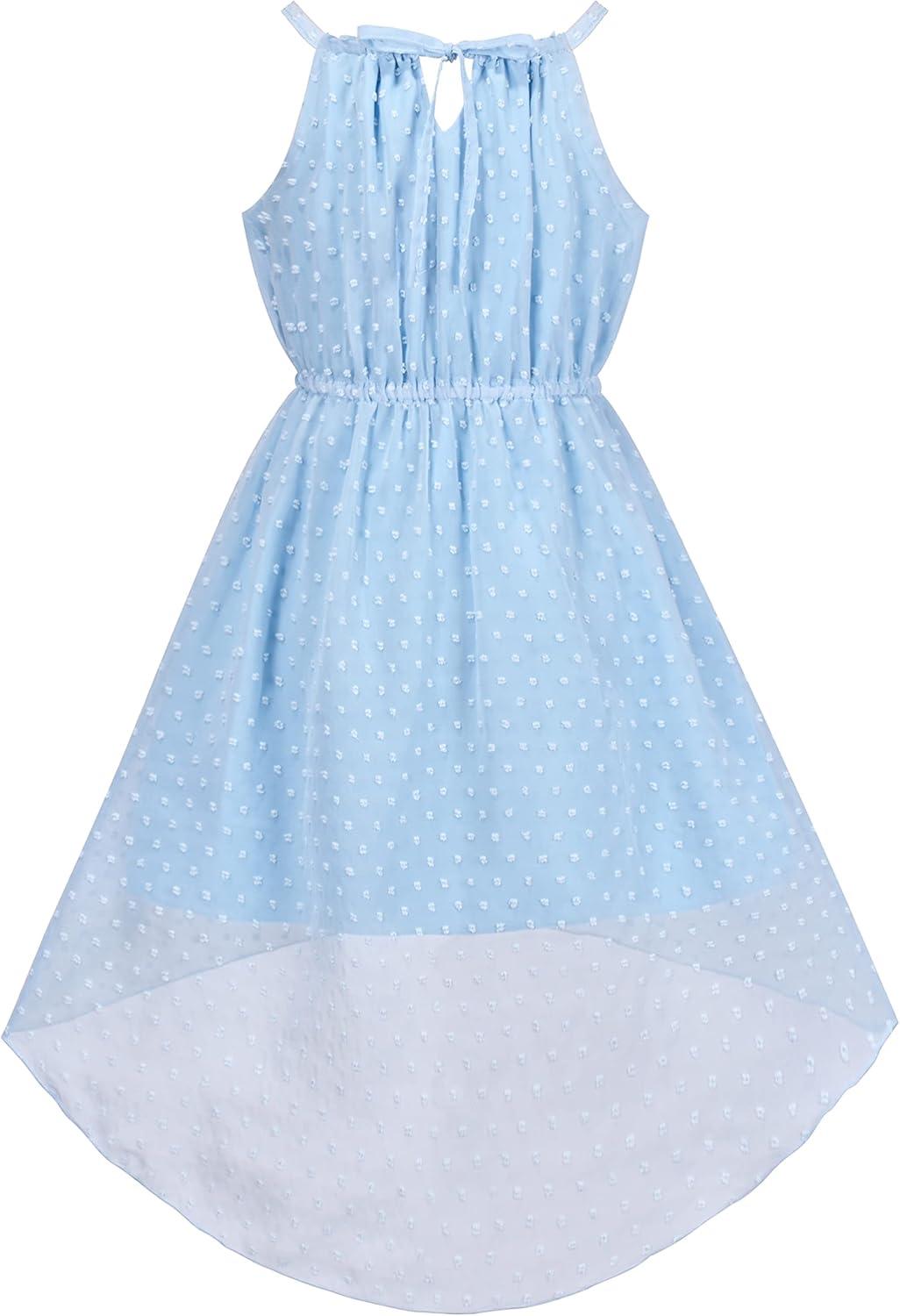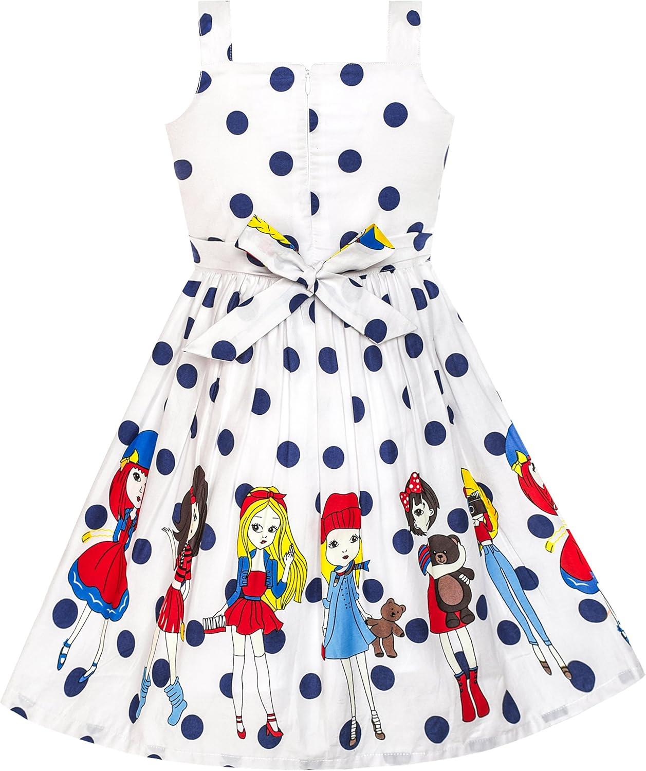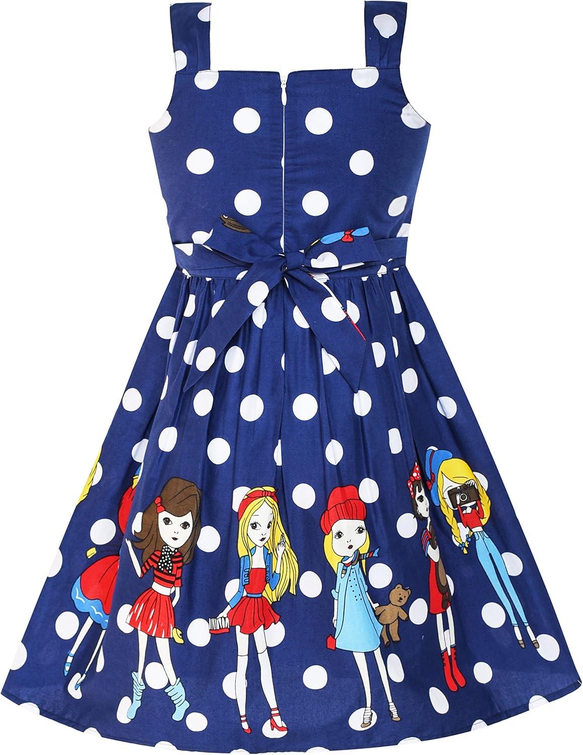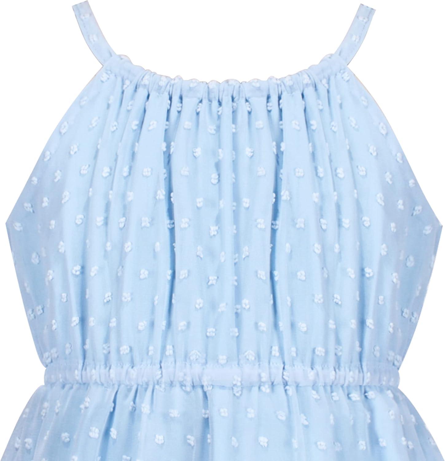 - Sunny Fashion Girls Dress Yellow Leaf Sleeveless Summer Party Size 6-12(Blue Swiss Dot)