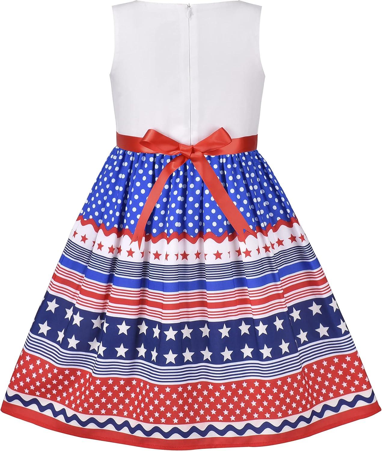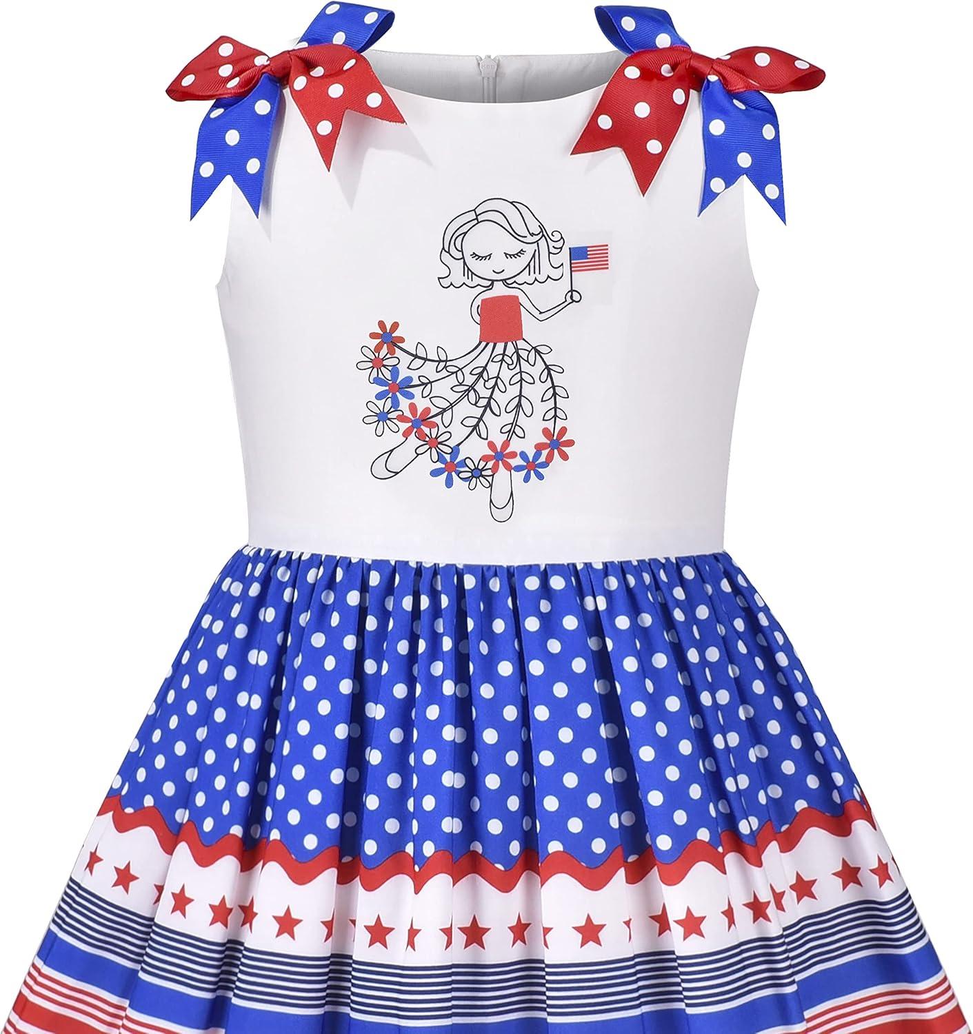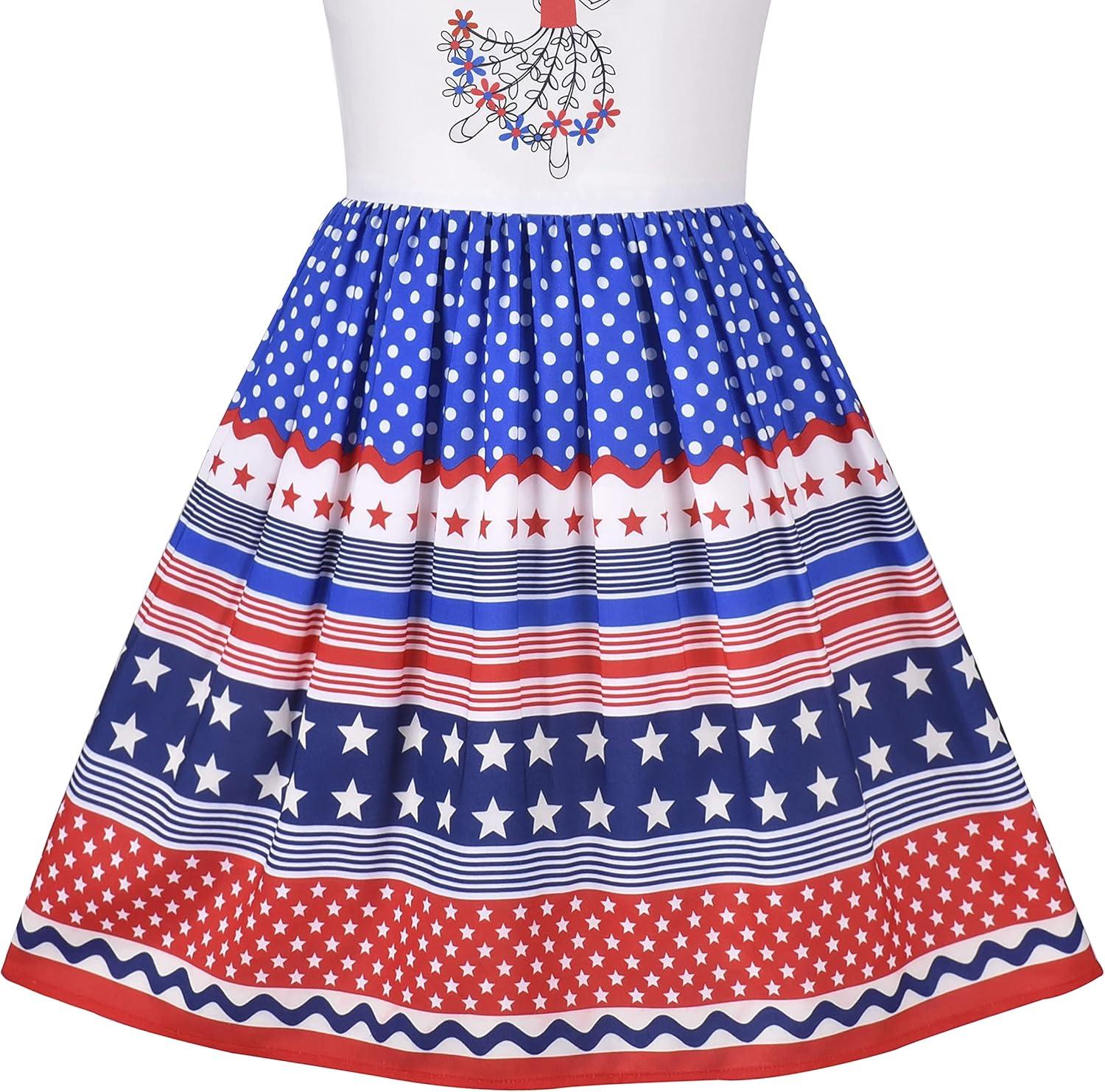 - Sunny Fashion Girls Dress Flower Print Hanky Hem Princess Size 7-14(American Flag Blue)