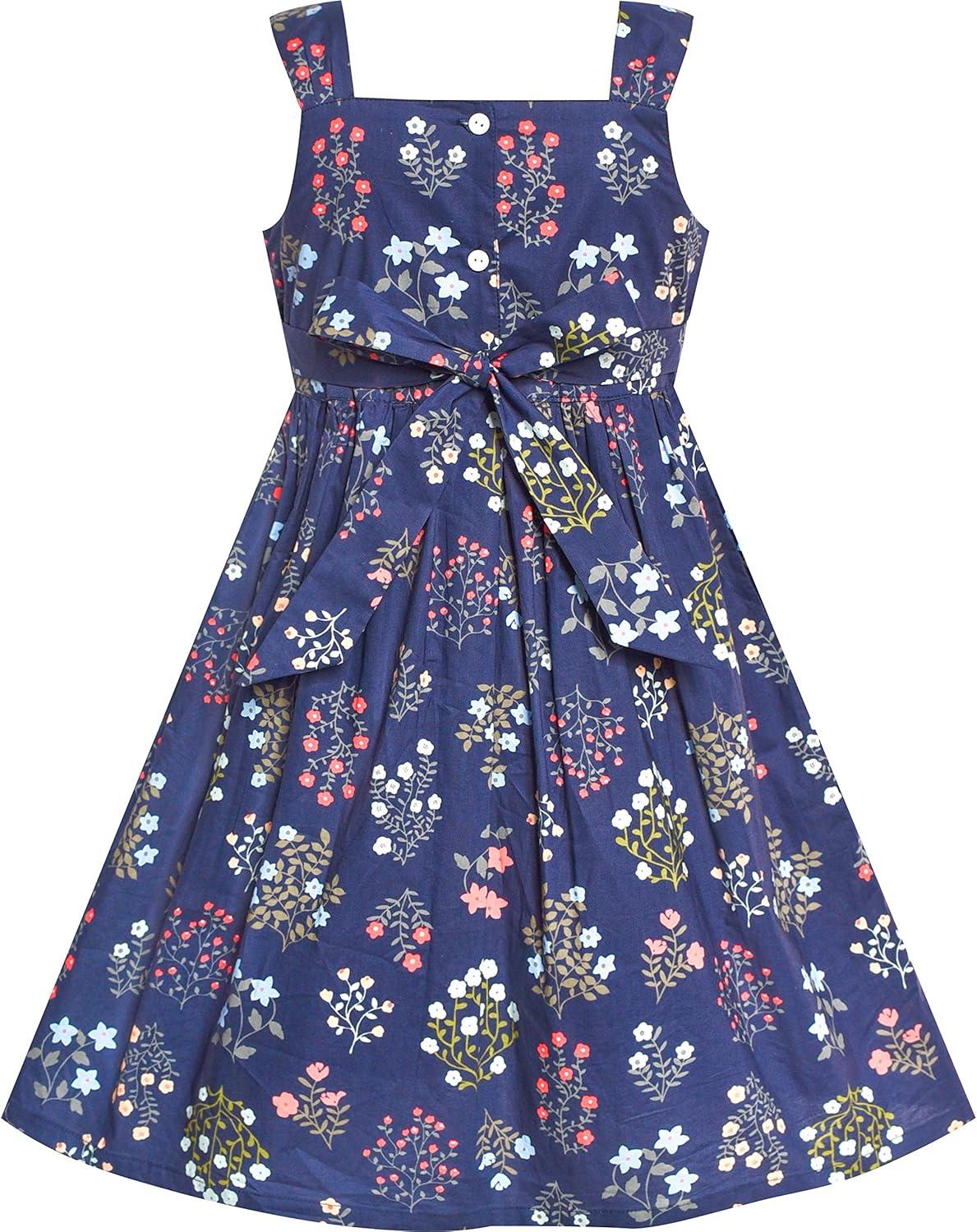- Sunny Fashion Girls Dress Flower Print Hanky Hem Princess Size 7-14(Navy Blue)