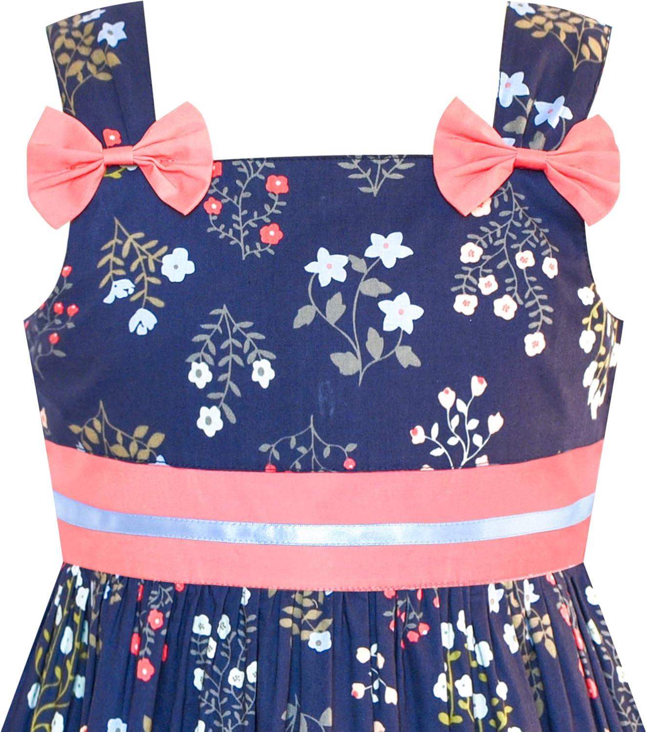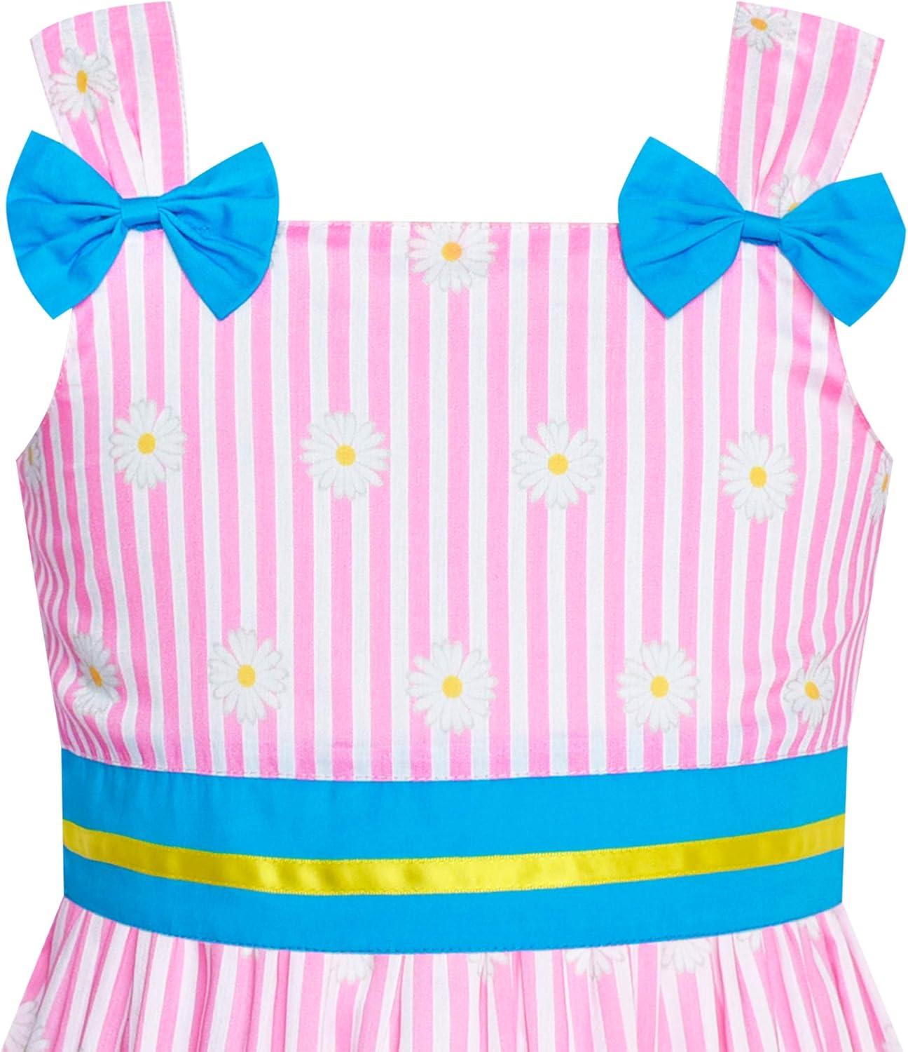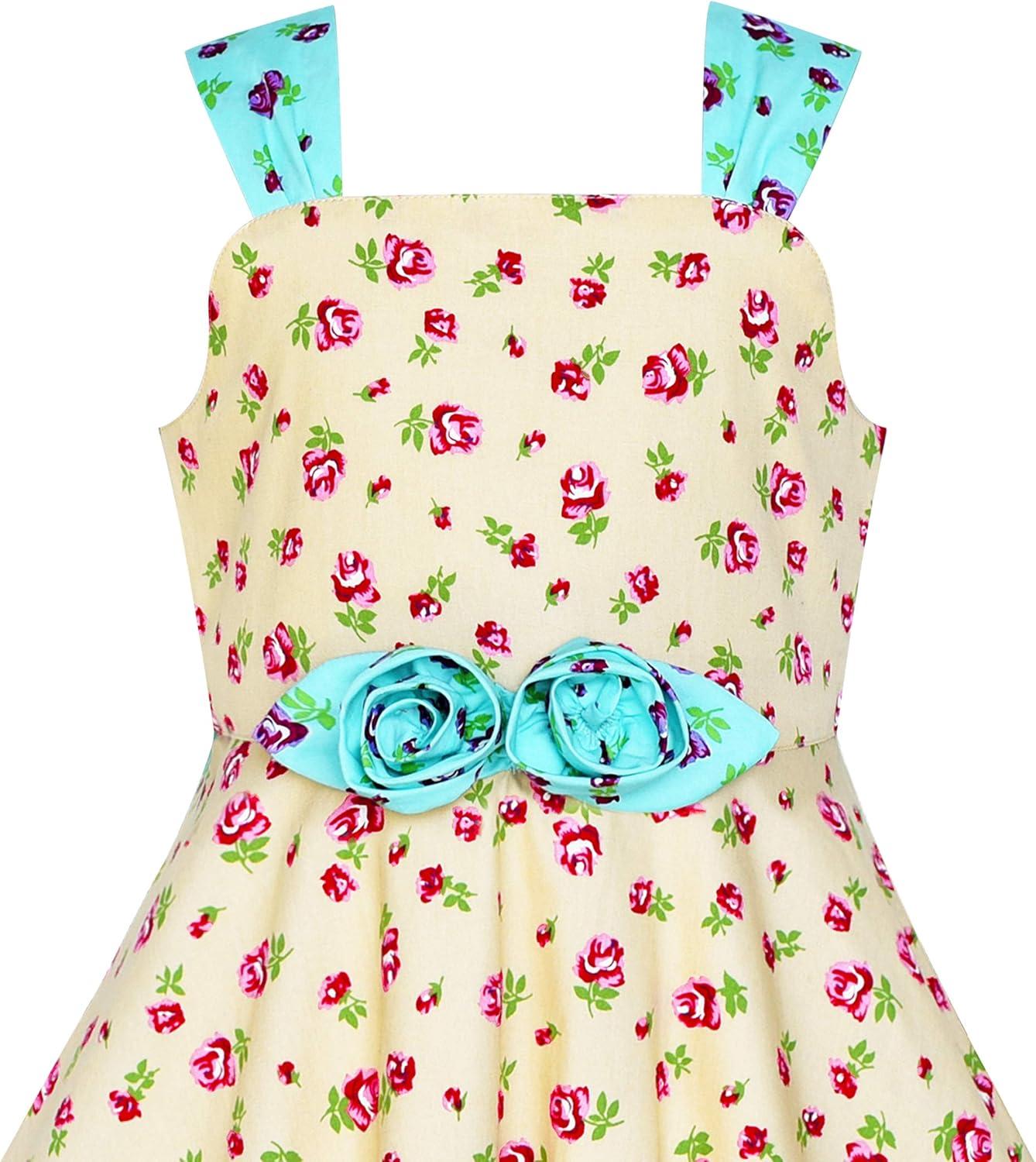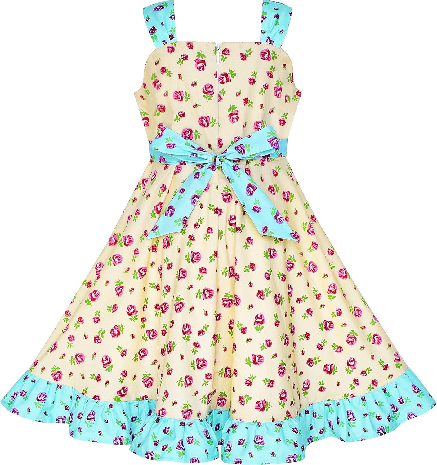 - Sunny Fashion Girls Dress Yellow Leaf Sleeveless Summer Party Size 6-12(Pink Blue Flower)