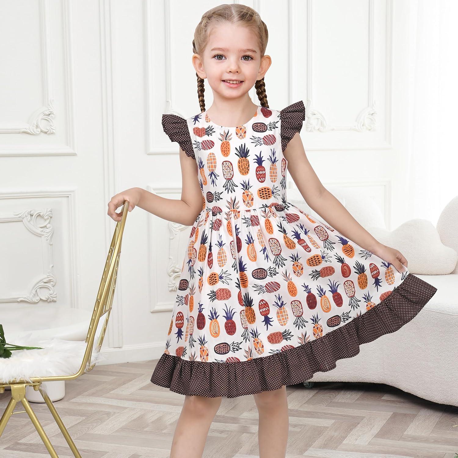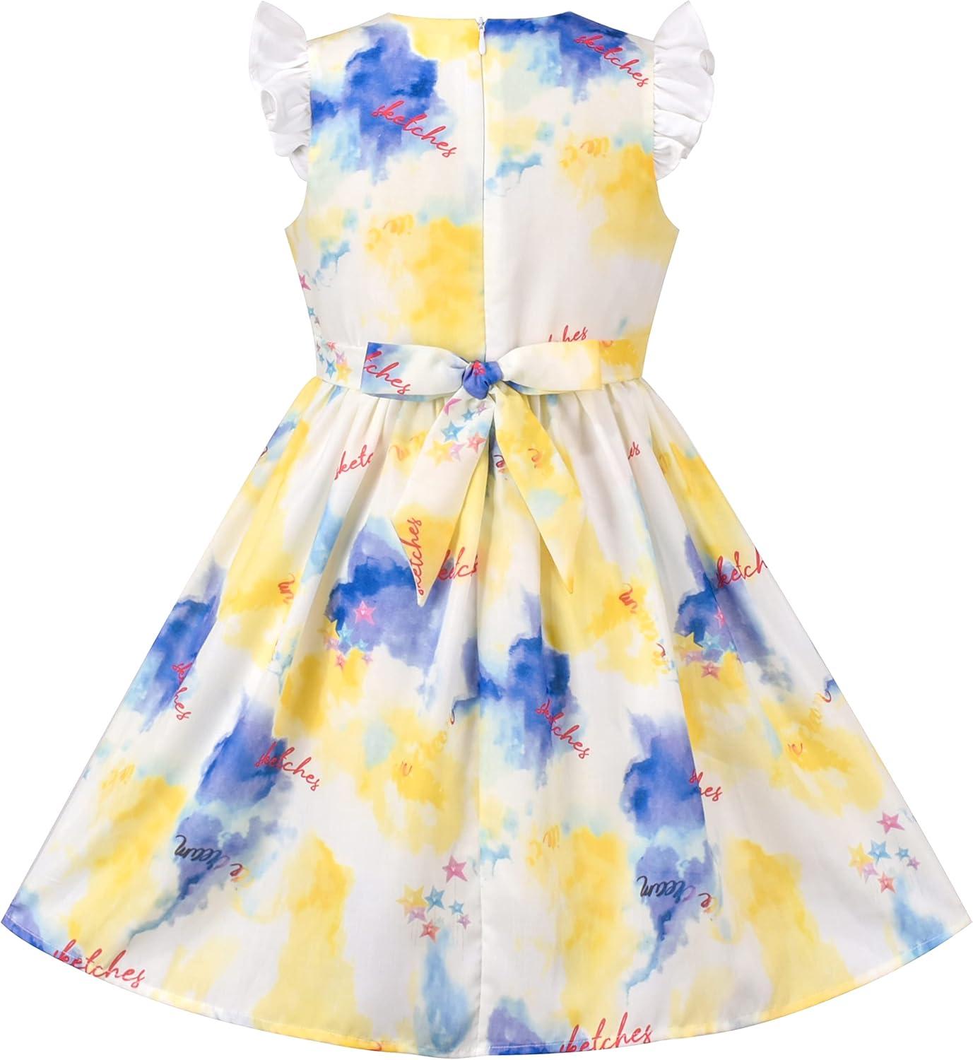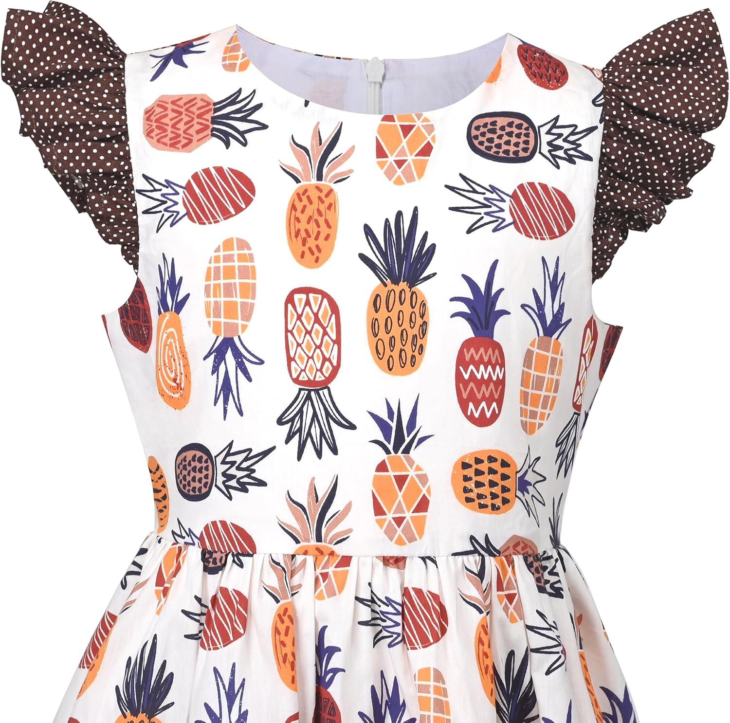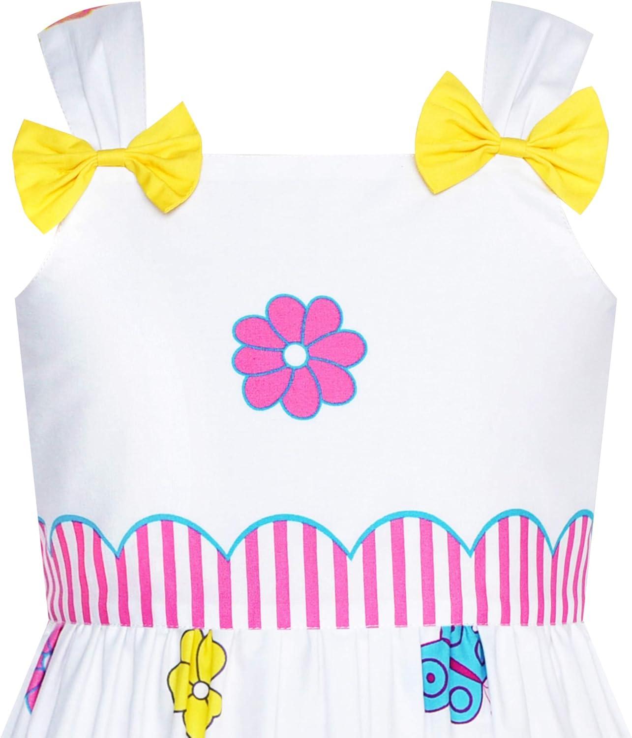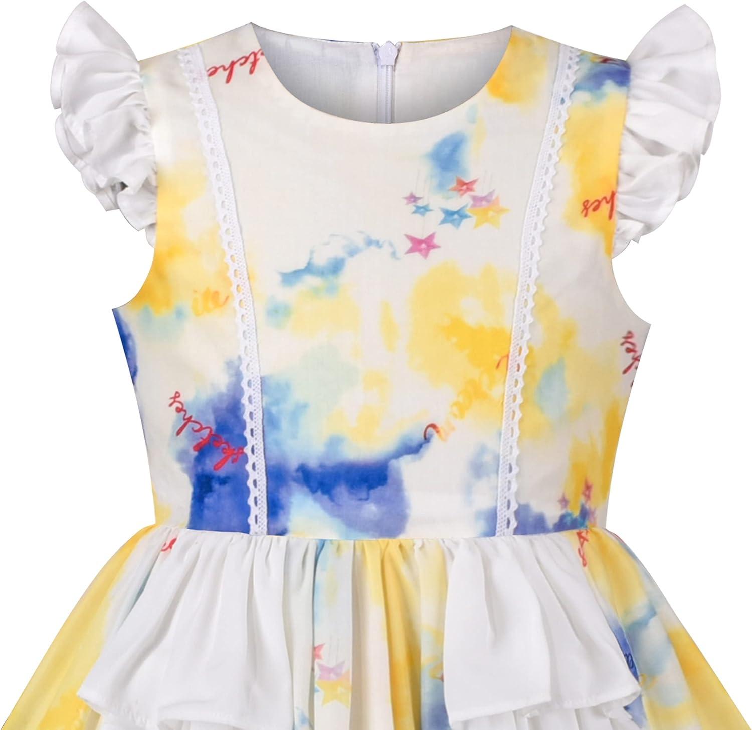- Sunny Fashion Girls Dress Yellow Leaf Sleeveless Summer Party Size 6-12(Pink Blue Flower)
