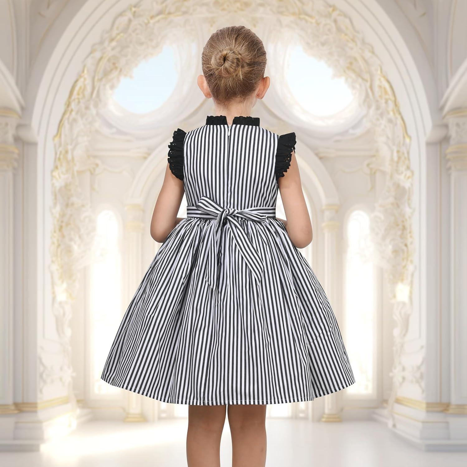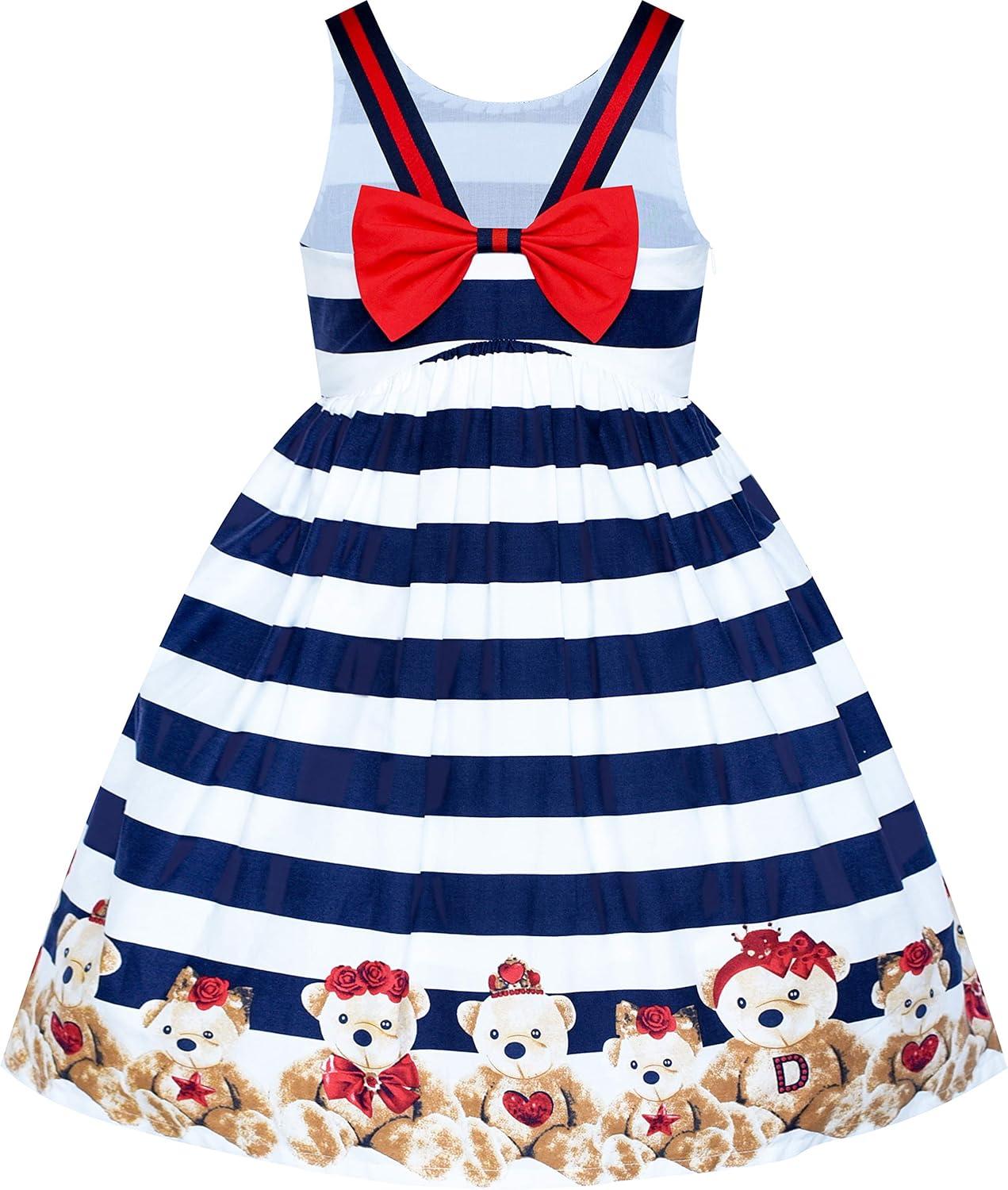 - Sunny Fashion Girls Dress Ladybug Polka Dot Bow Tie(Blue Striped)
