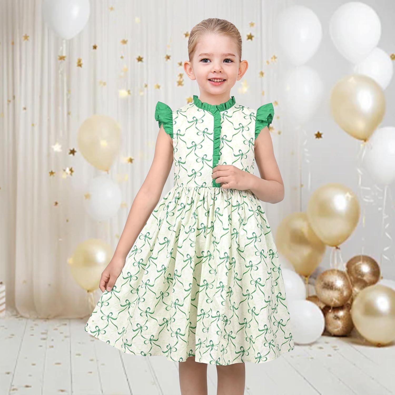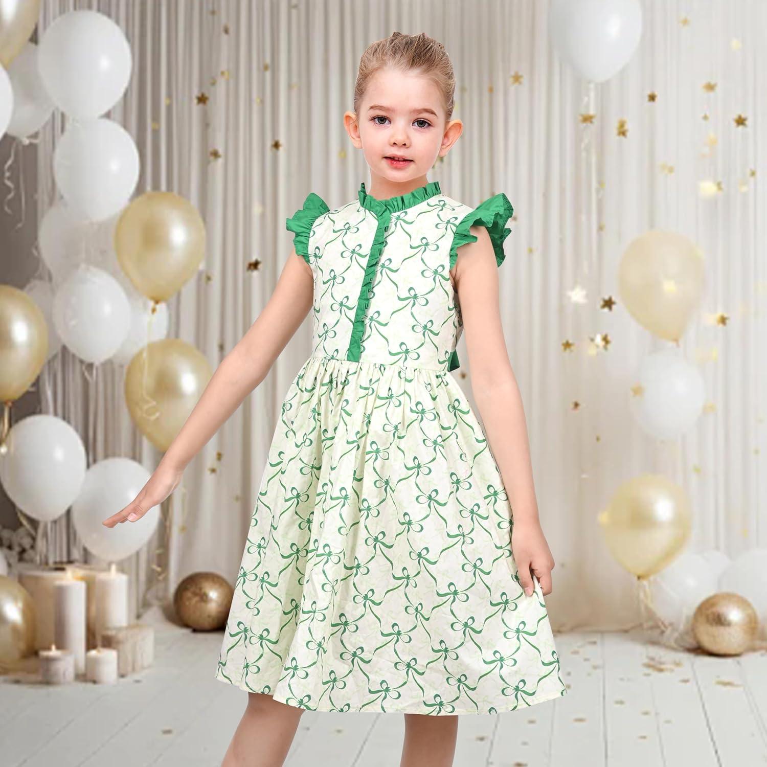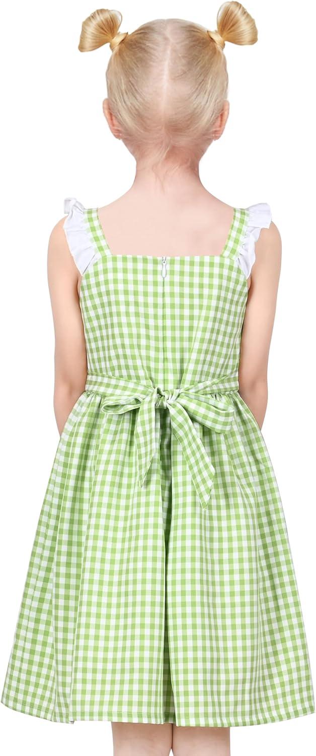 - Sunny Fashion Girls Dress Ladybug Polka Dot Bow Tie(Green Plaid)