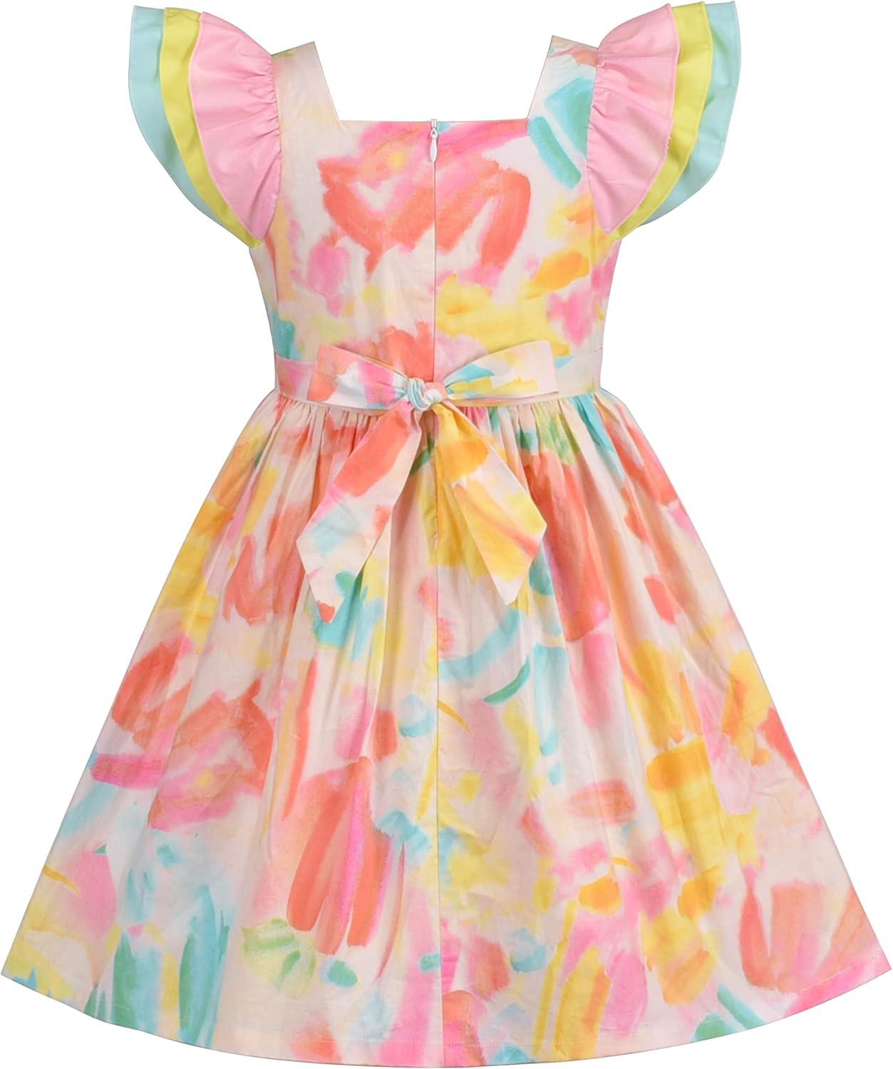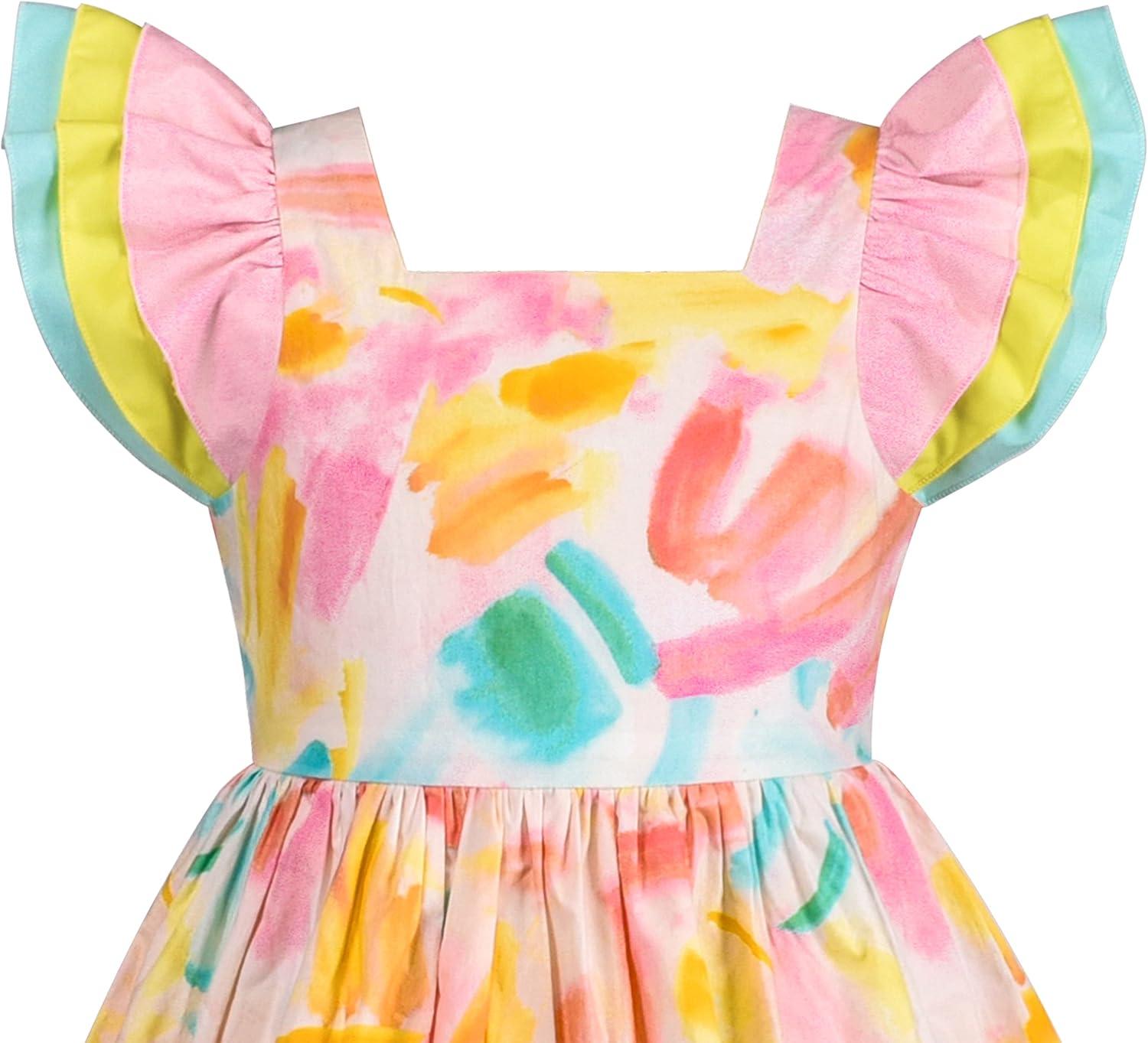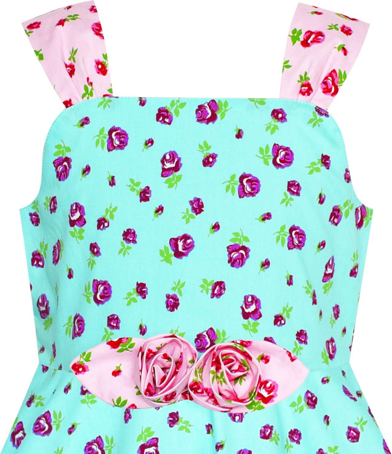 - Sunny Fashion Girls Dress Cotton Flower Square Collar A Line Ruffle Flare(Multi-color)