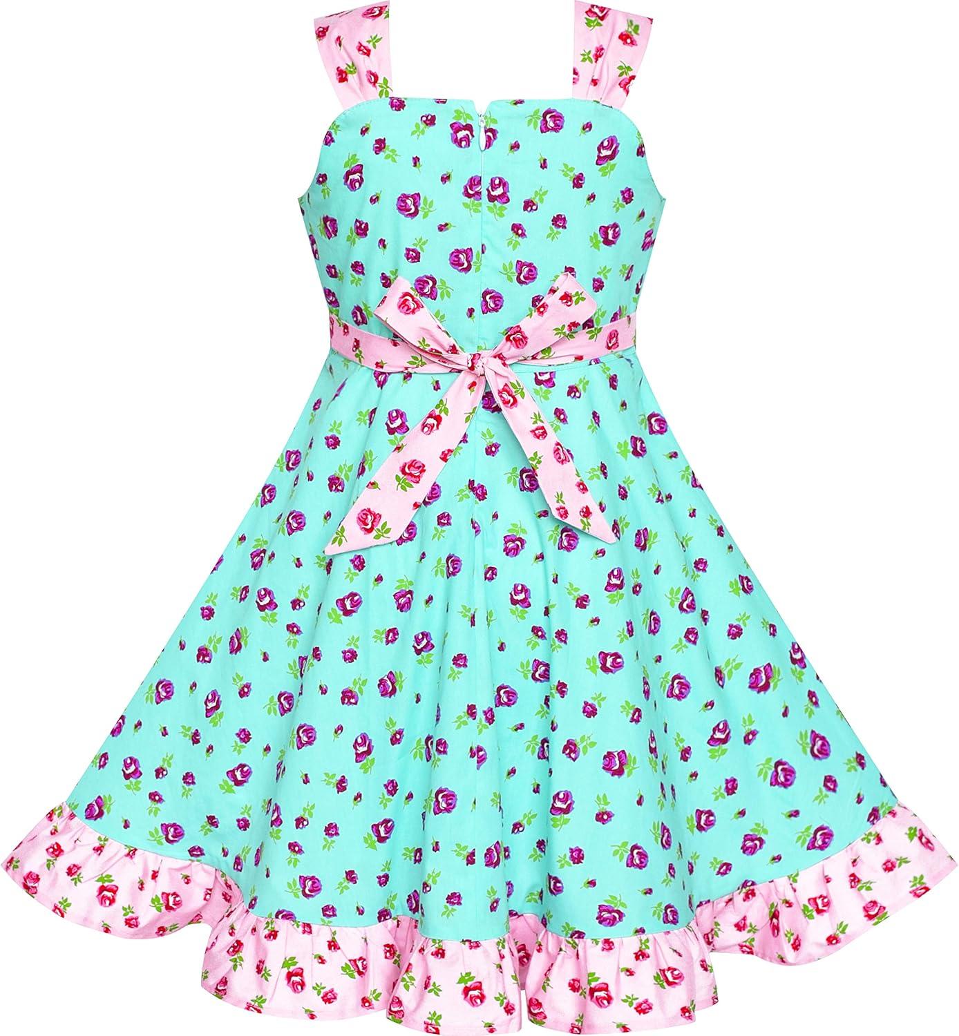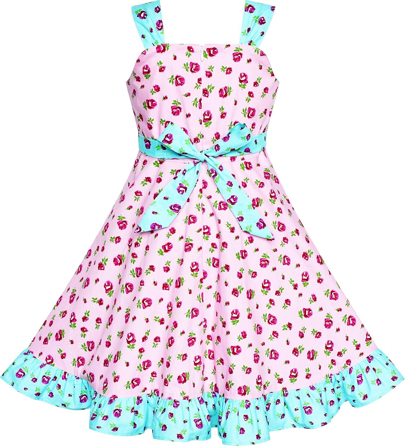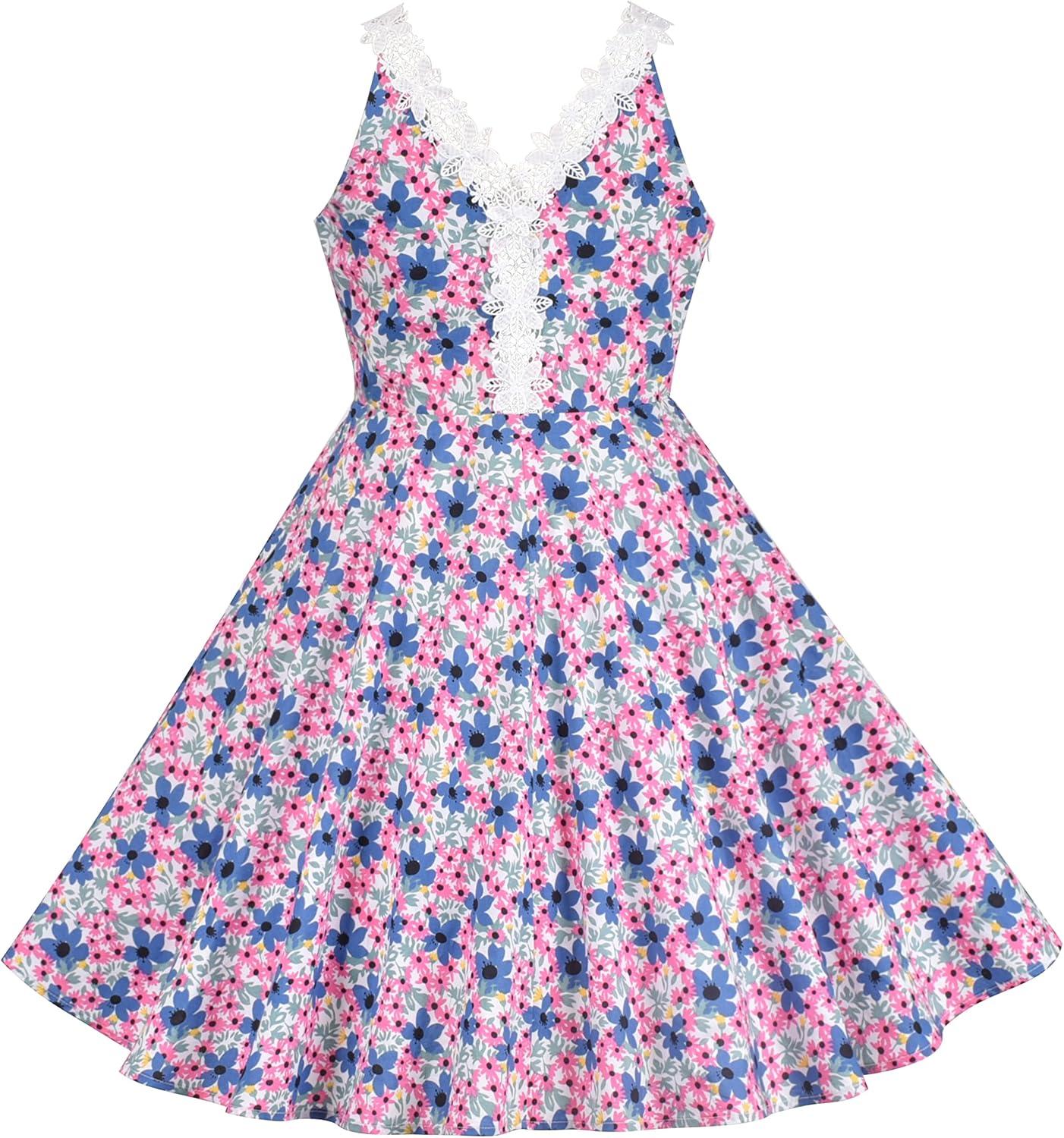 - Sunny Fashion Girls Dress Purple Flower Summer Casual Dress Lace Size 6-14(Pink Flower)