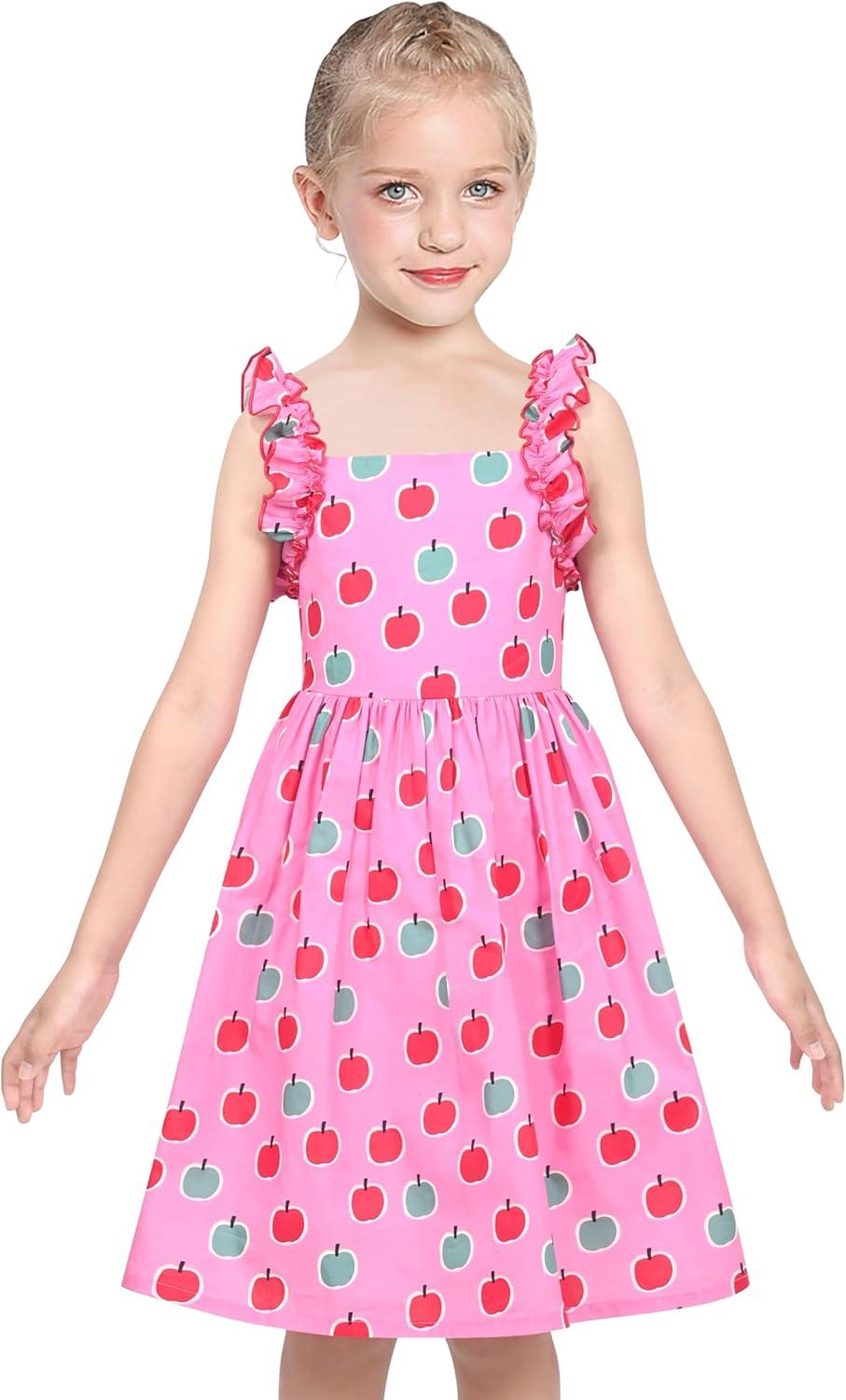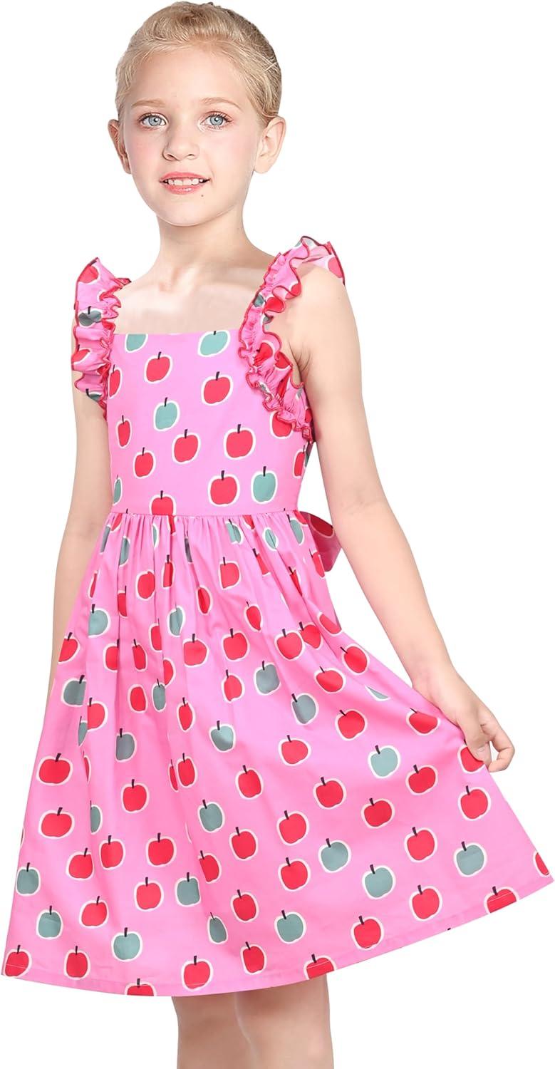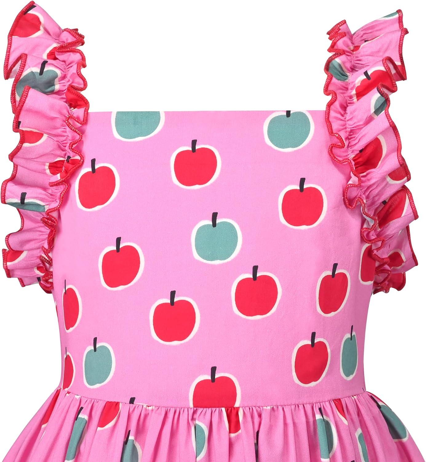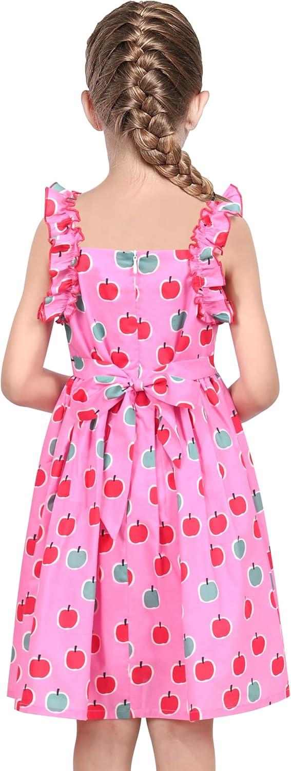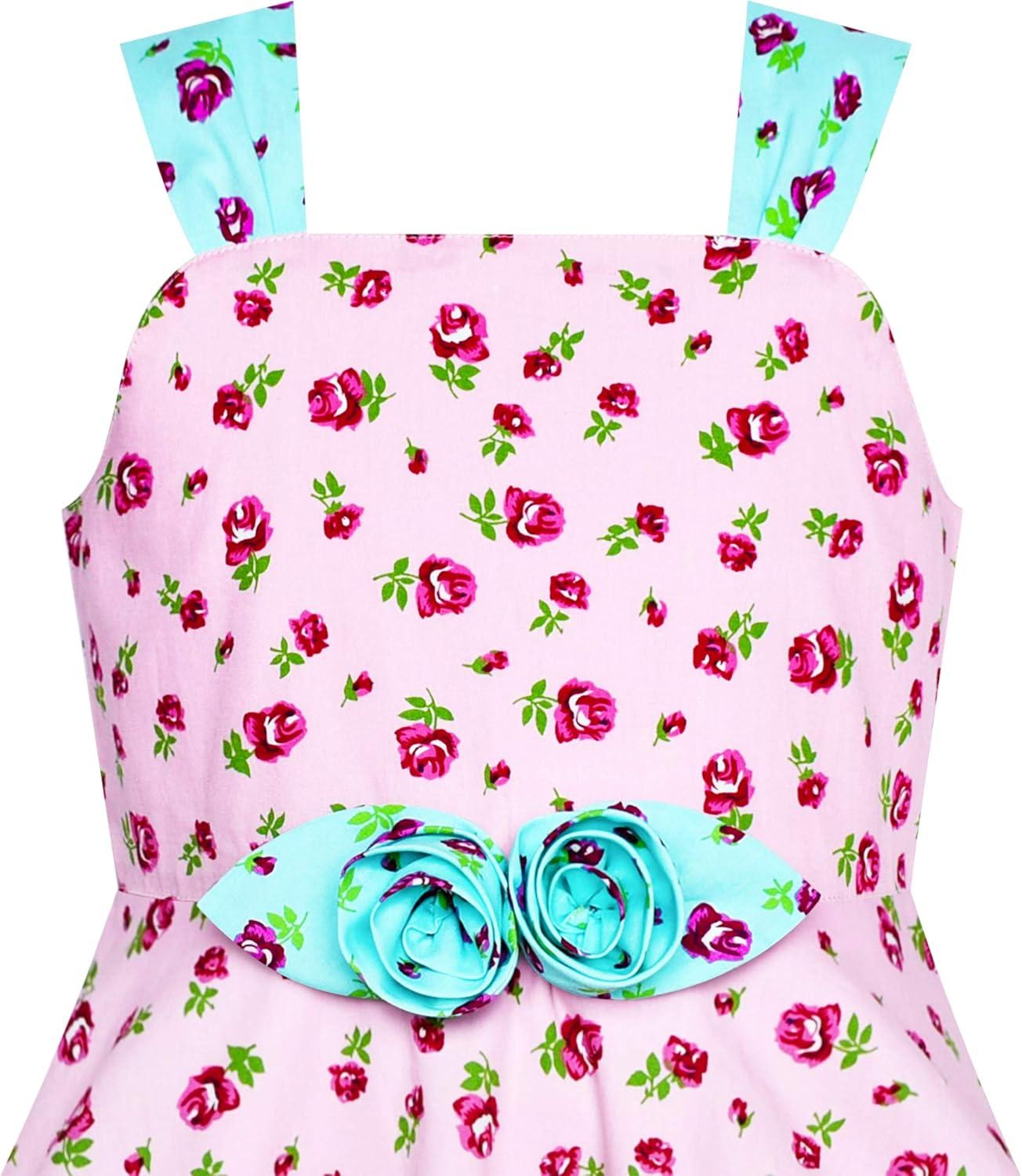 - Sunny Fashion Girls Dress Cotton Flower Square Collar A Line Ruffle Flare(Pink 2)