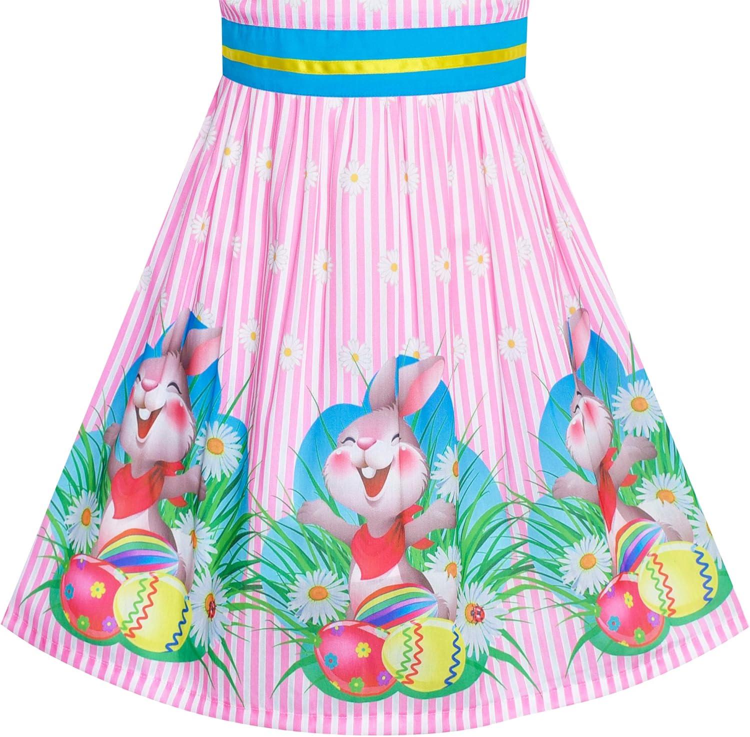 - Sunny Fashion Girls Dress Cat Face Black Tower Ruffle Dancing Party Size 4-10(Pink Bunny)