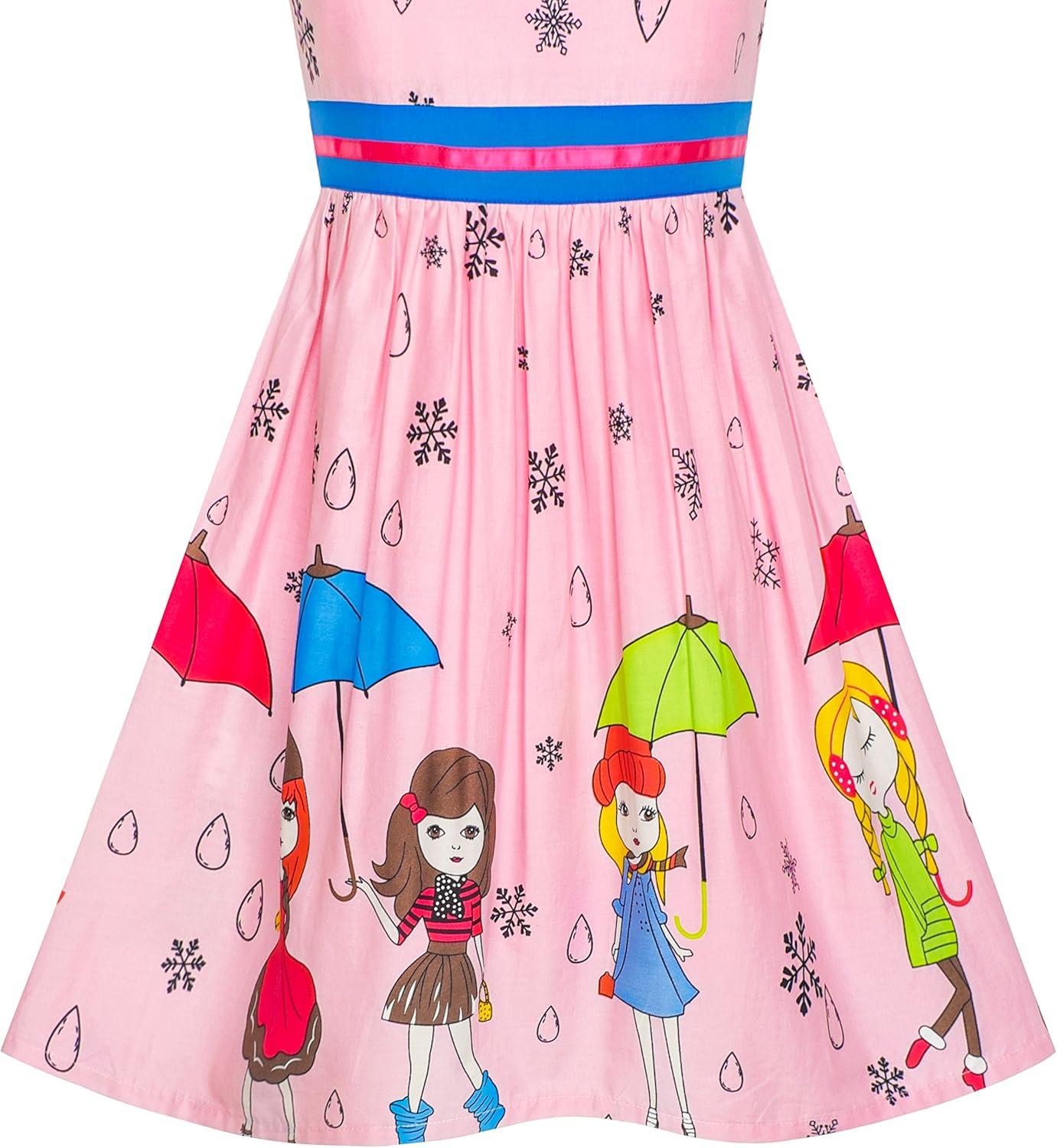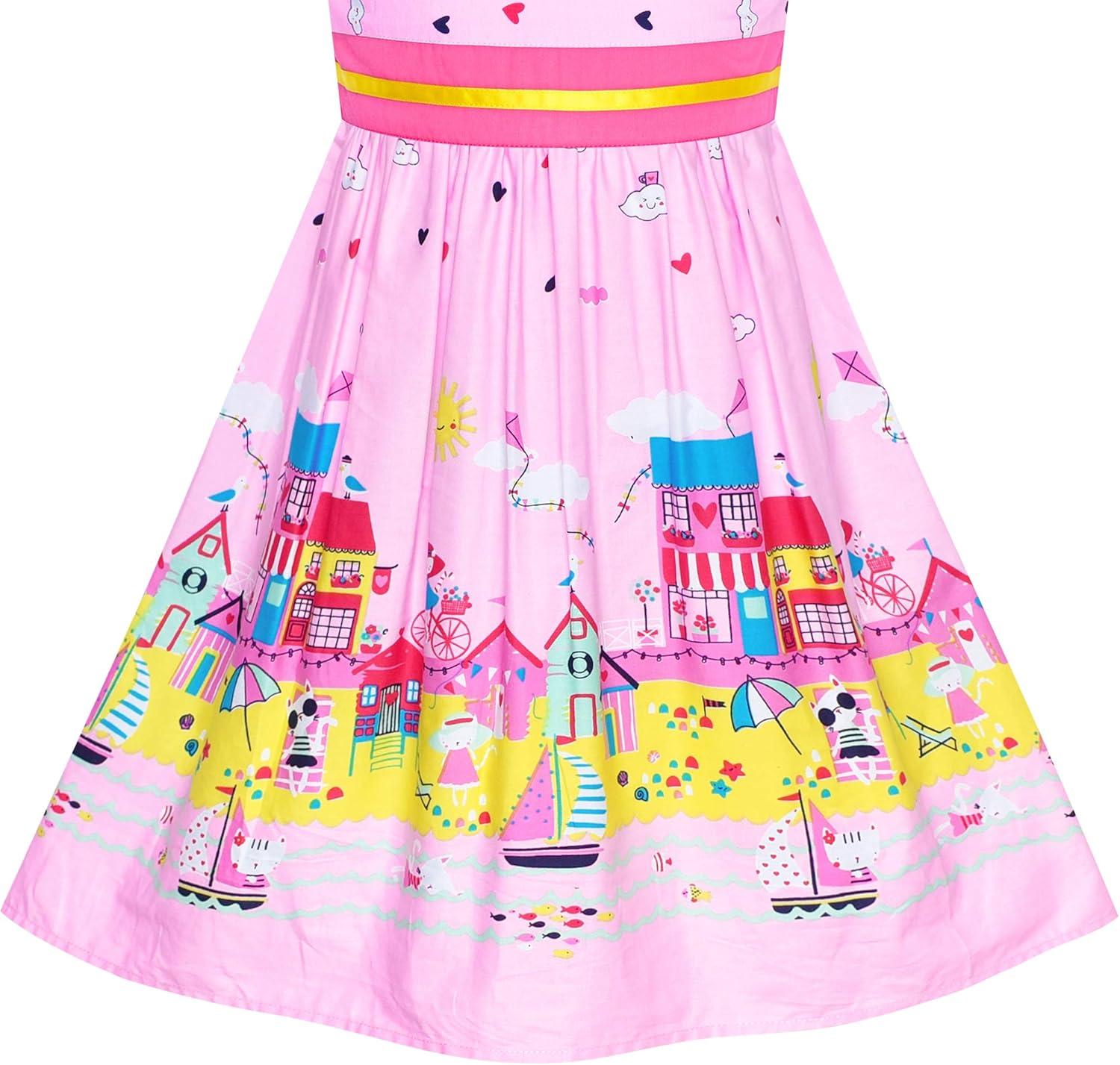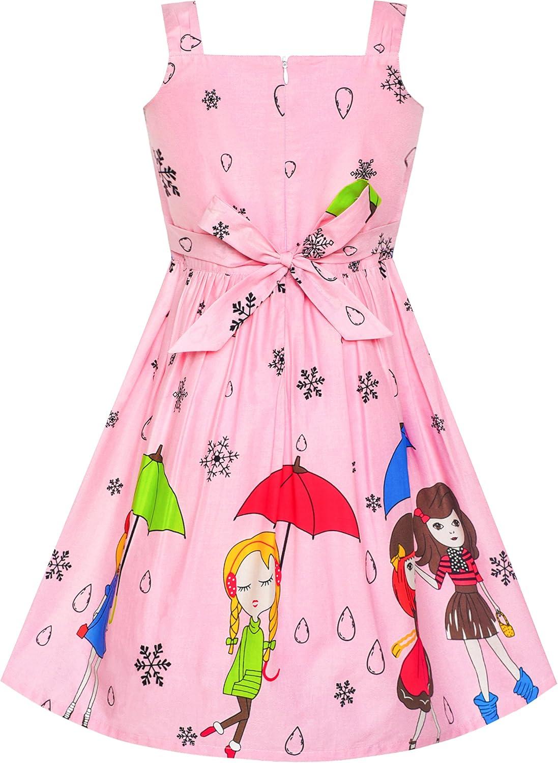 - Sunny Fashion Girls Dress Yellow Leaf Sleeveless Summer Party Size 6-12(Light Pink)