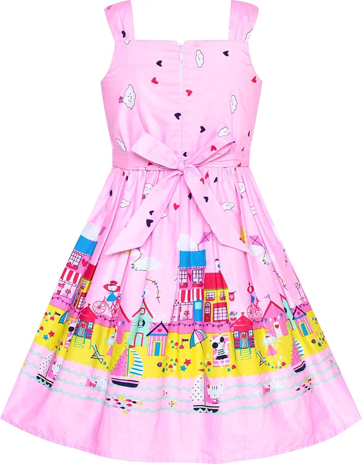 - Sunny Fashion Girls Dress Yellow Leaf Sleeveless Summer Party Size 6-12(Pink)