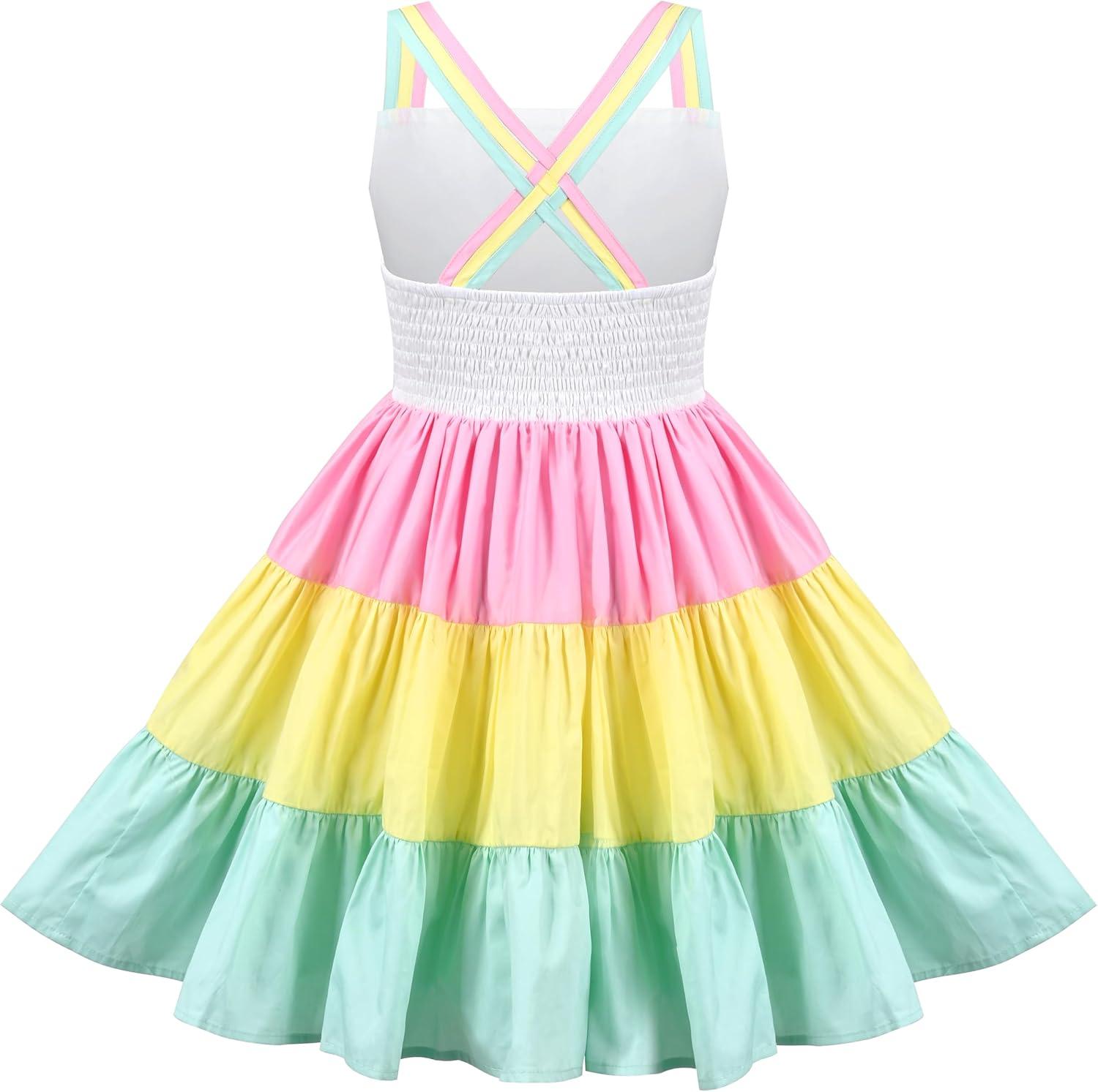 - Sunny Fashion Girls Dress Purple Short Sleeve Rainbow Tulle Skirt Birthday Party(Pink Rainbow)