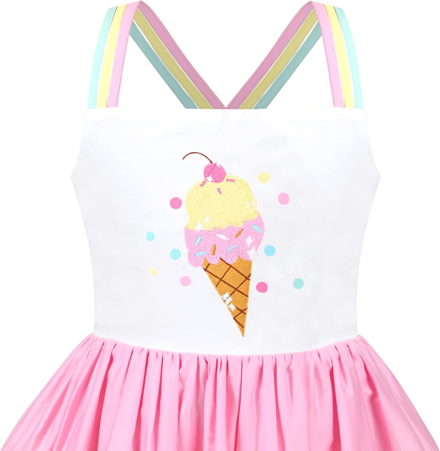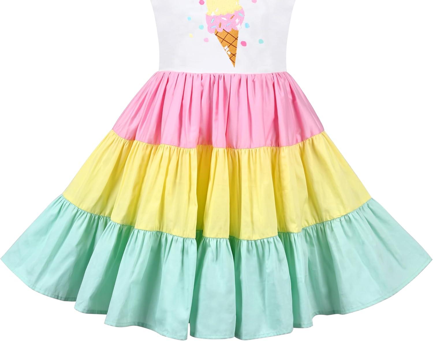 - Sunny Fashion Girls Dress Ladybug Polka Dot Bow Tie(Rainbow Icecream)