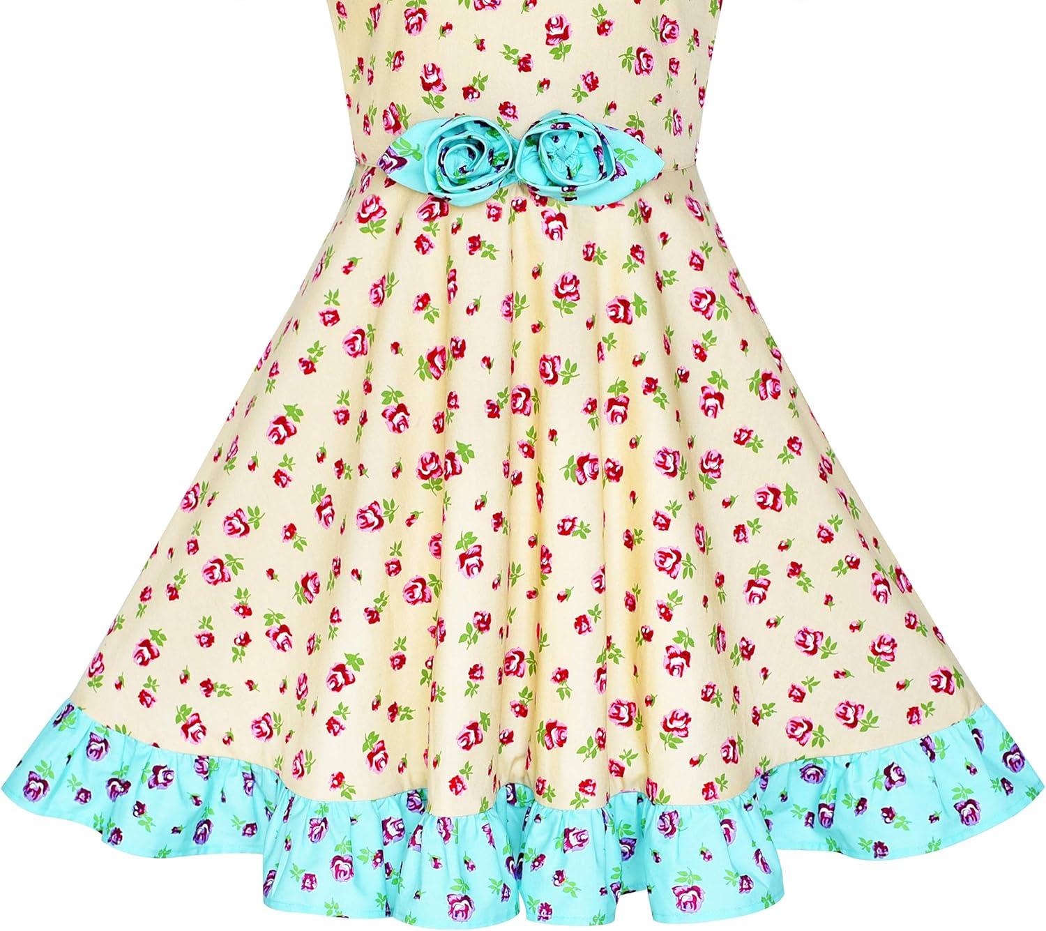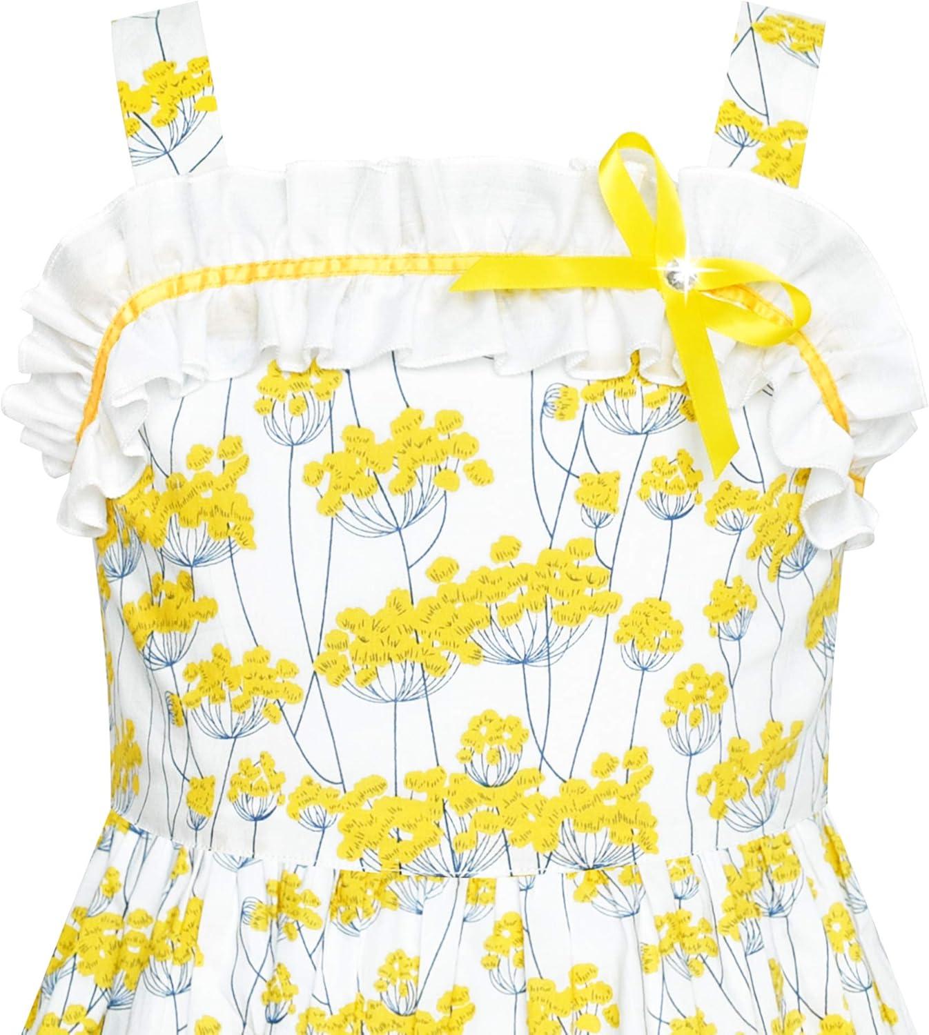 - Sunny Fashion Girls Dress Cotton Flower Square Collar A Line Ruffle Flare(Yellow Blue Flower)