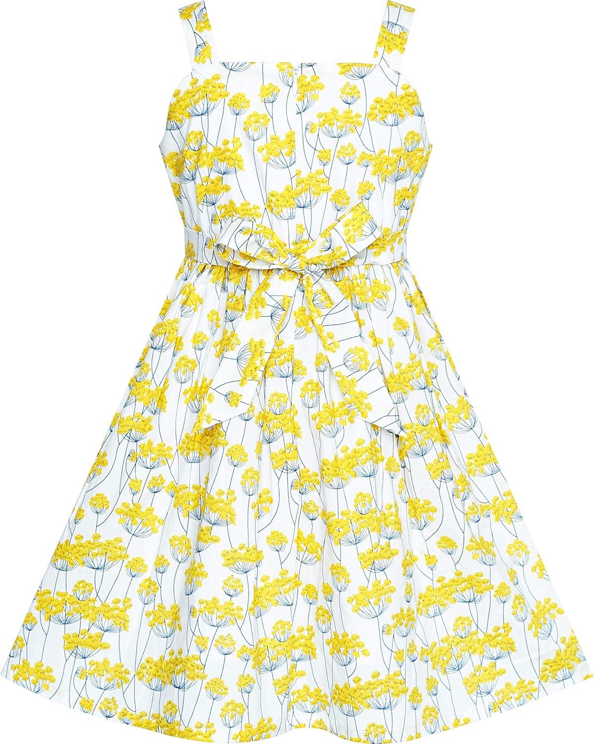 - Sunny Fashion Girls Dress Purple Flower Summer Casual Dress Lace Size 6-14(Yellow)