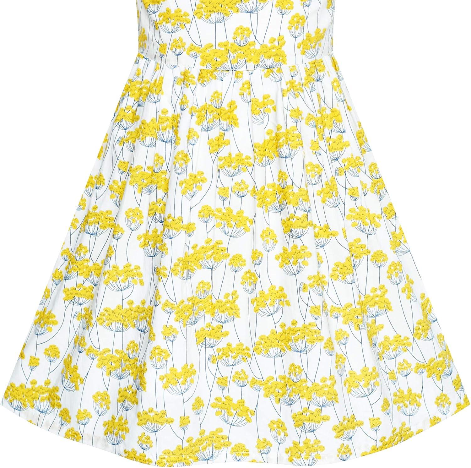 - Sunny Fashion Girls Dress Yellow Leaf Sleeveless Summer Party Size 6-12(White)