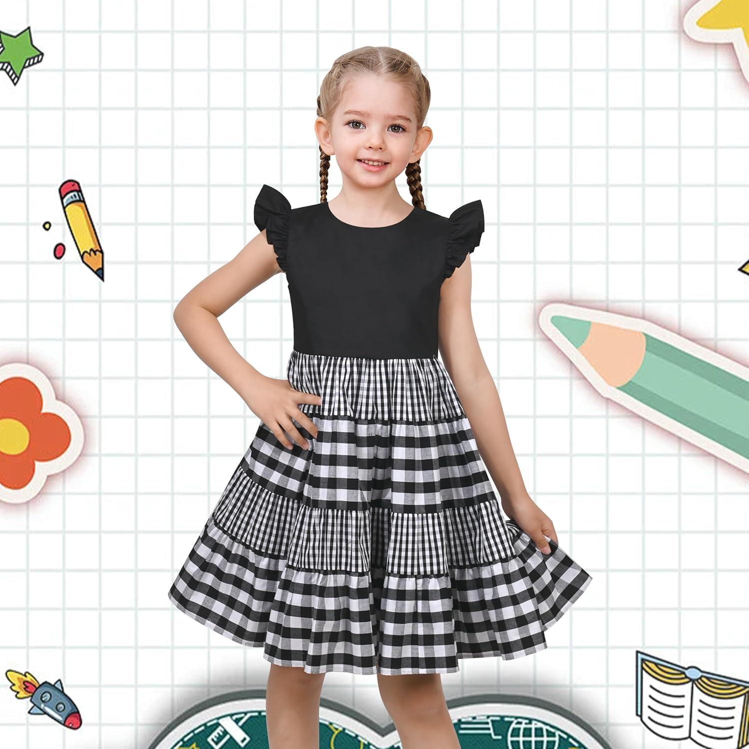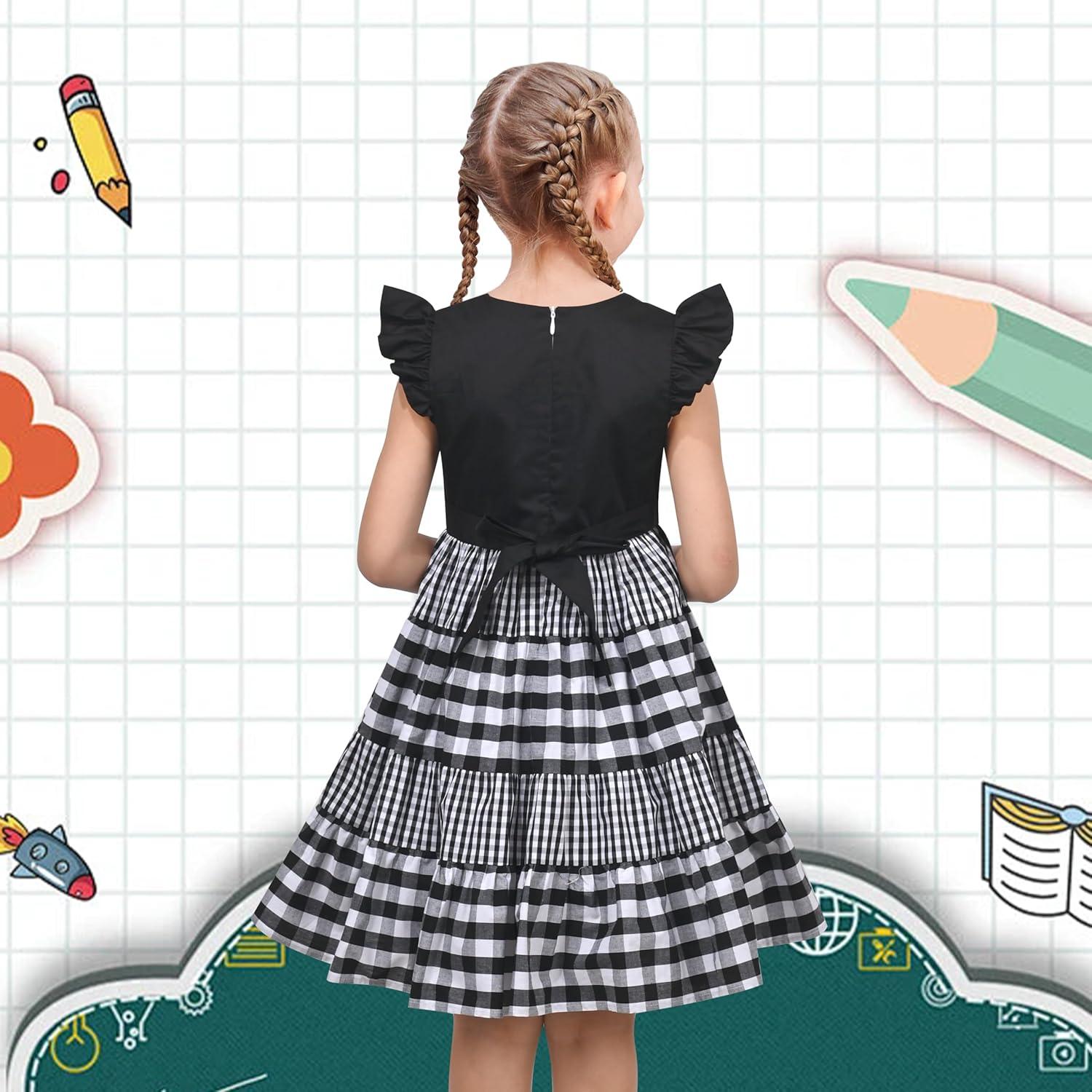 - Sunny Fashion Girls Dress Ladybug Polka Dot Bow Tie(Black Plaid)