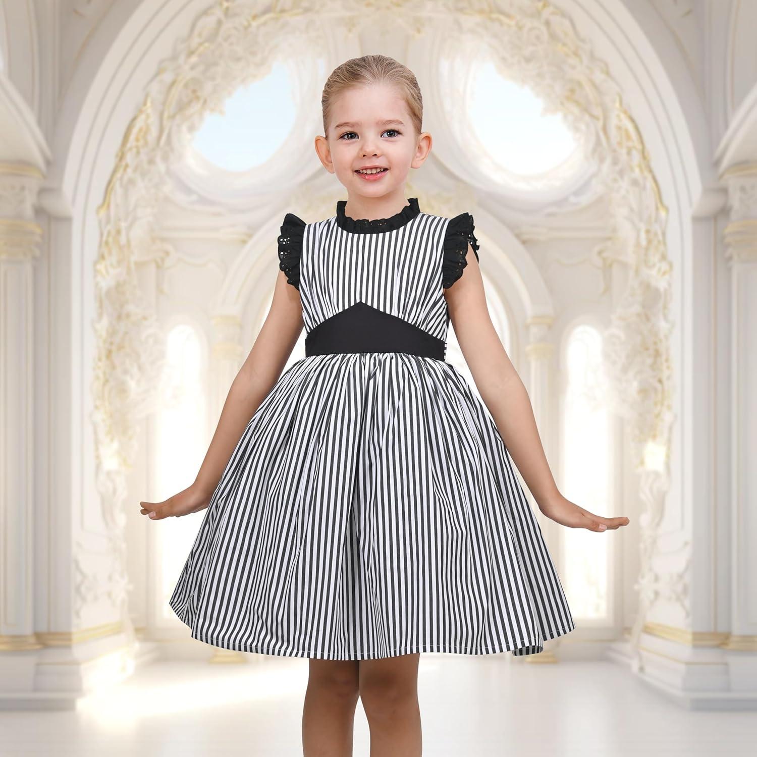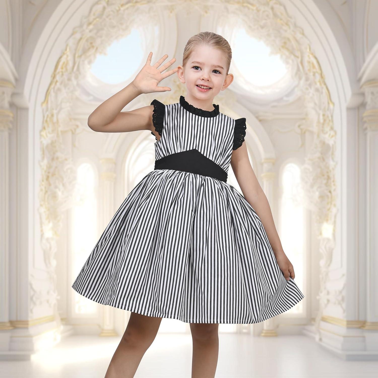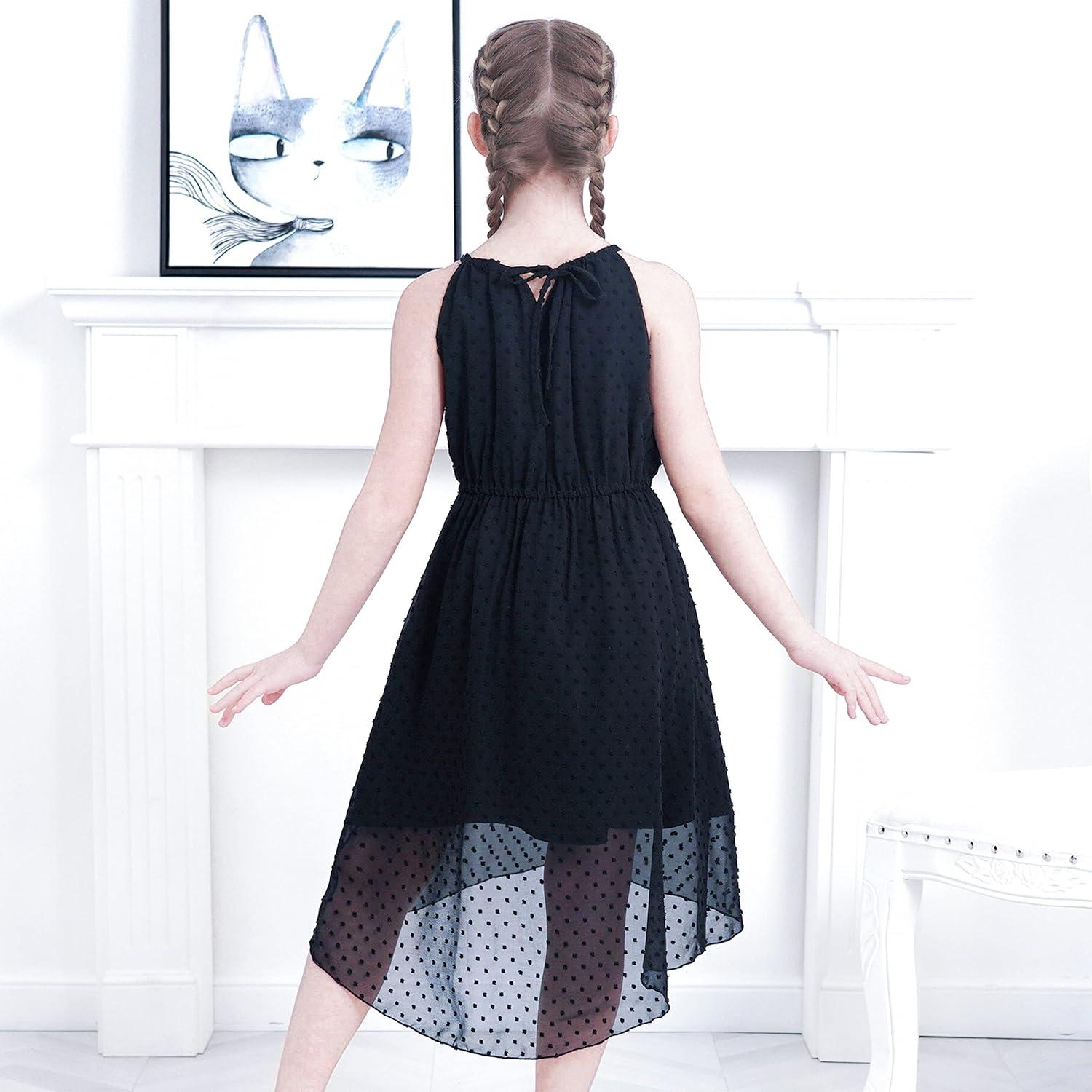 - Sunny Fashion Girls Dress Cat Face Black Tower Ruffle Dancing Party Size 4-10(Black Dot)