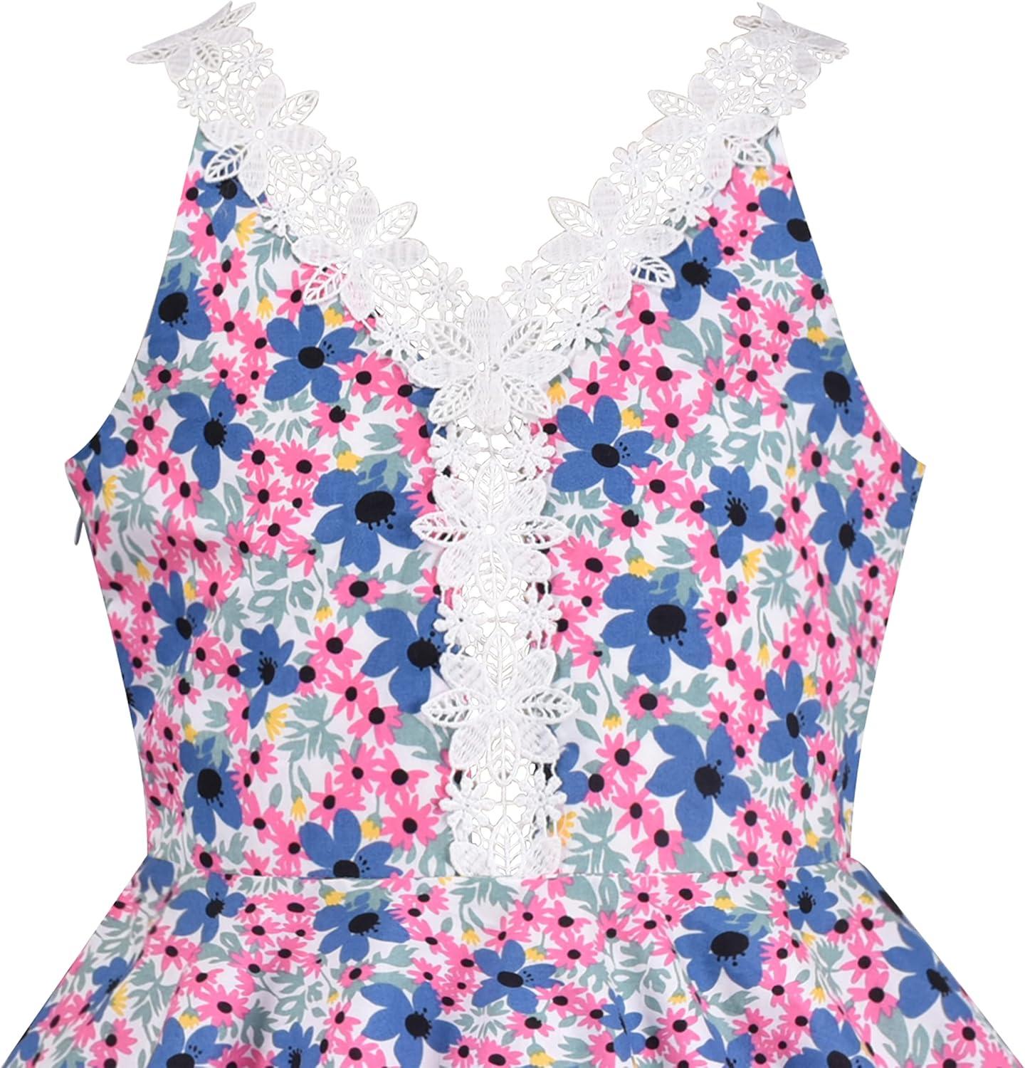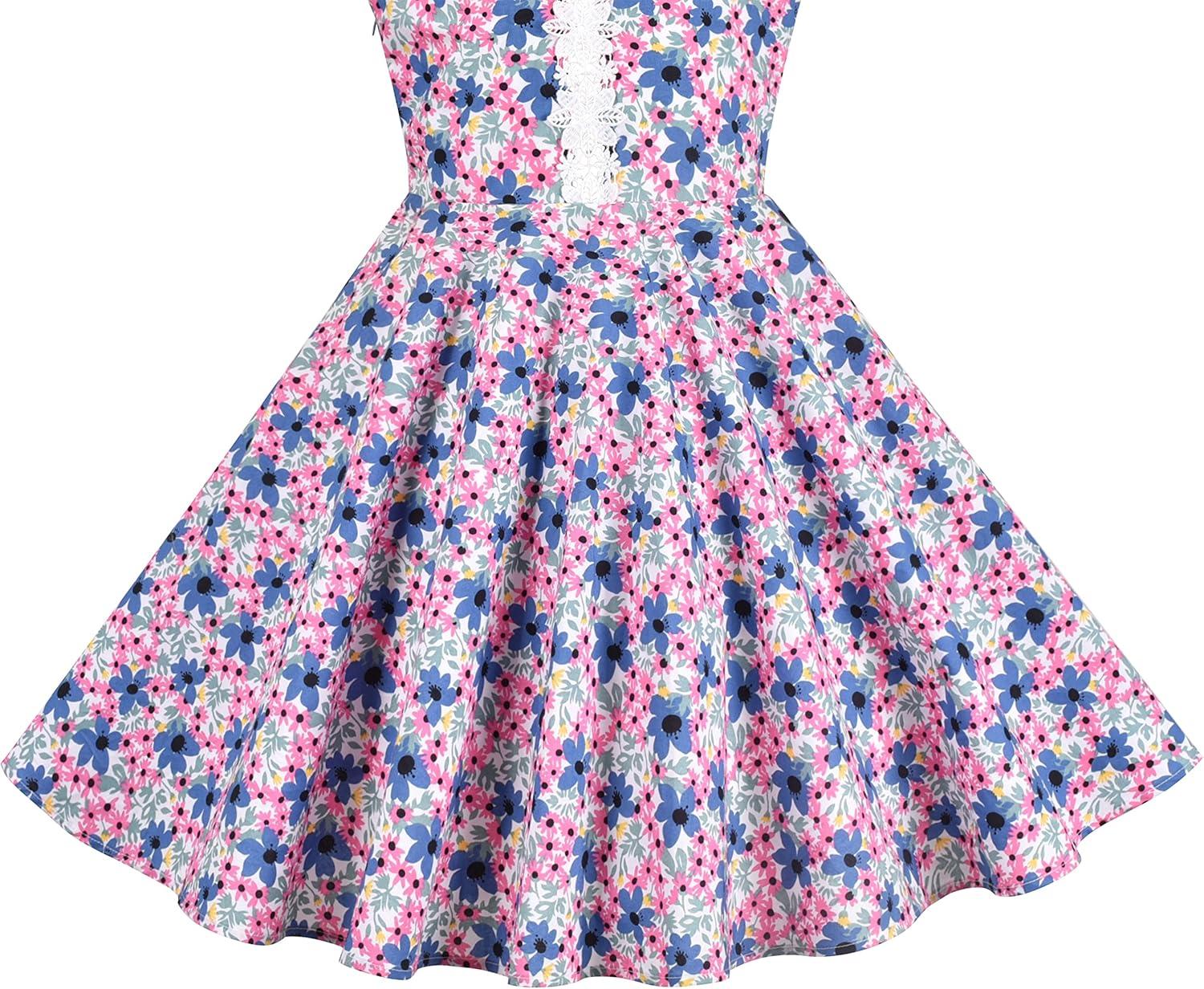 - Sunny Fashion Girls Dress Purple Flower Summer Casual Dress Lace Size 6-14(Pink White Flower)