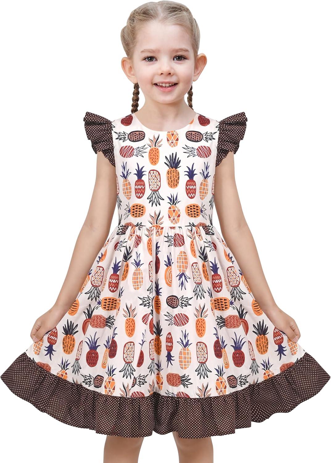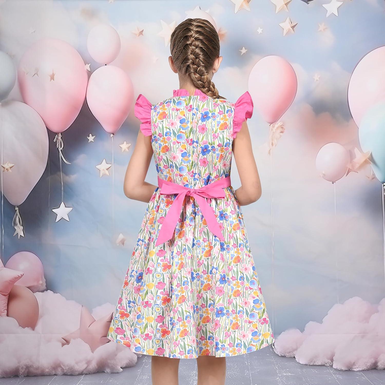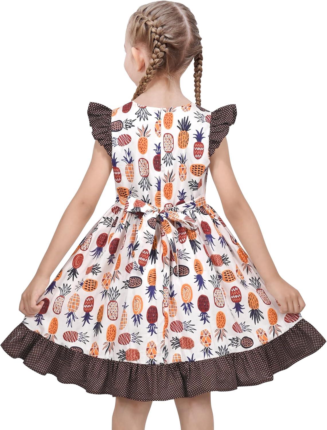 - Sunny Fashion Girls Dress Cotton Flower Square Collar A Line Ruffle Flare(Pink Beige Flower)