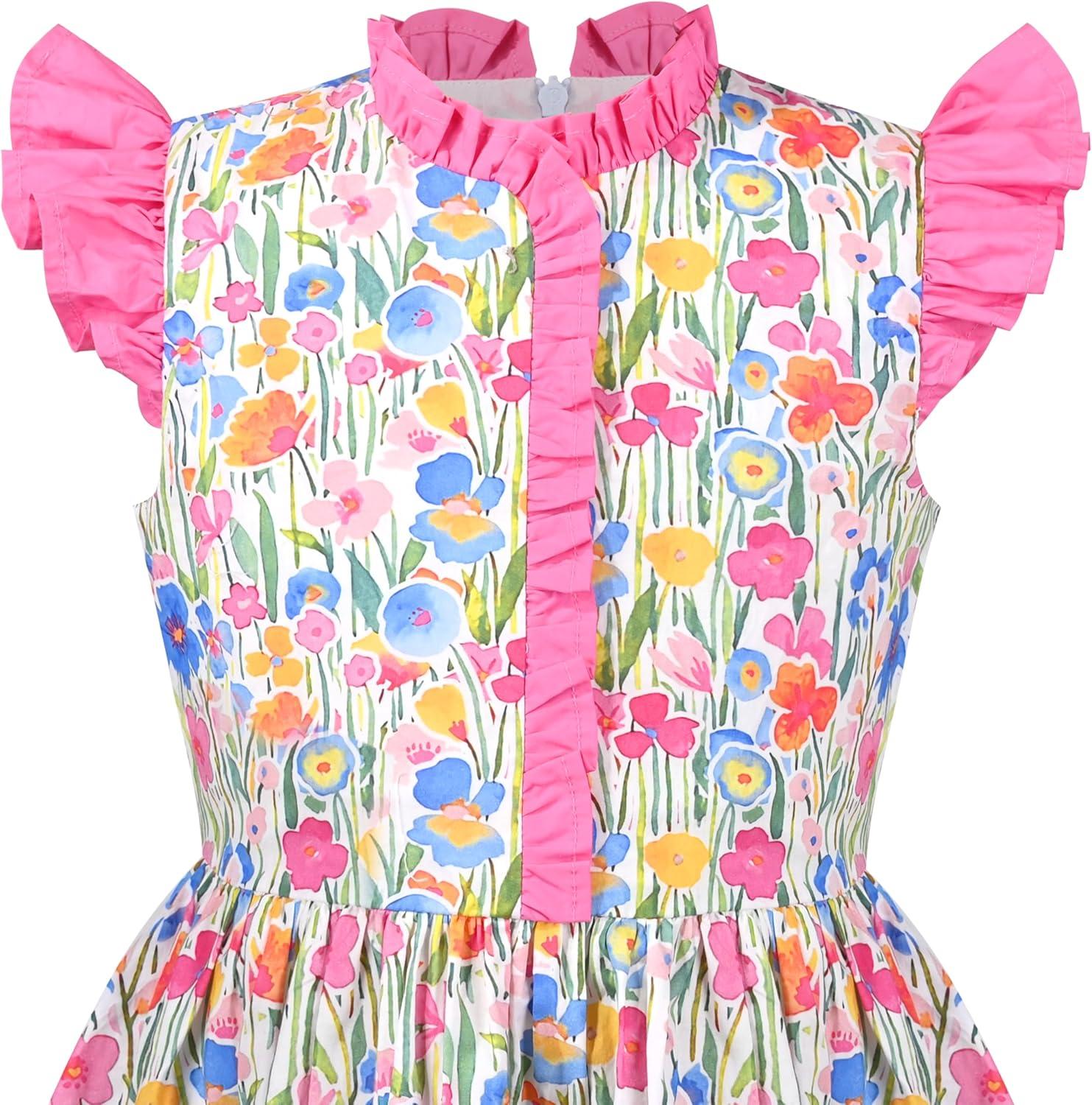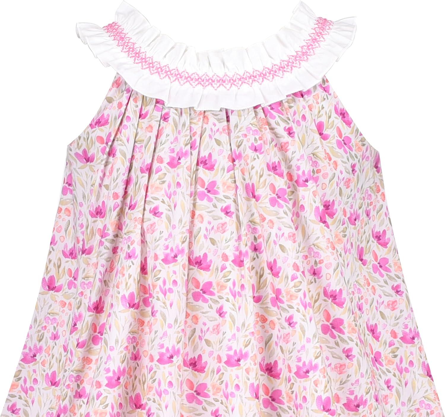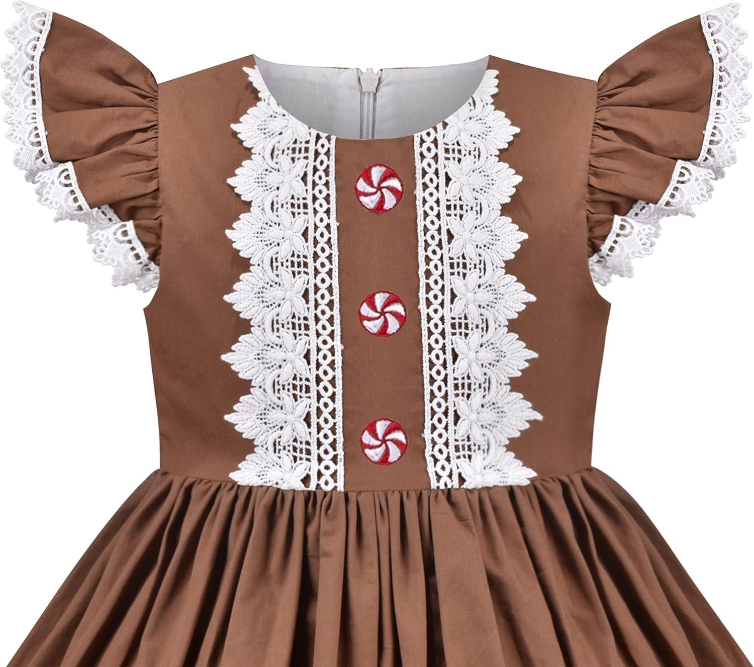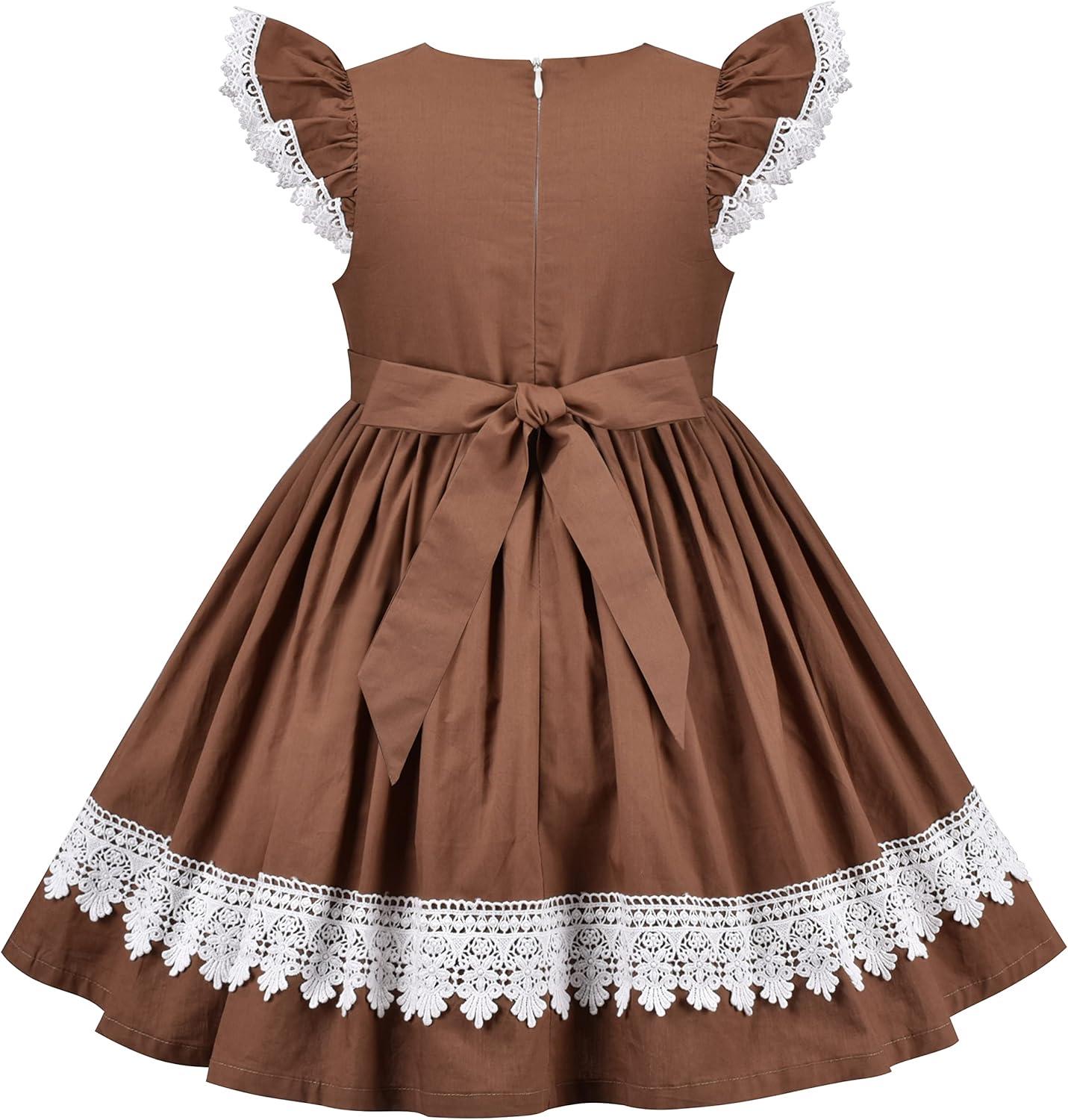 - Sunny Fashion Girls Dress Cotton Flower Square Collar A Line Ruffle Flare(Pink Beige Flower)