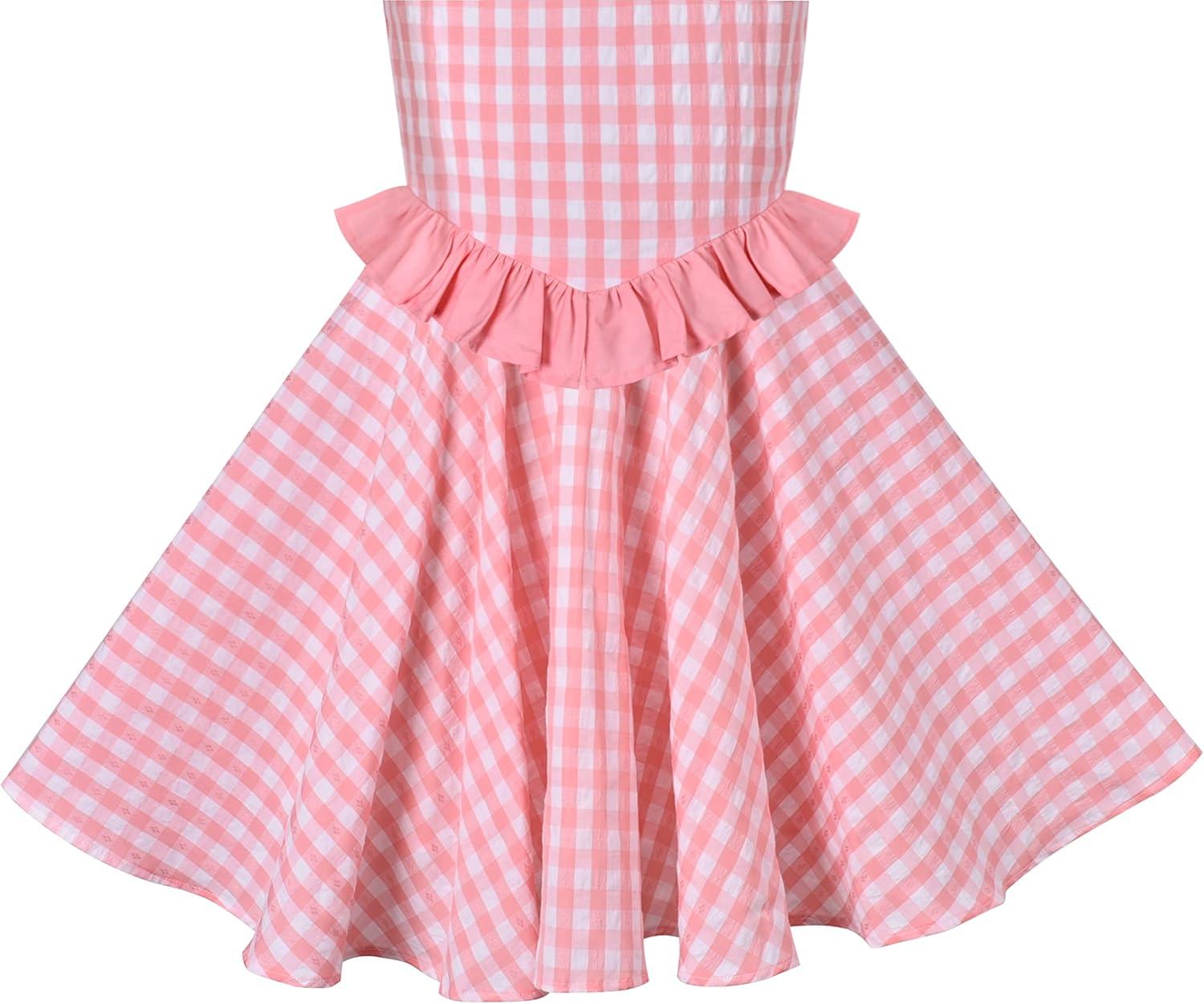 - Sunny Fashion Girls Dress Purple Flower Summer Casual Dress Lace Size 6-14(Pink Plaid)