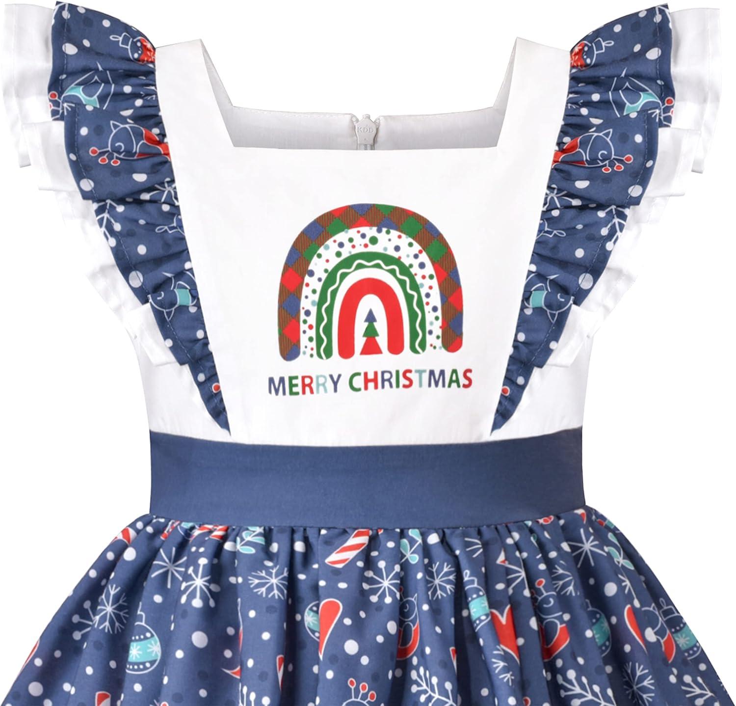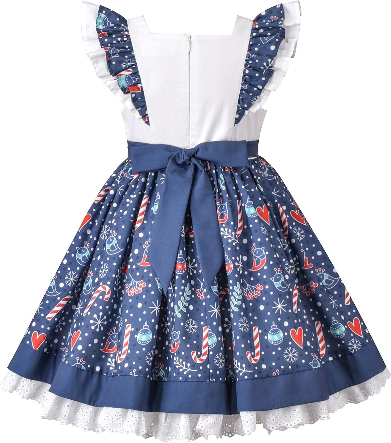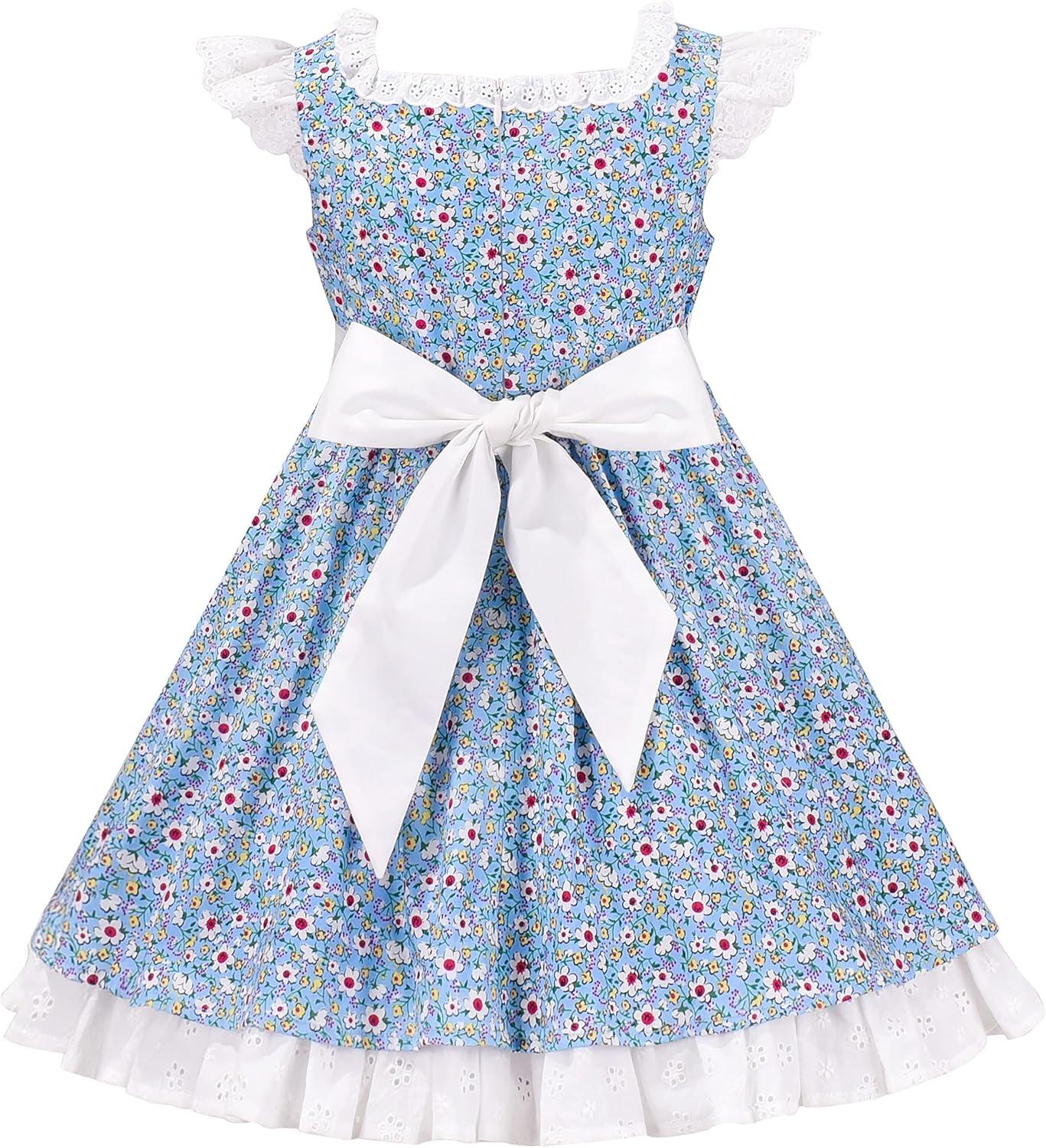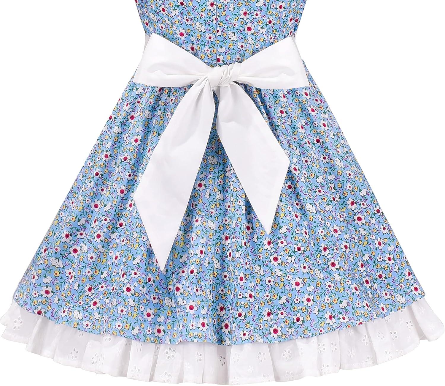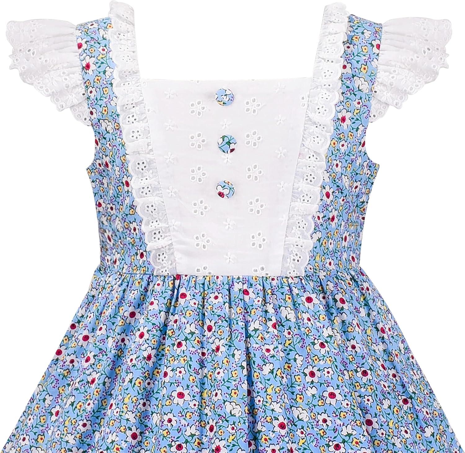 - Sunny Fashion Girls Dress Cotton Flower Square Collar A Line Ruffle Flare(Blue Flower)