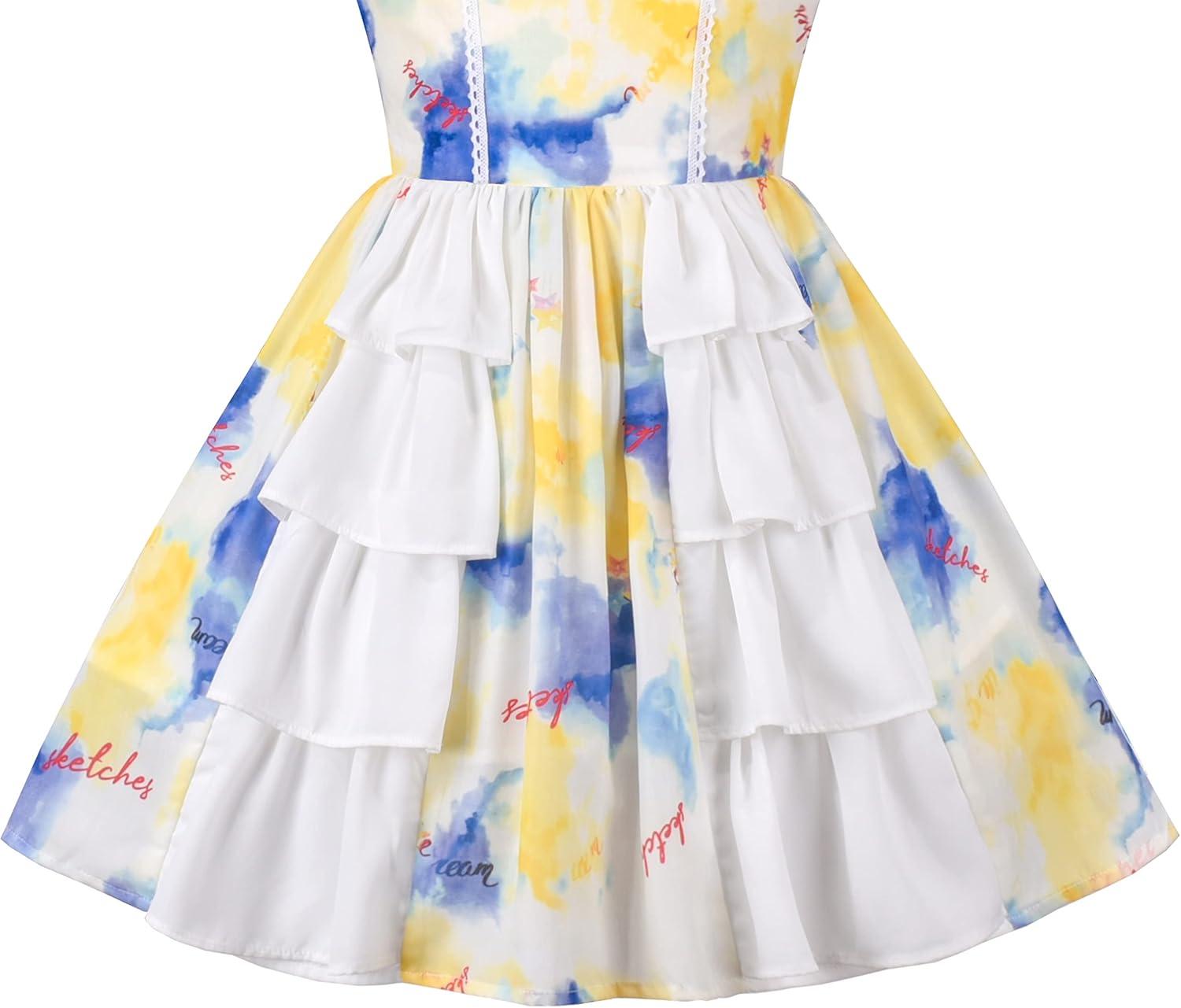 - Sunny Fashion Girls Dress Cotton Flower Square Collar A Line Ruffle Flare(Yellow Blue)