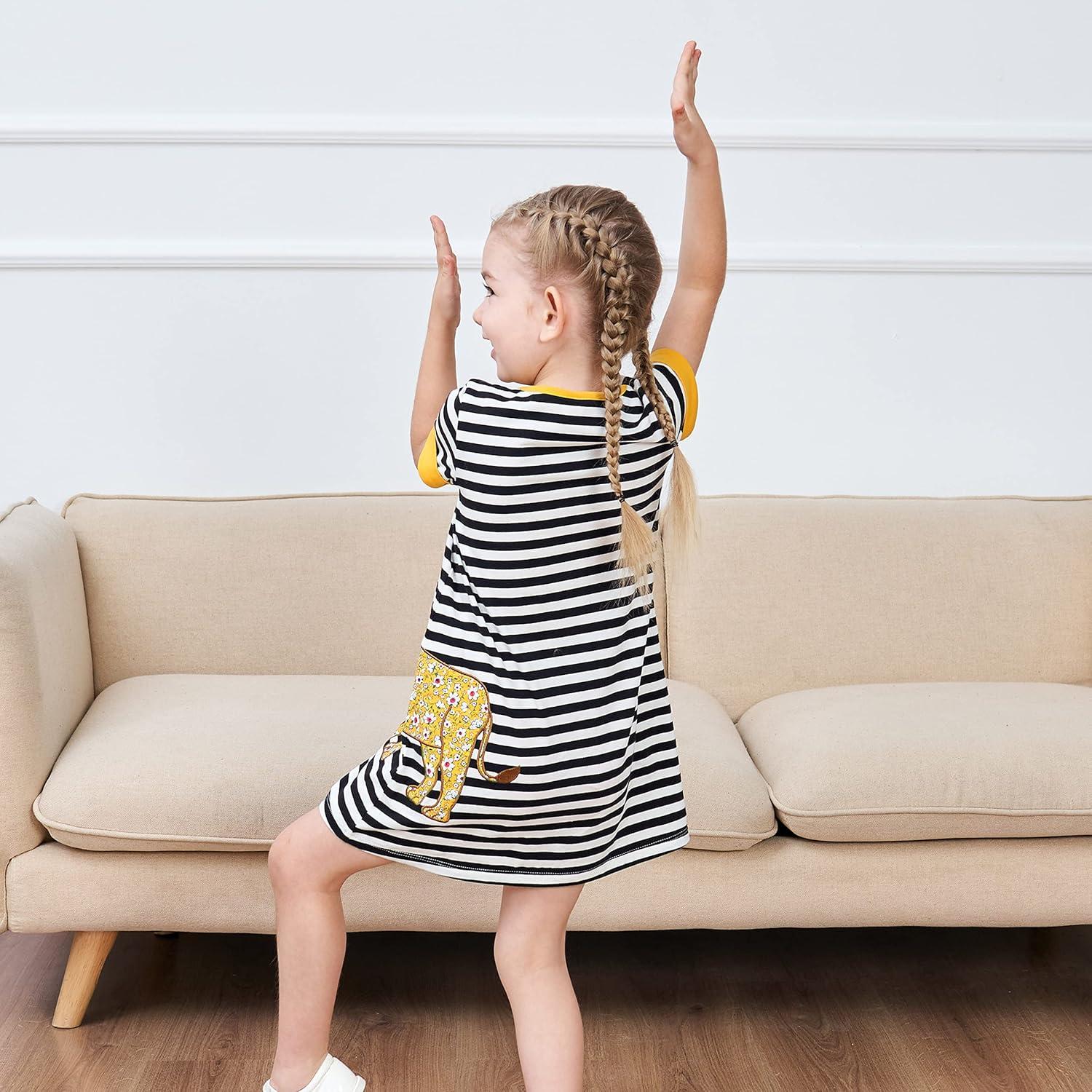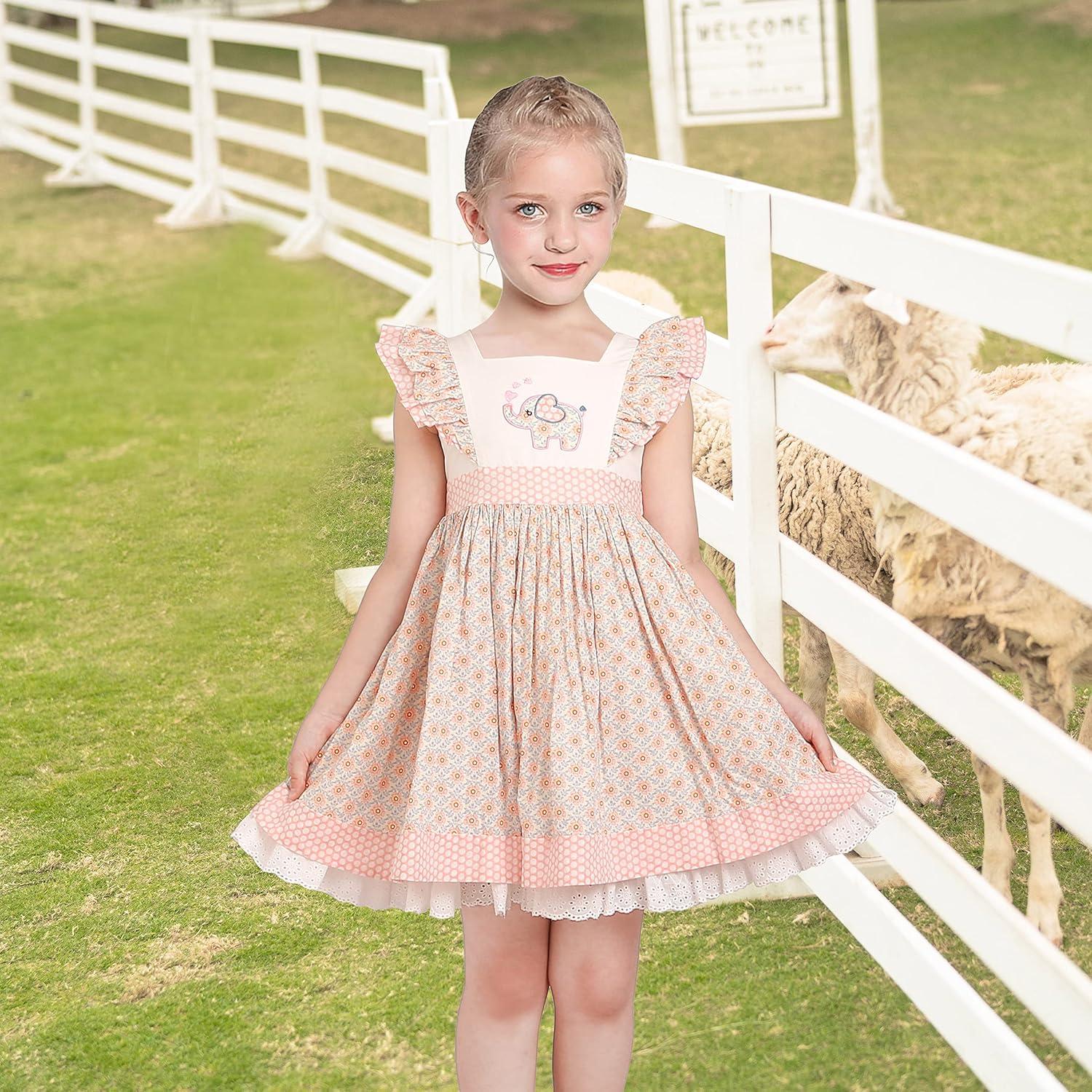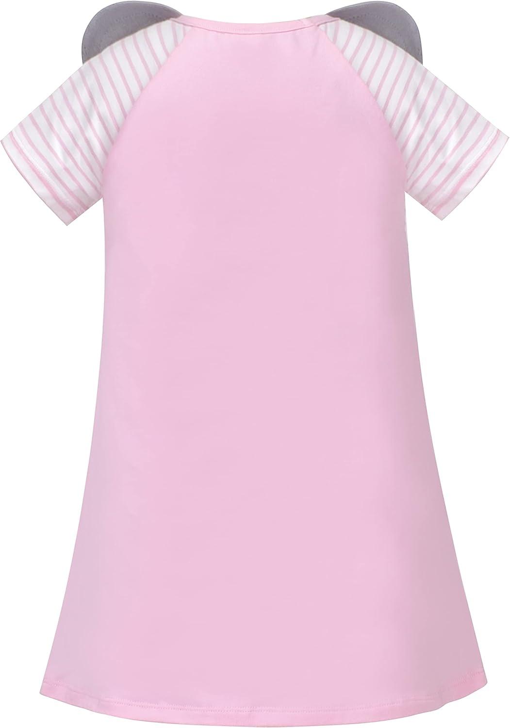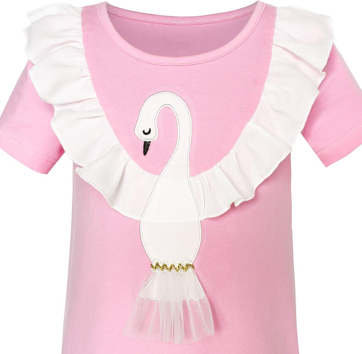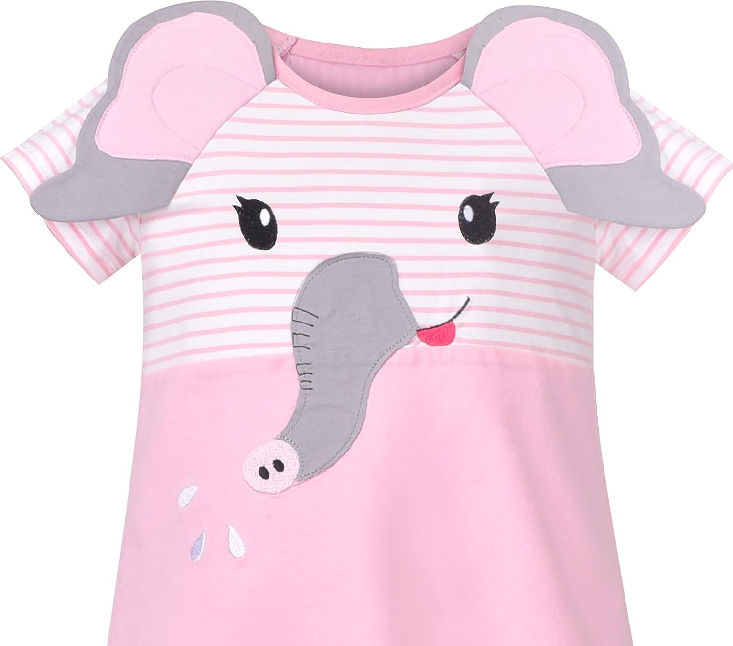 - Sunny Fashion Girls Dress T-Shirt Cotton Bird Embroidered Short Sleeve Size 2-6(Pink Elephant)