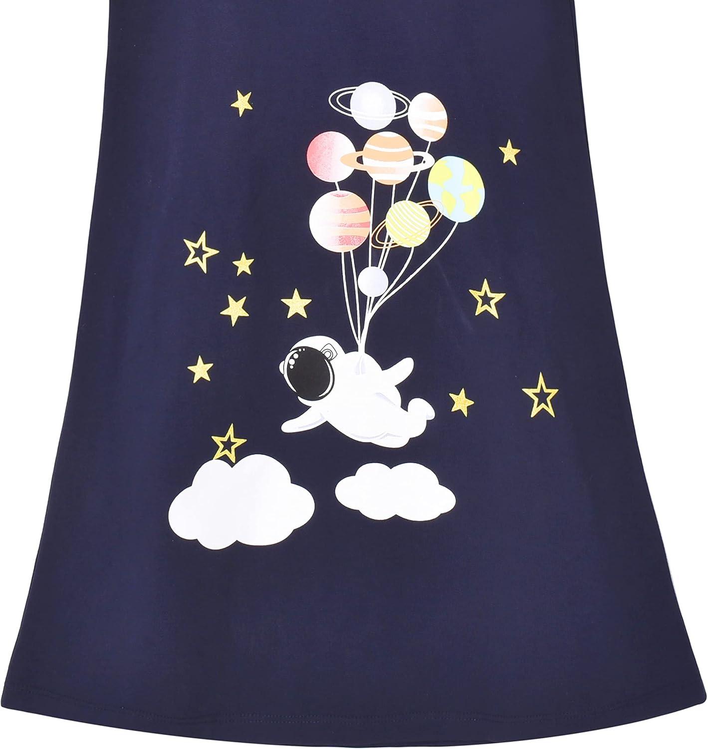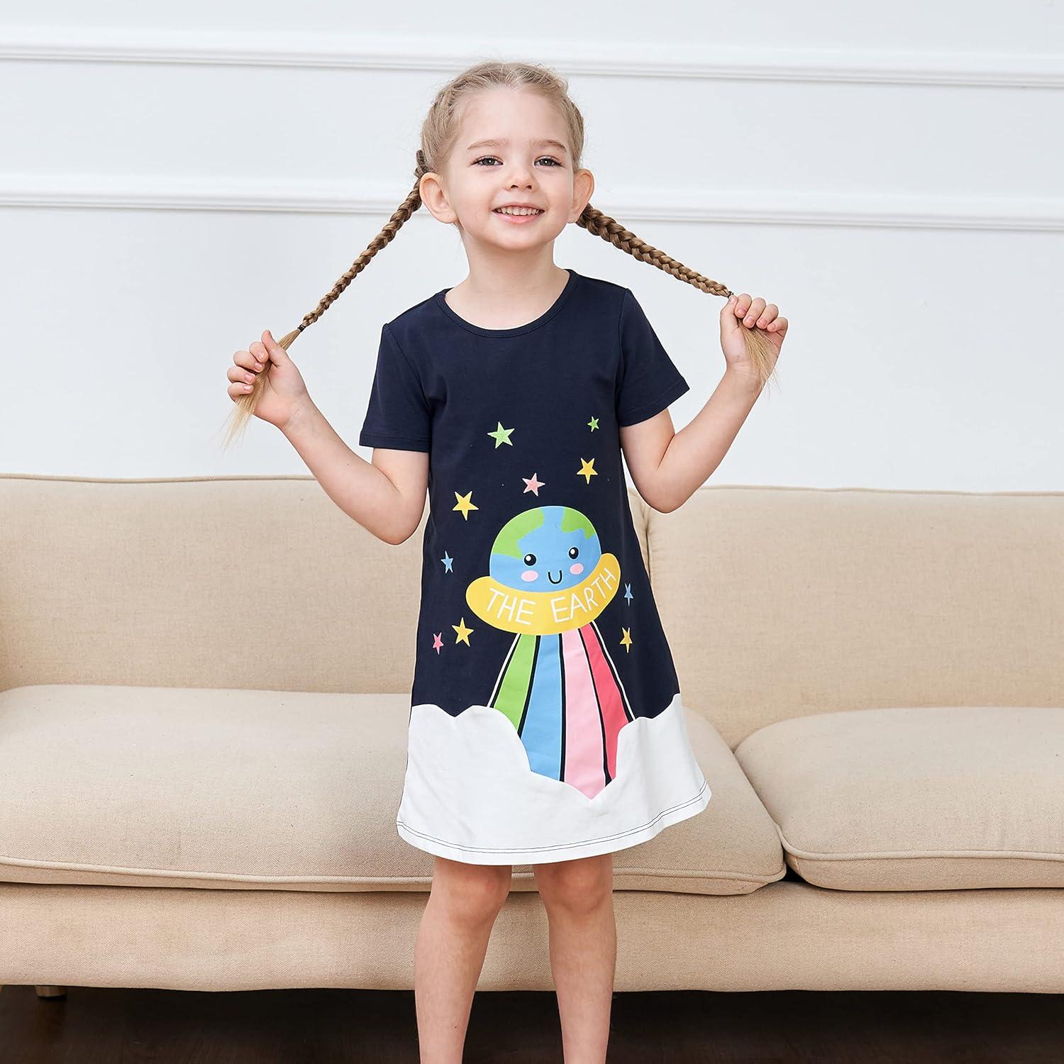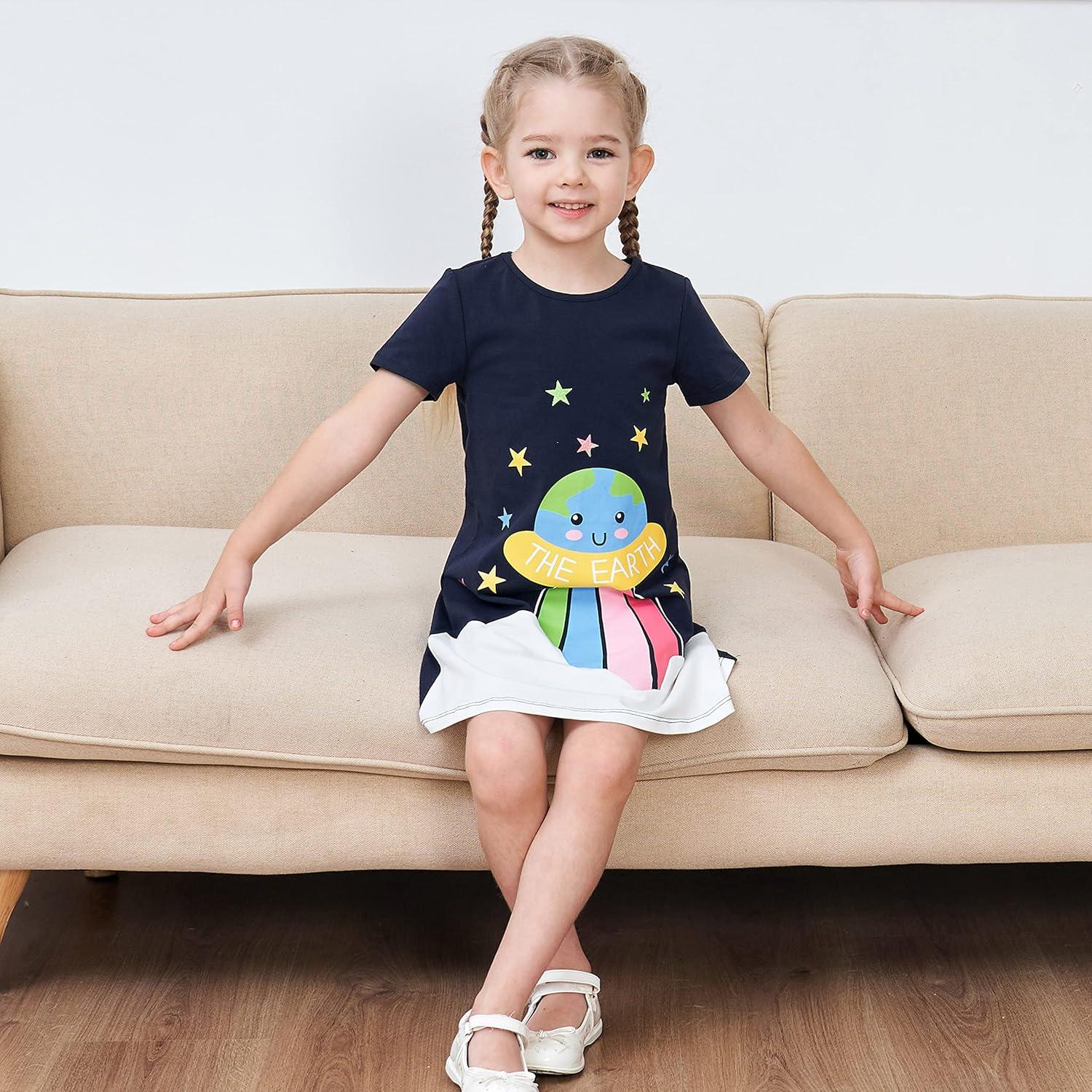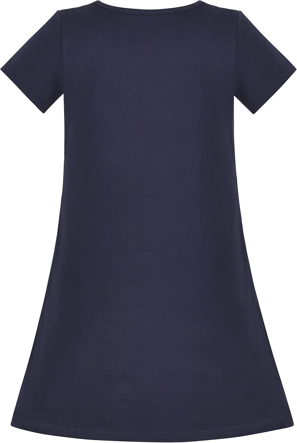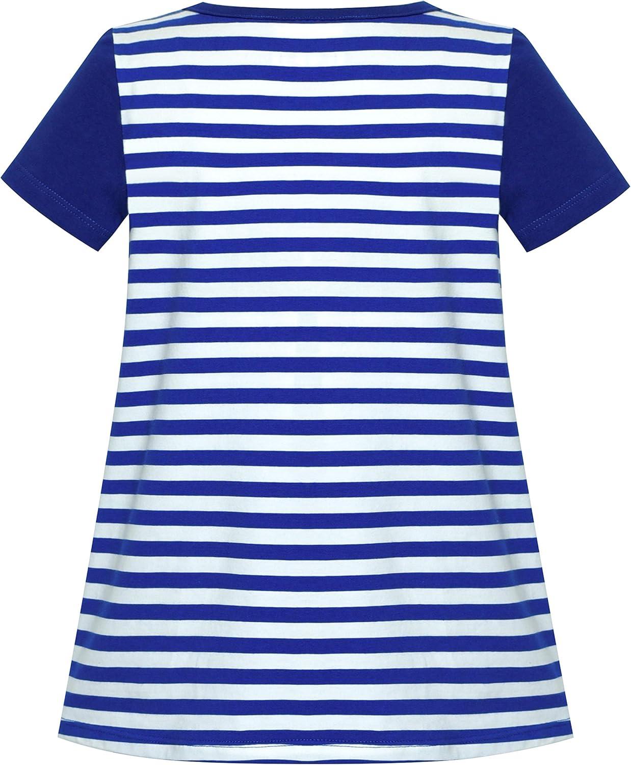 - Sunny Fashion Girls Dress T-Shirt Cotton Bird Embroidered Short Sleeve Size 2-6(Blue Stars)