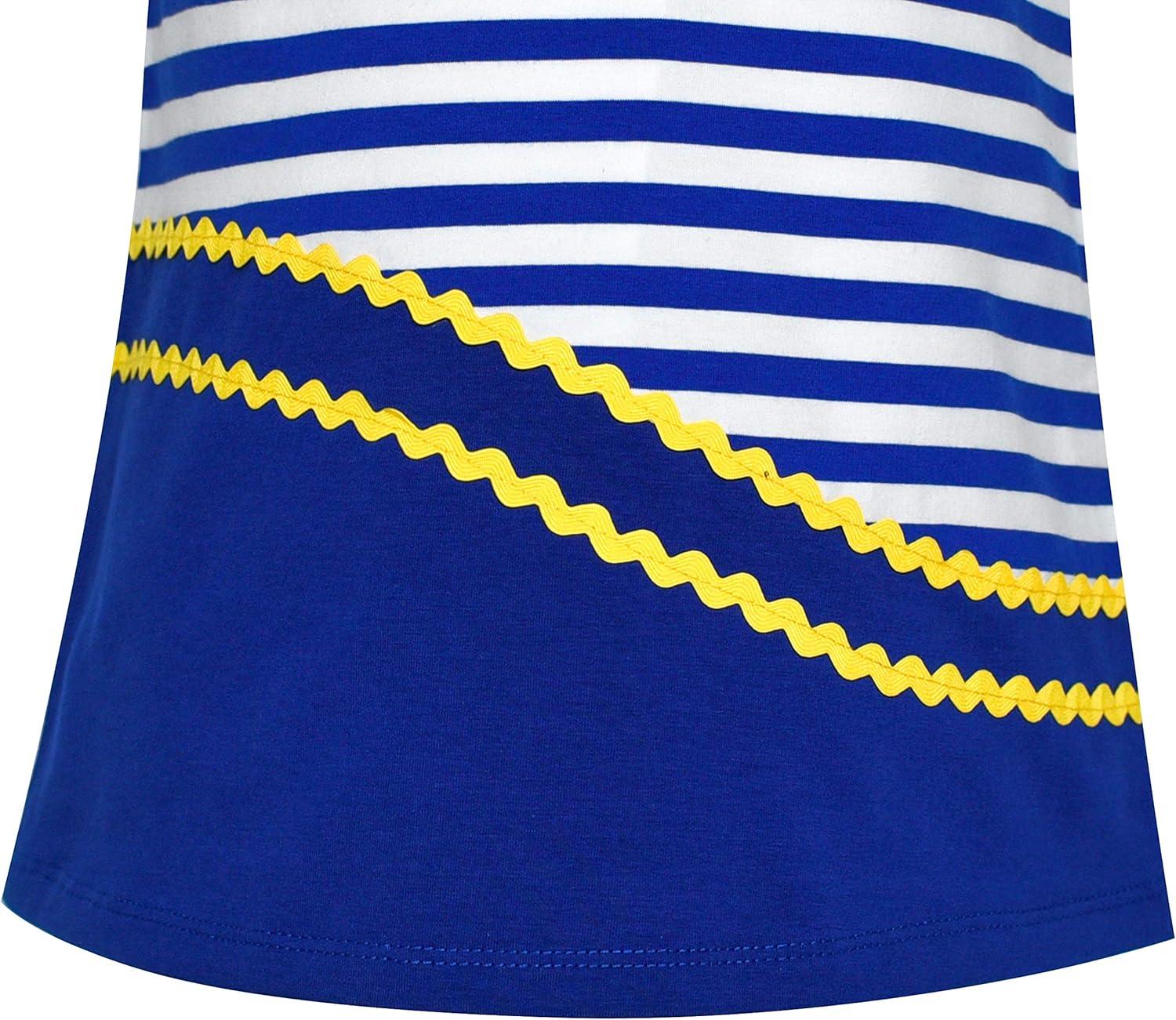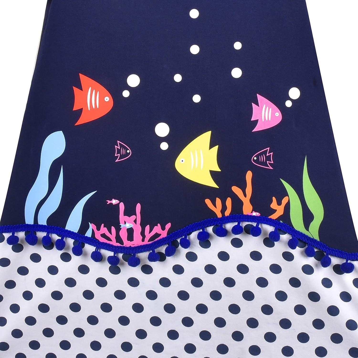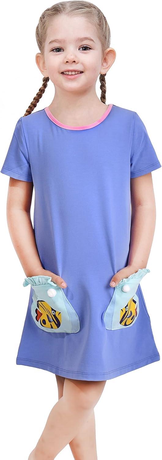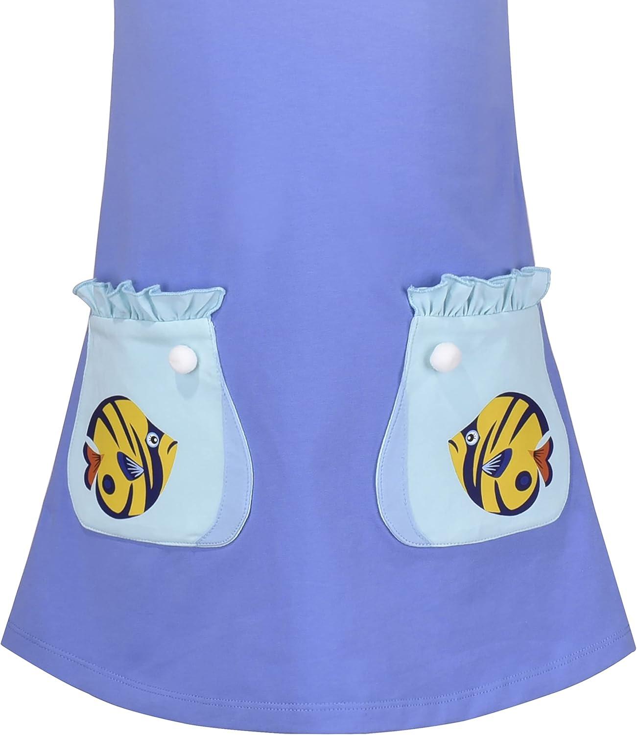 - Sunny Fashion Girls Dress T-Shirt Cotton Bird Embroidered Short Sleeve Size 2-6(Dark Blue Fish)
