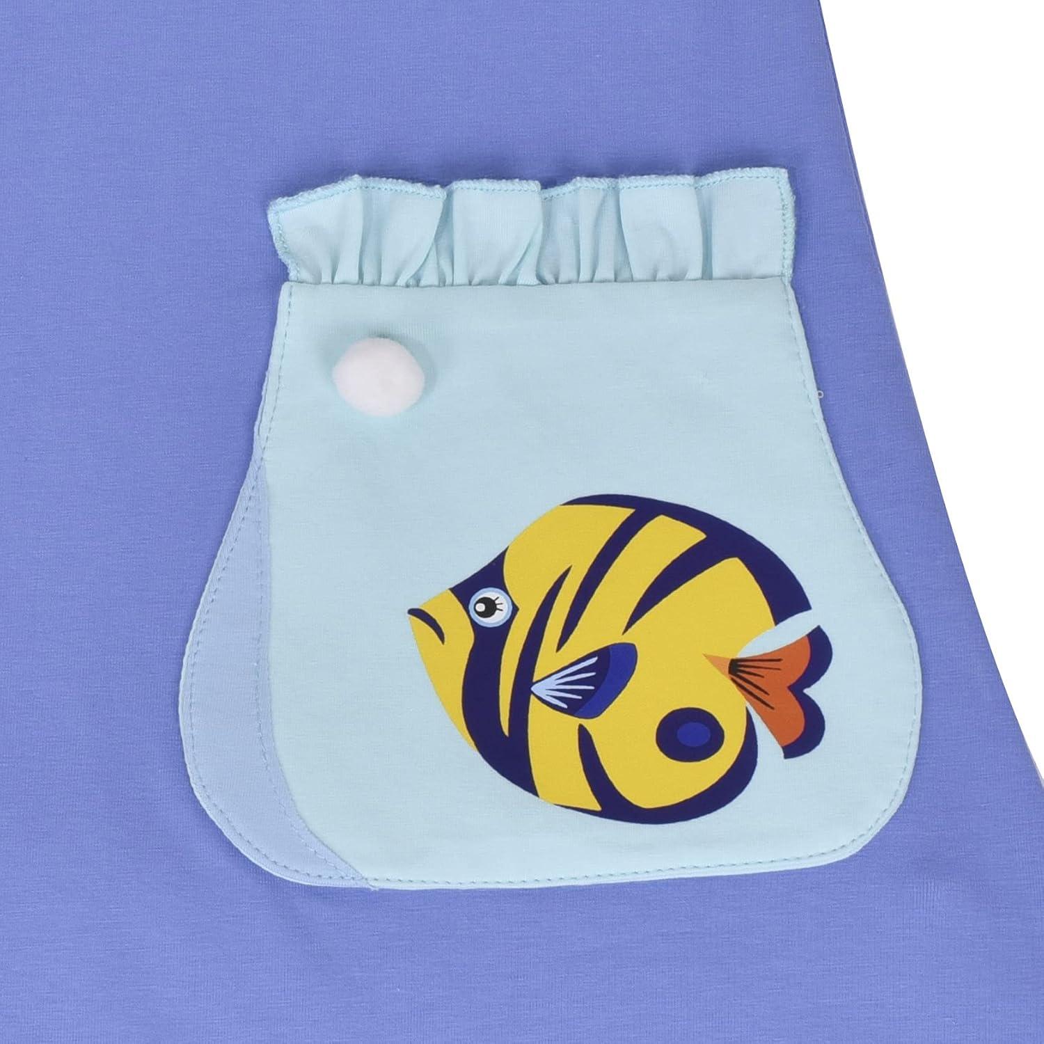 - Sunny Fashion Girls Dress T-Shirt Cotton Bird Embroidered Short Sleeve Size 2-6(Blue Fish)
