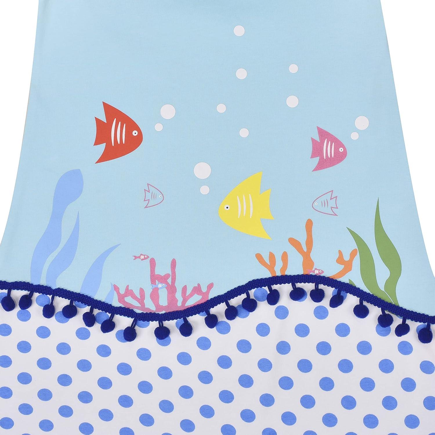 - Sunny Fashion Girls Dress T-Shirt Cotton Bird Embroidered Short Sleeve Size 2-6(Blue Fish Dot)