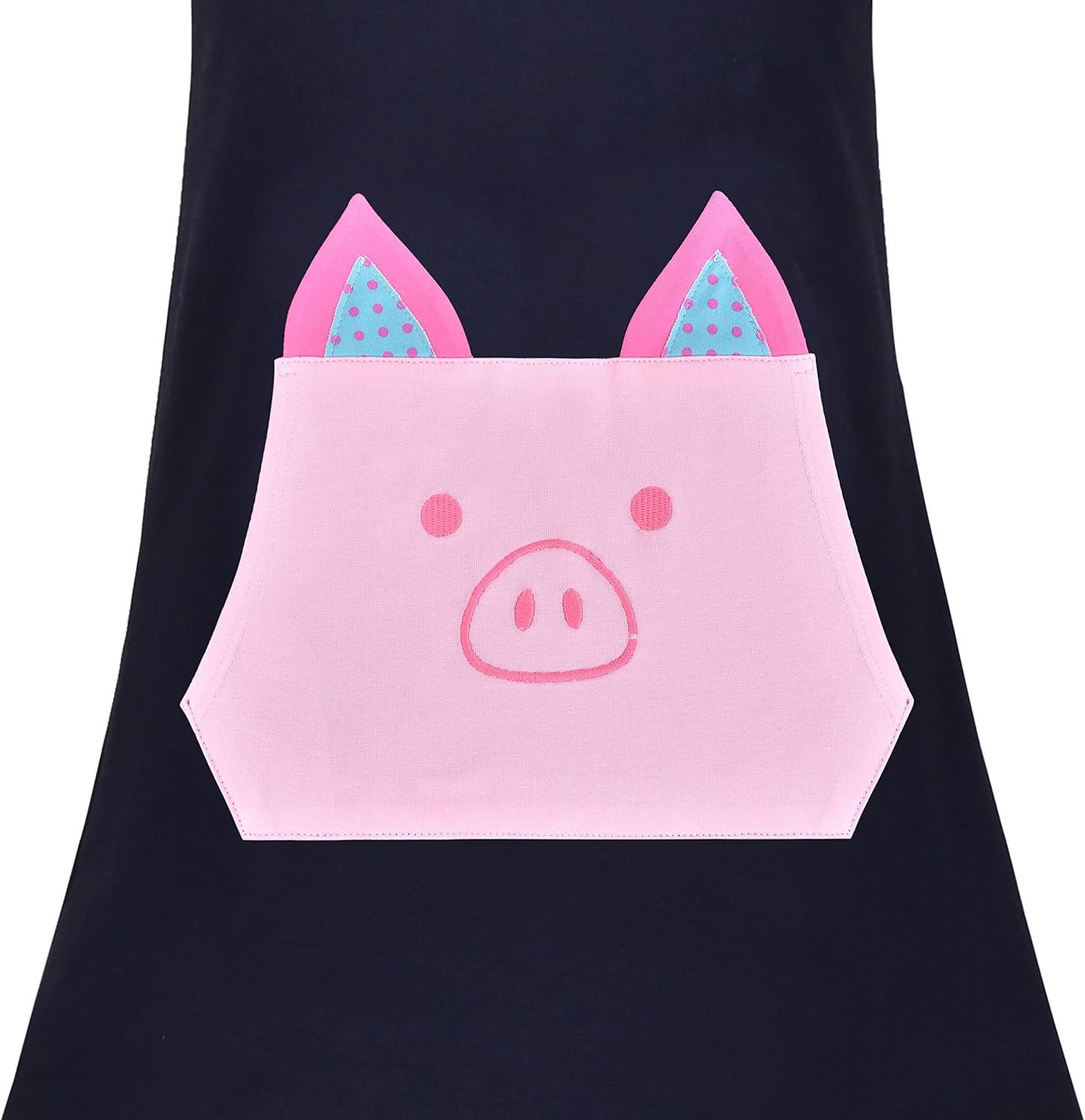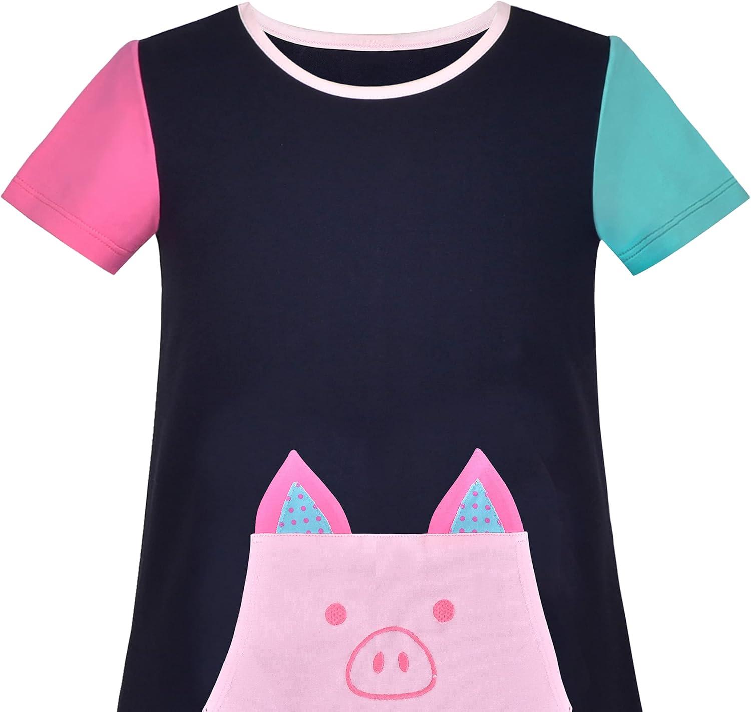 - Sunny Fashion Girls Dress T-Shirt Cotton Bird Embroidered Short Sleeve Size 2-6(Blue Piggy)