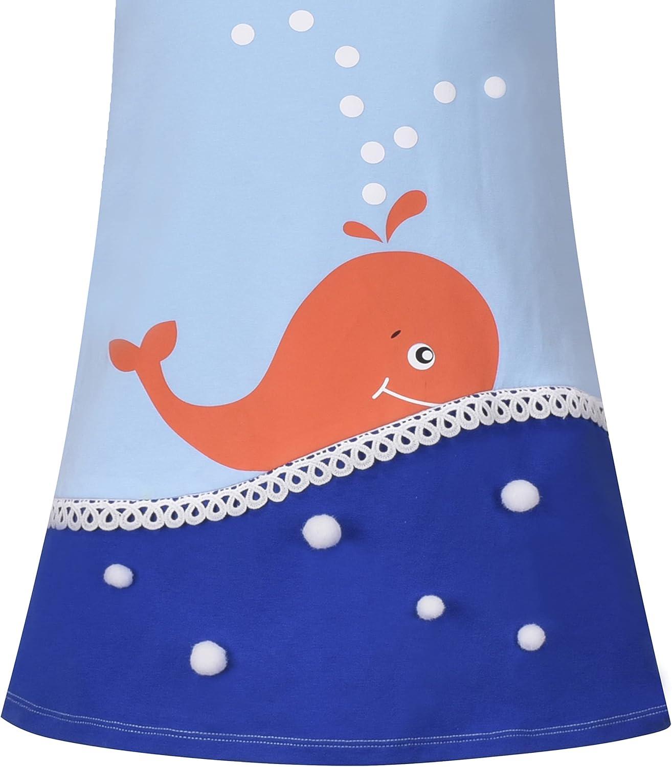 - Sunny Fashion Girls Dress T-Shirt Cotton Bird Embroidered Short Sleeve Size 2-6(Blue Whale)