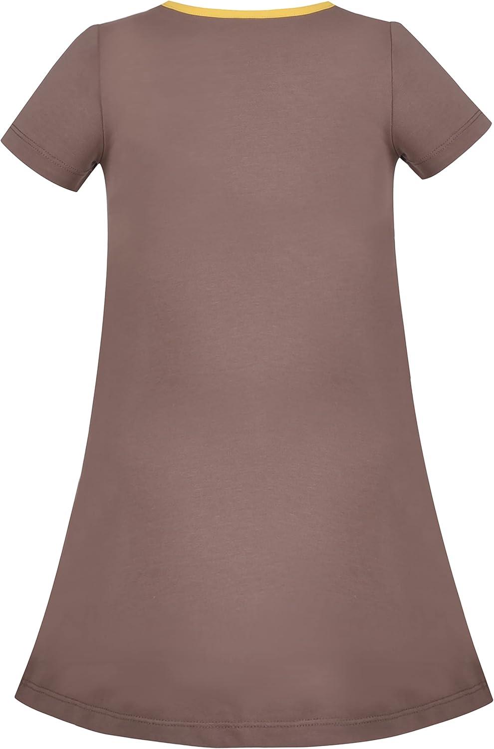 - Sunny Fashion Girls Dress T-Shirt Cotton Bird Embroidered Short Sleeve Size 2-6(Brown Owl)