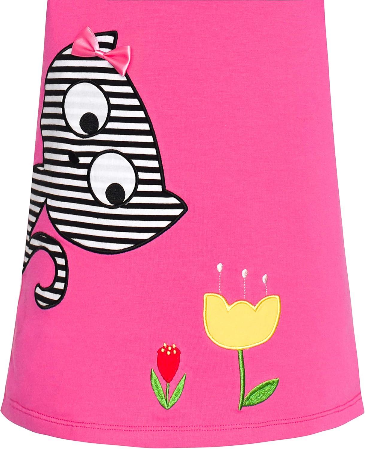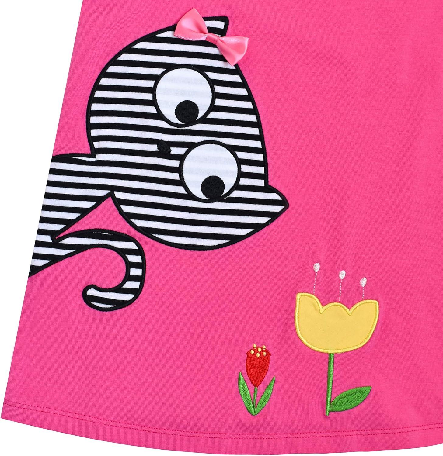 - Sunny Fashion Girls Dress T-Shirt Cotton Bird Embroidered Short Sleeve Size 2-6(Pink Cat)