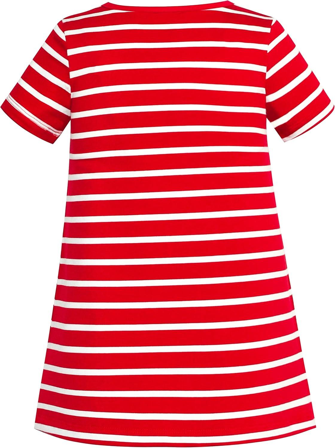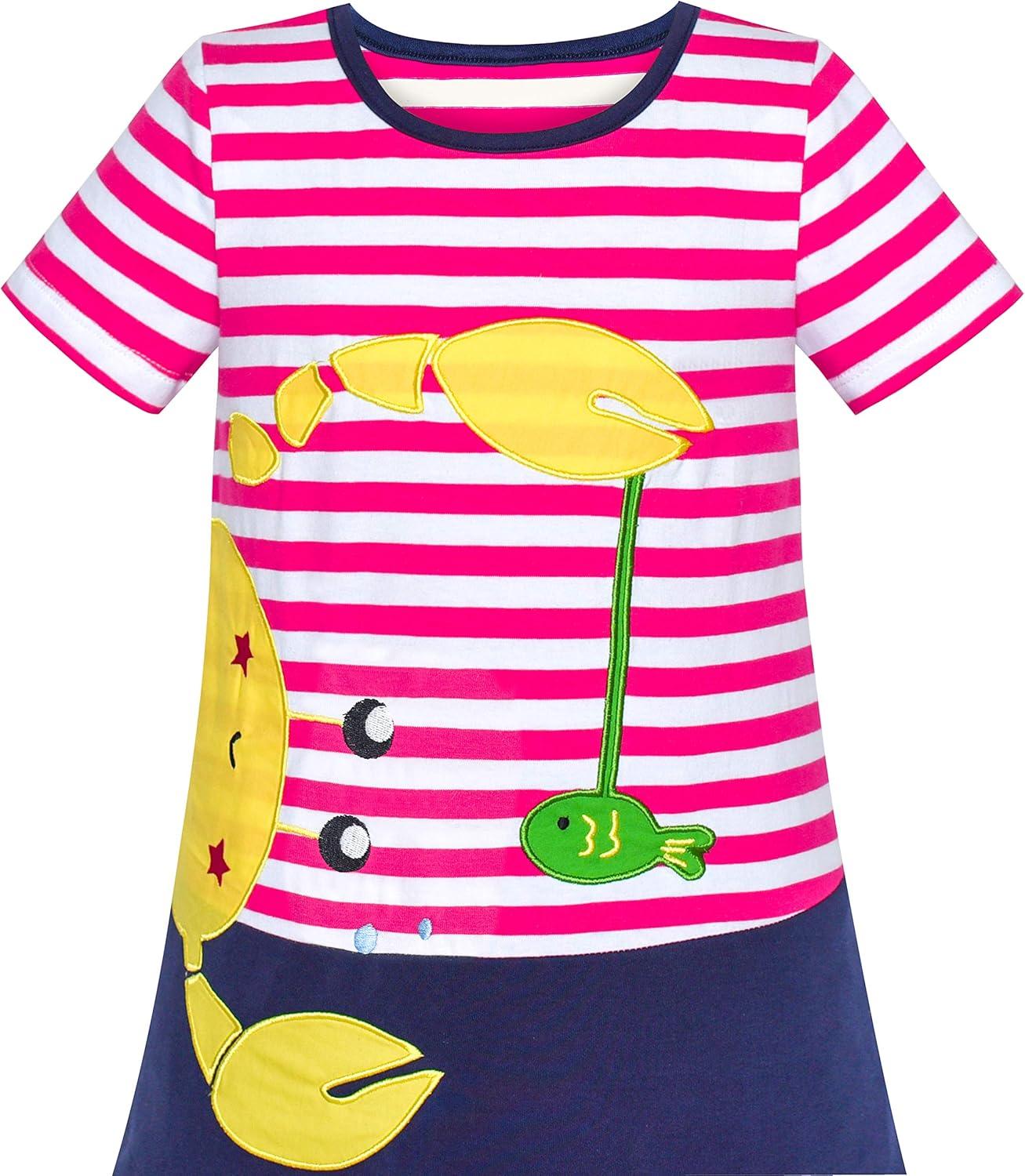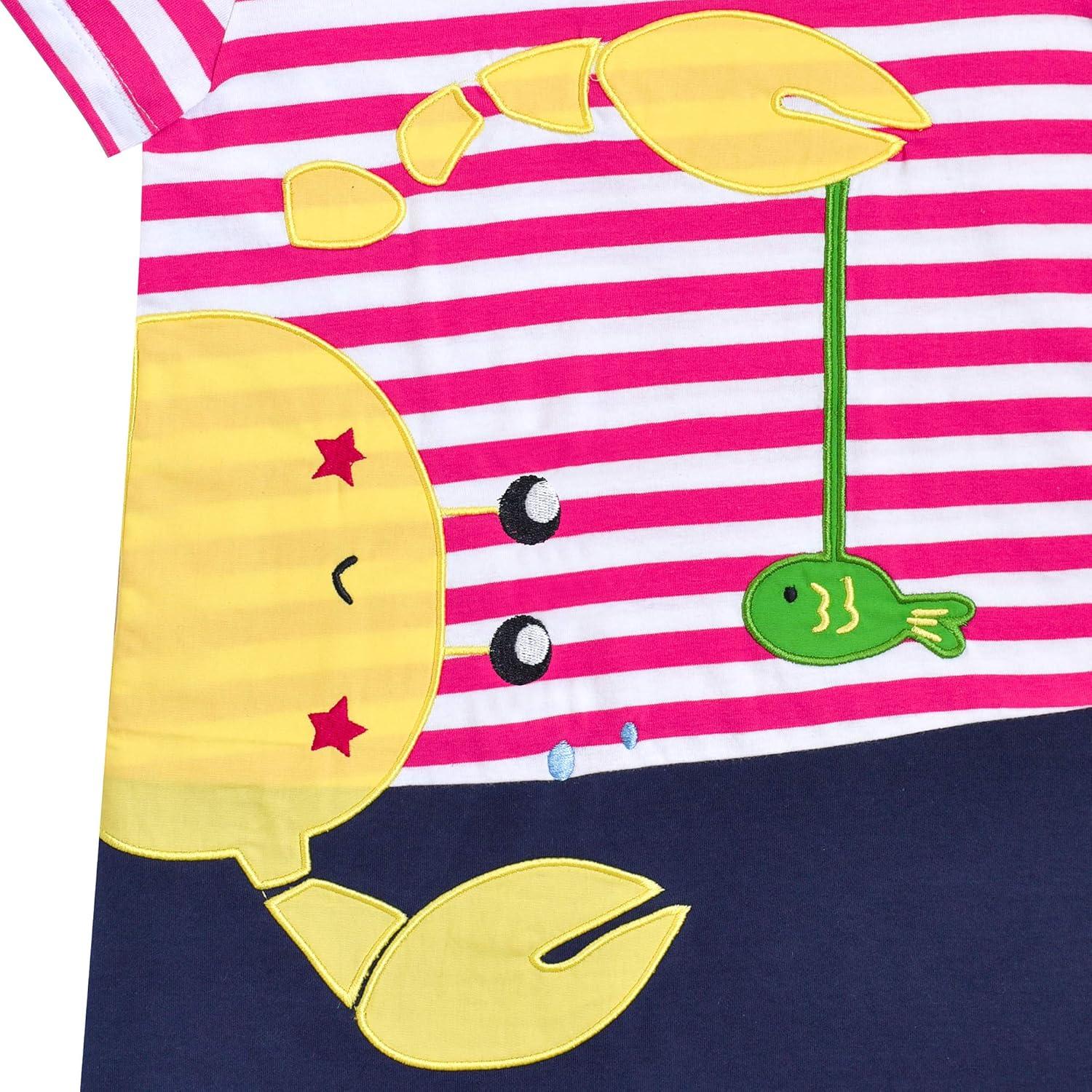 - Sunny Fashion Girls Dress T-Shirt Cotton Bird Embroidered Short Sleeve Size 2-6(Pink Striped)