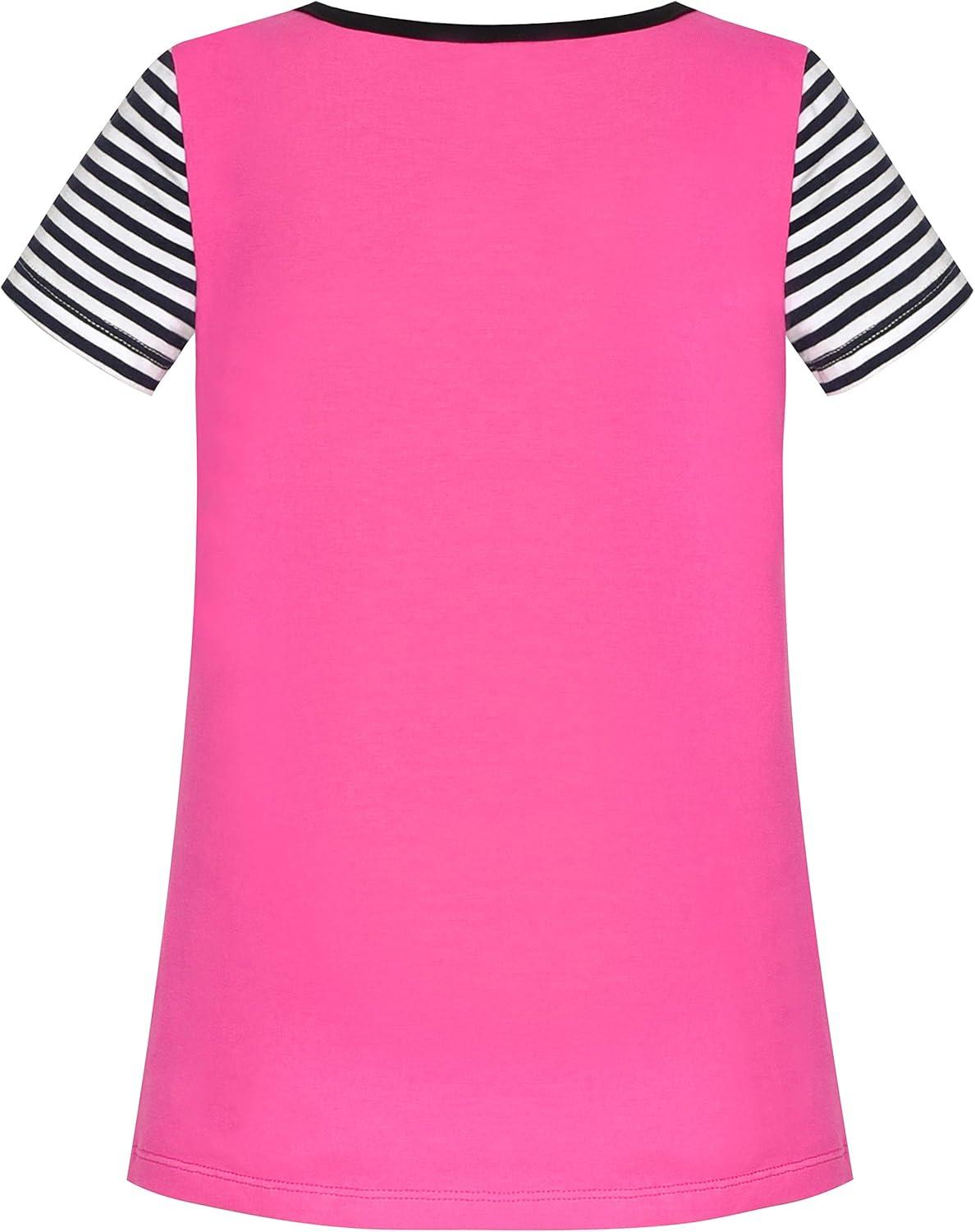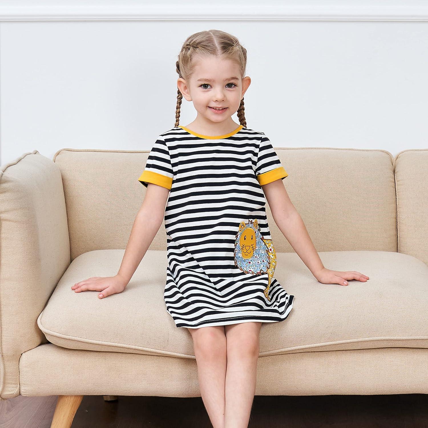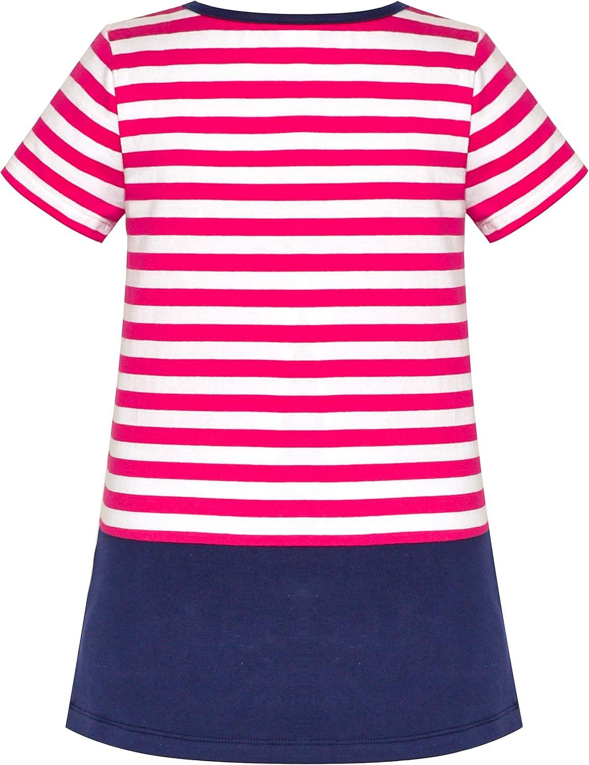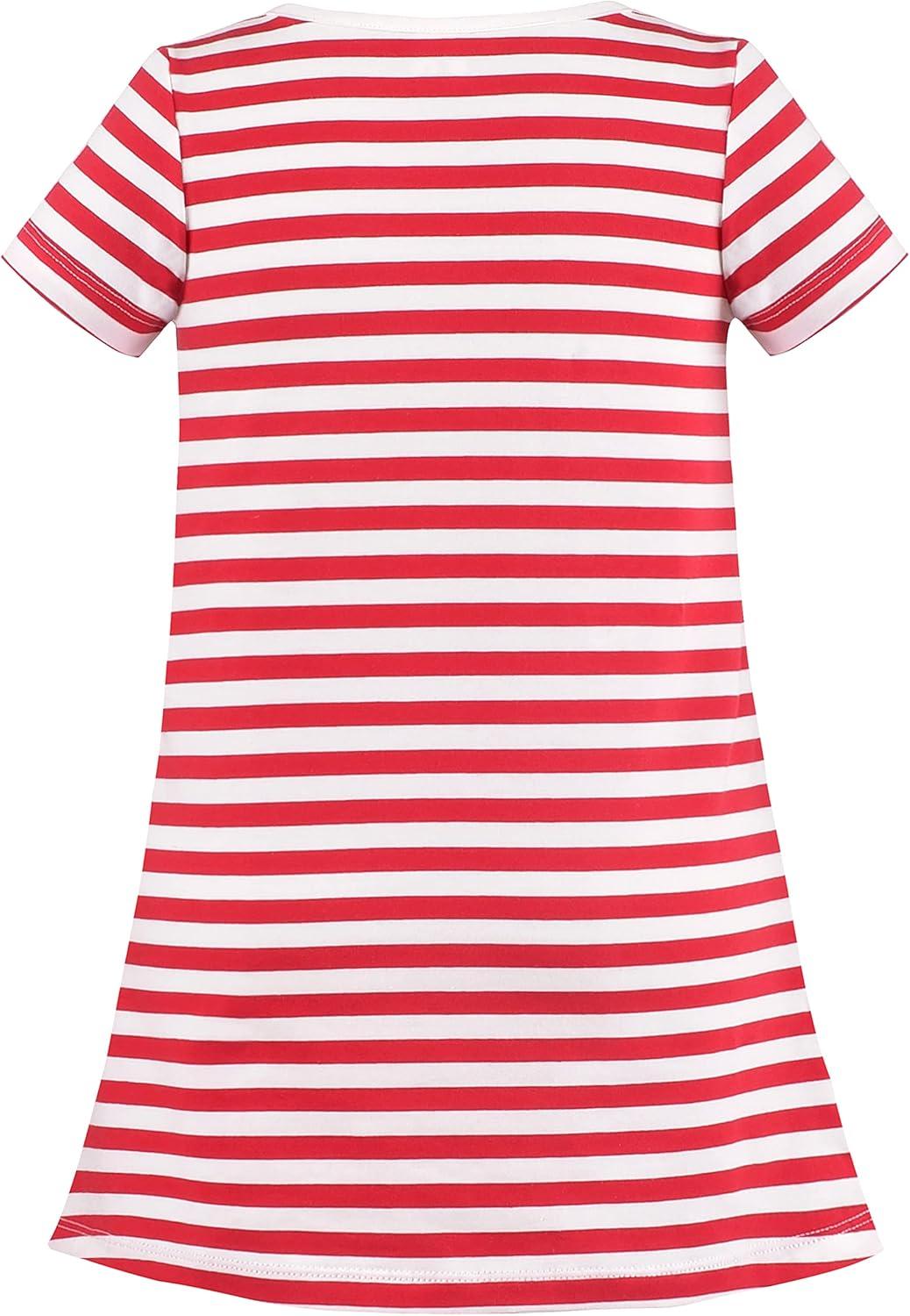 - Sunny Fashion Girls Dress T-Shirt Cotton Bird Embroidered Short Sleeve Size 2-6(Pink Striped)