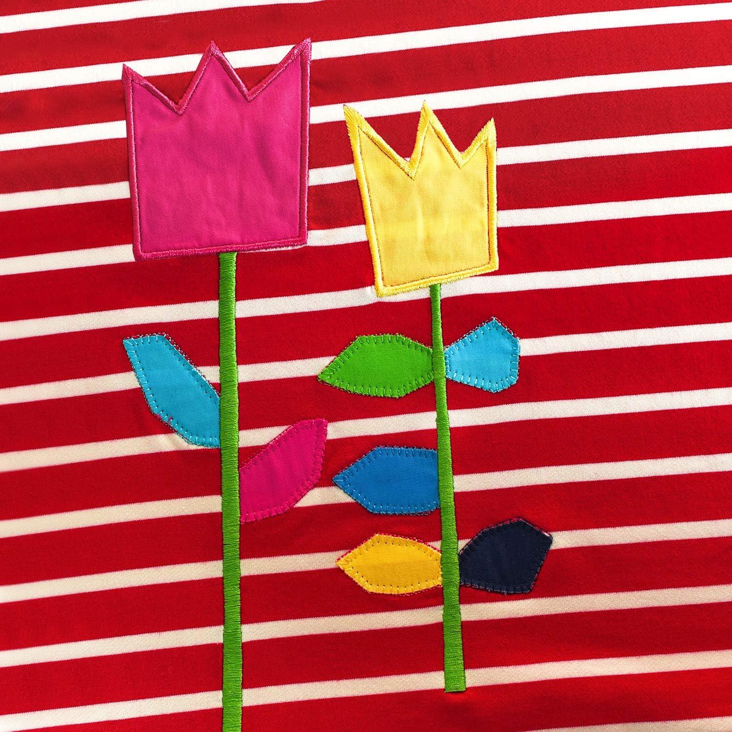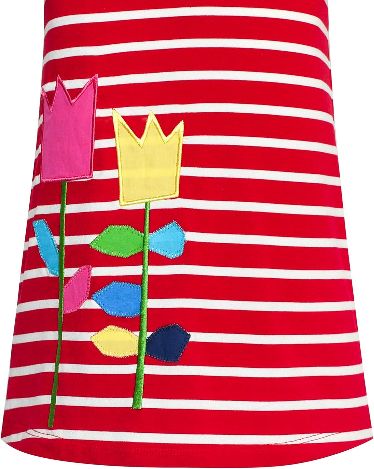 - Sunny Fashion Girls Dress T-Shirt Cotton Bird Embroidered Short Sleeve Size 2-6(Pink Green Striped)