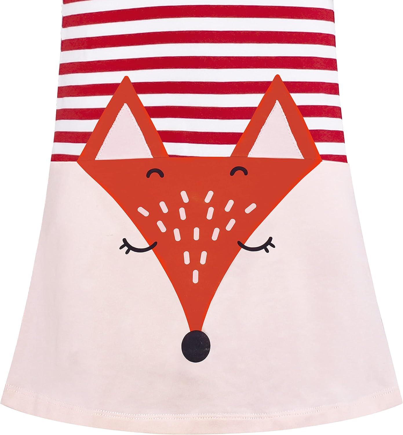 - Sunny Fashion Girls Dress T-Shirt Cotton Bird Embroidered Short Sleeve Size 2-6(Red Fox)