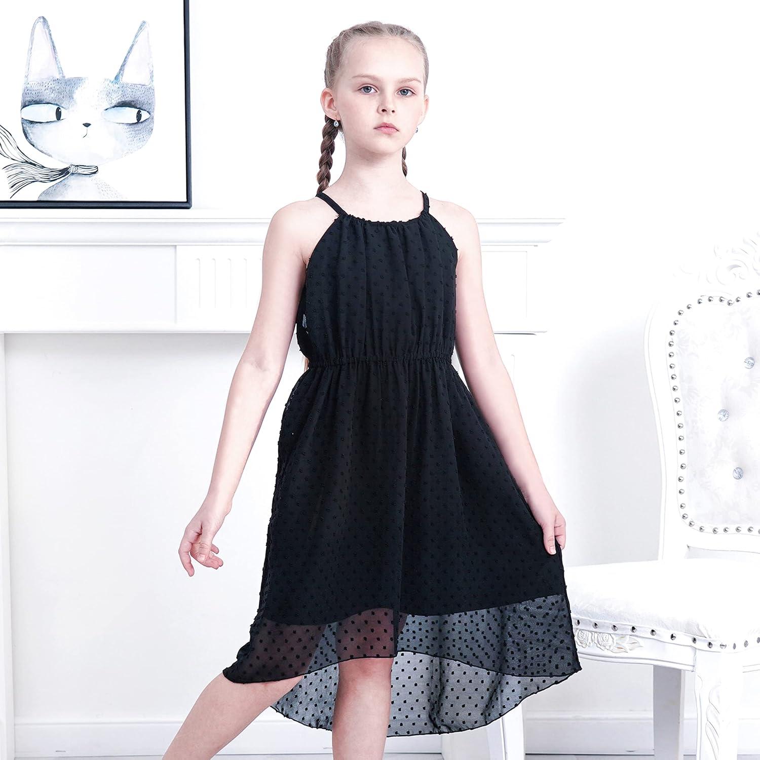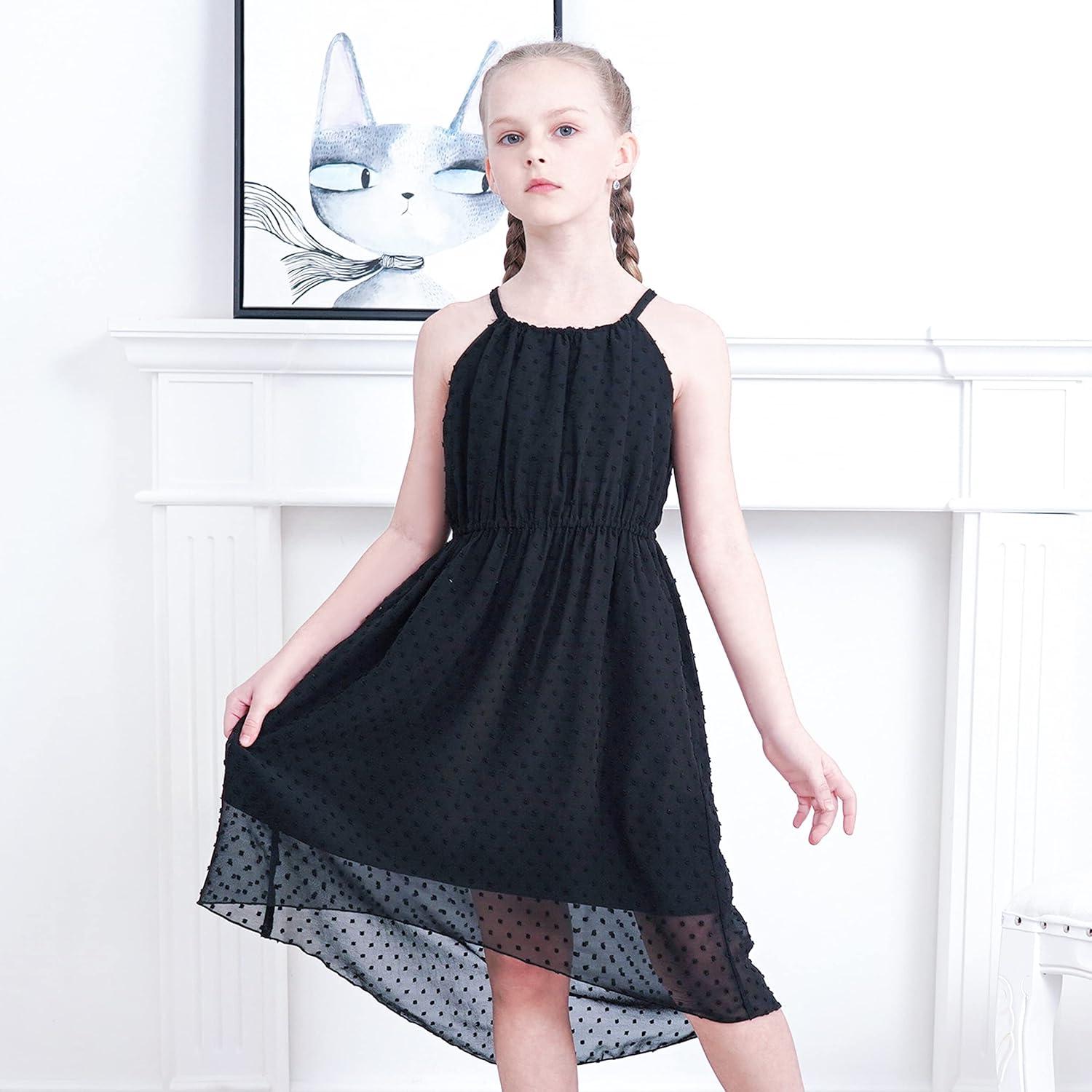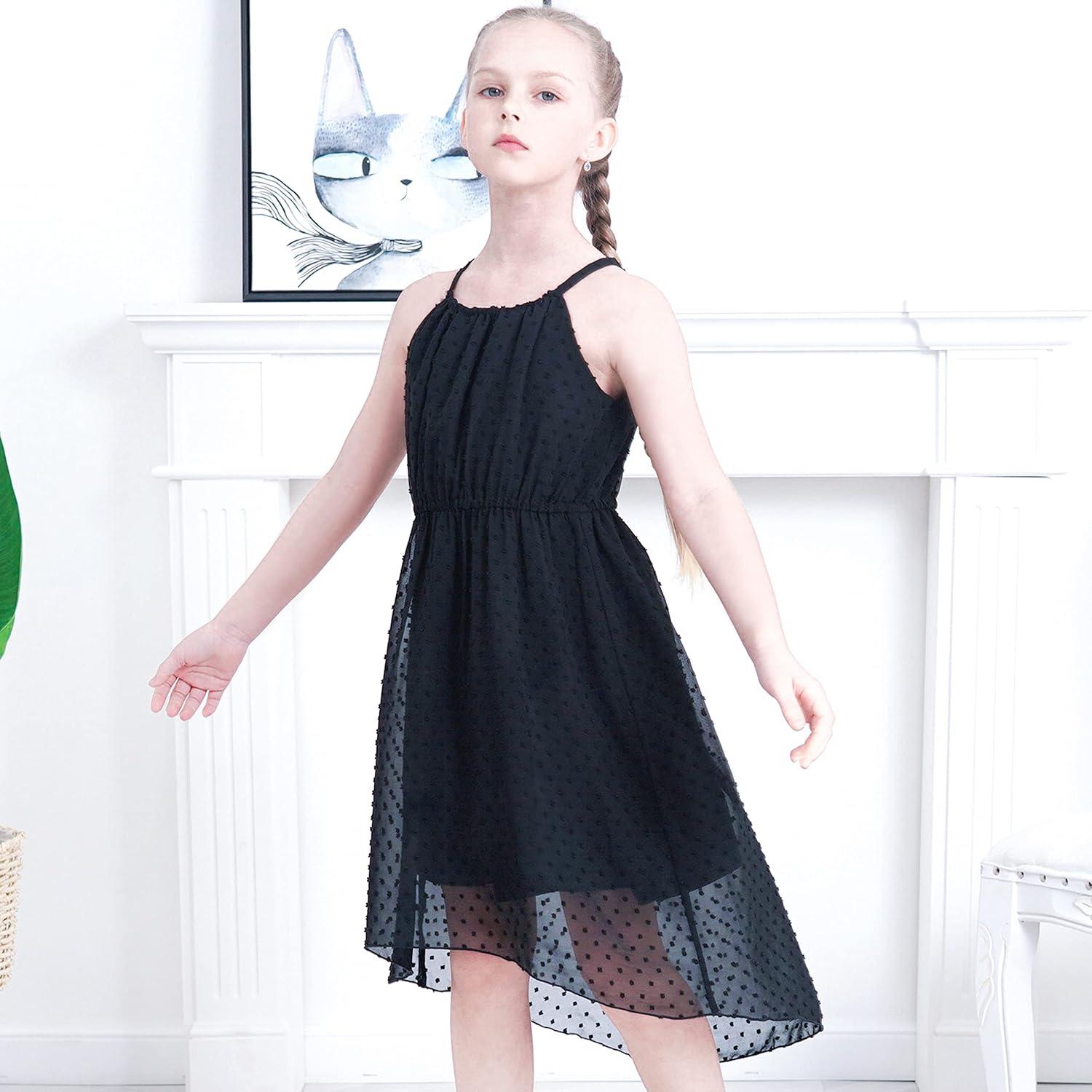 - Sunny Fashion Girls Dress Yellow Leaf Sleeveless Summer Party Size 6-12(Red Swiss Dot)