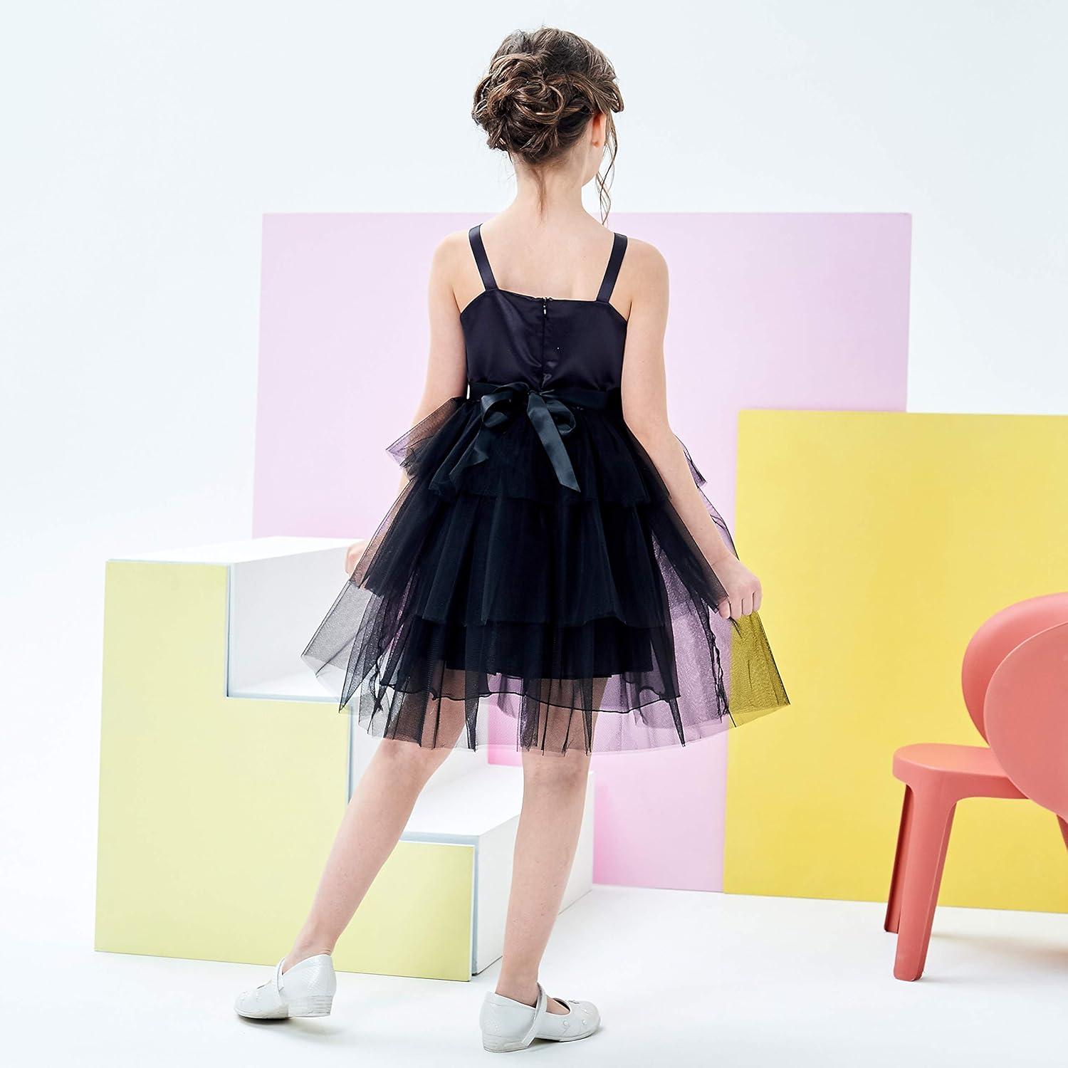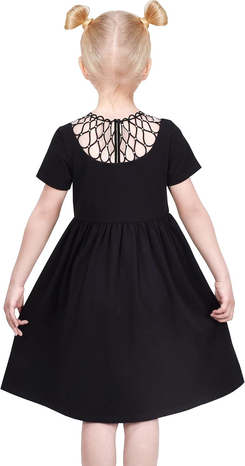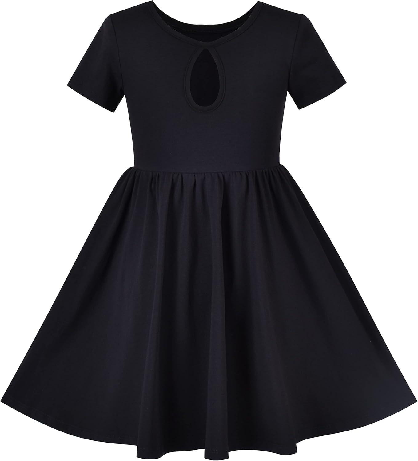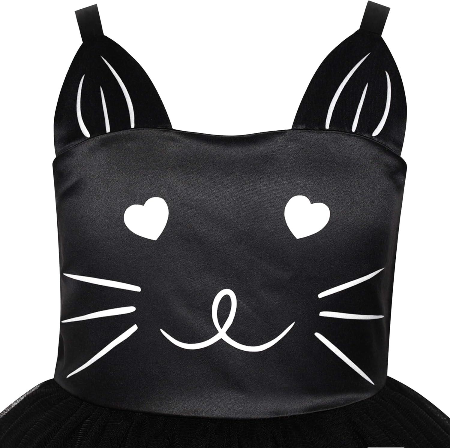 - Sunny Fashion Girls Dress Cat Face Black Tower Ruffle Dancing Party Size 4-10(Black)