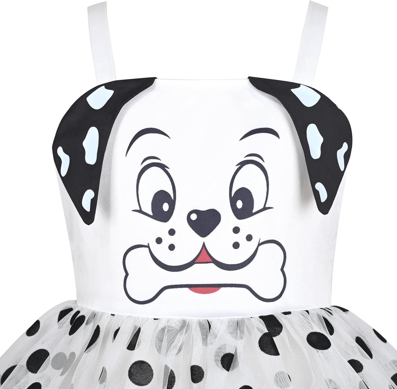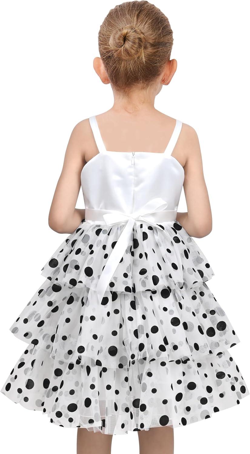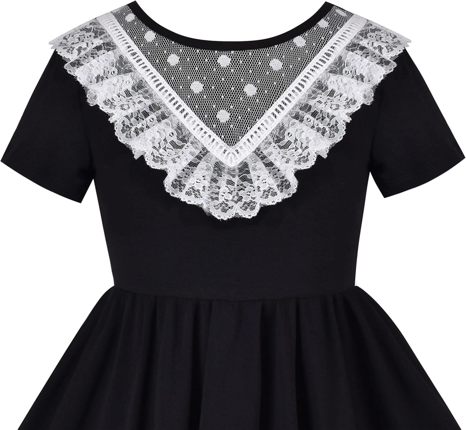 - Sunny Fashion Girls Dress Cat Face Black Tower Ruffle Dancing Party Size 4-10(Black Dot)