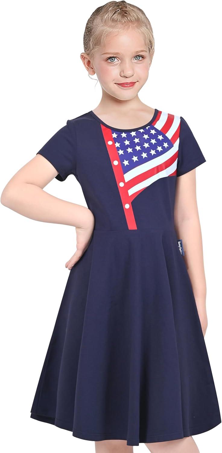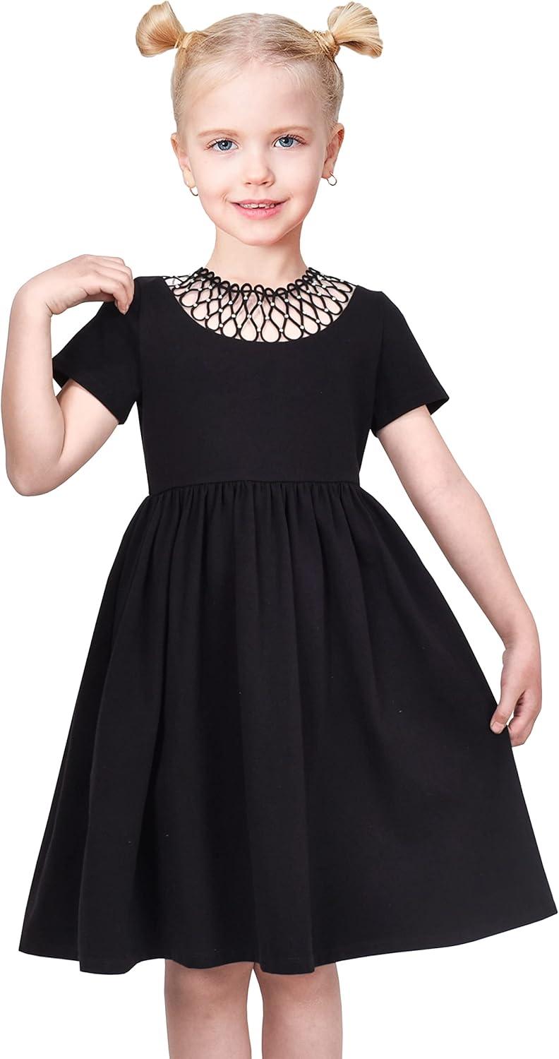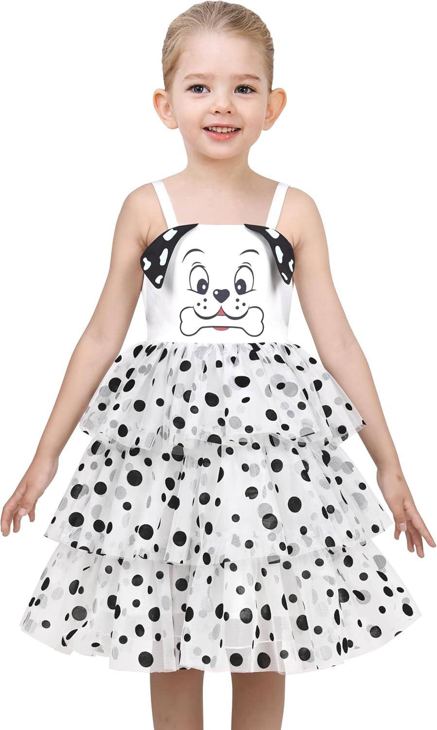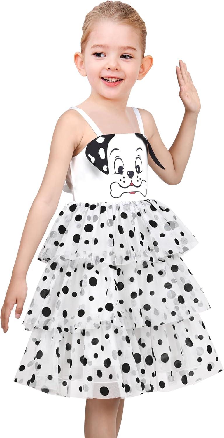 - Sunny Fashion Girls Dress Cat Face Black Tower Ruffle Dancing Party Size 4-10(Black Dot)
