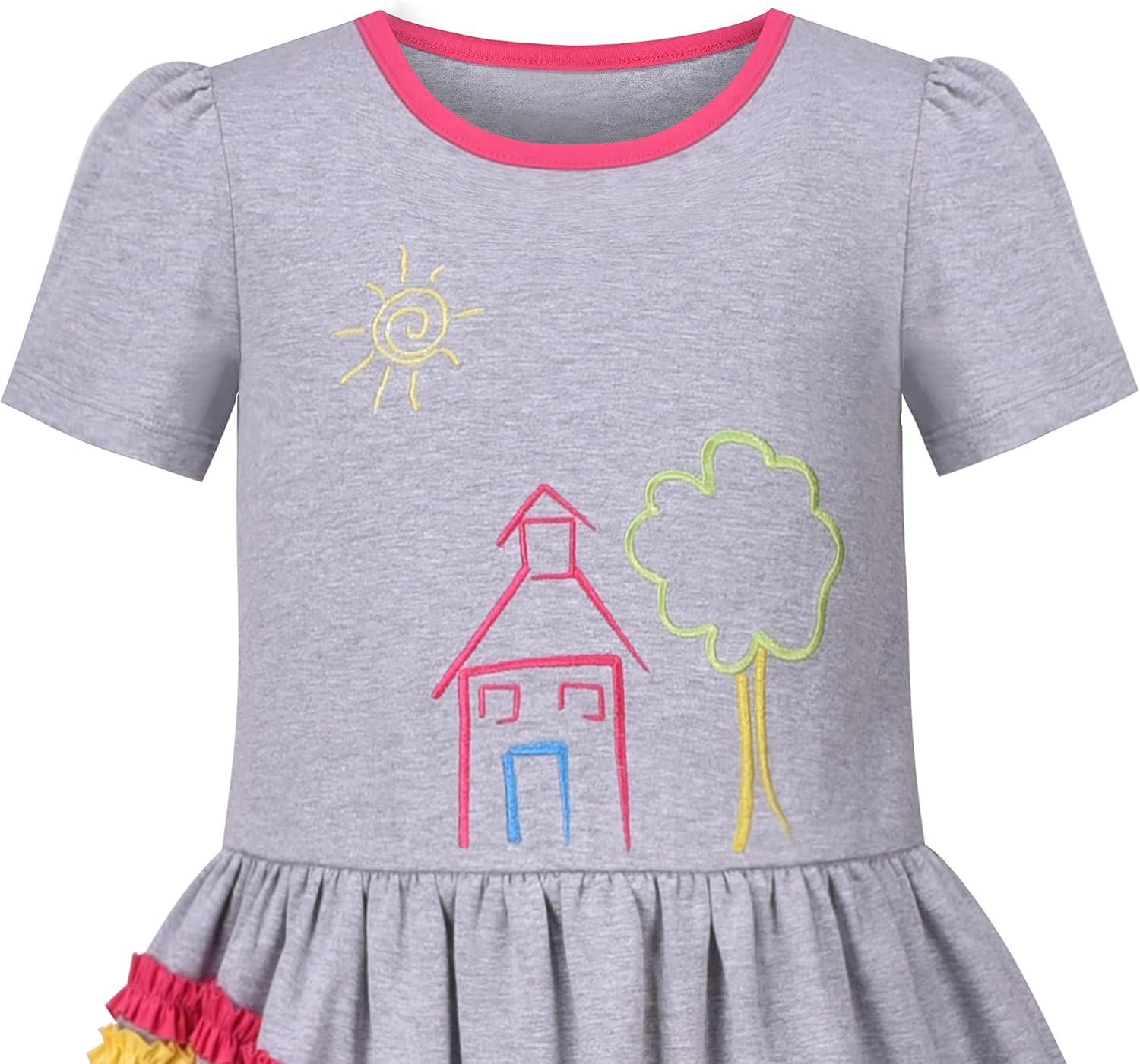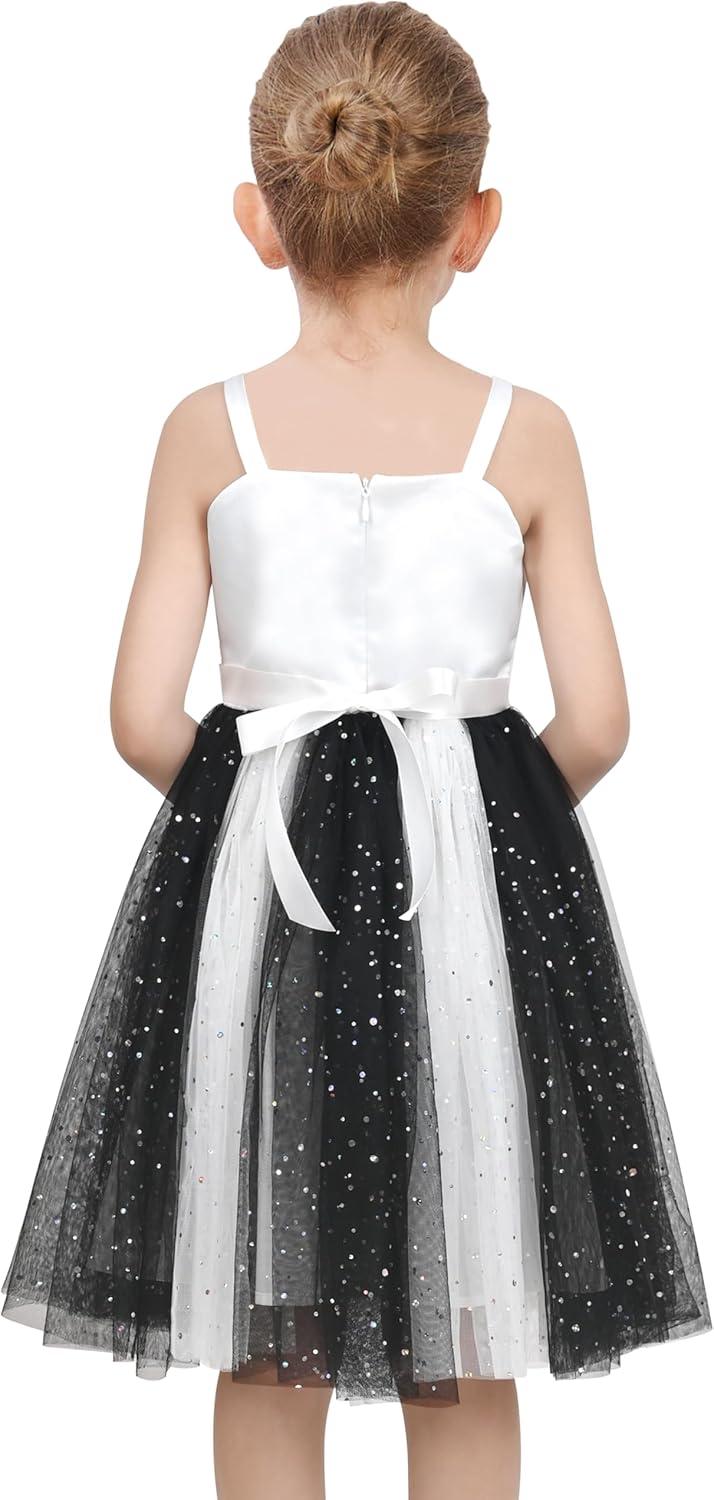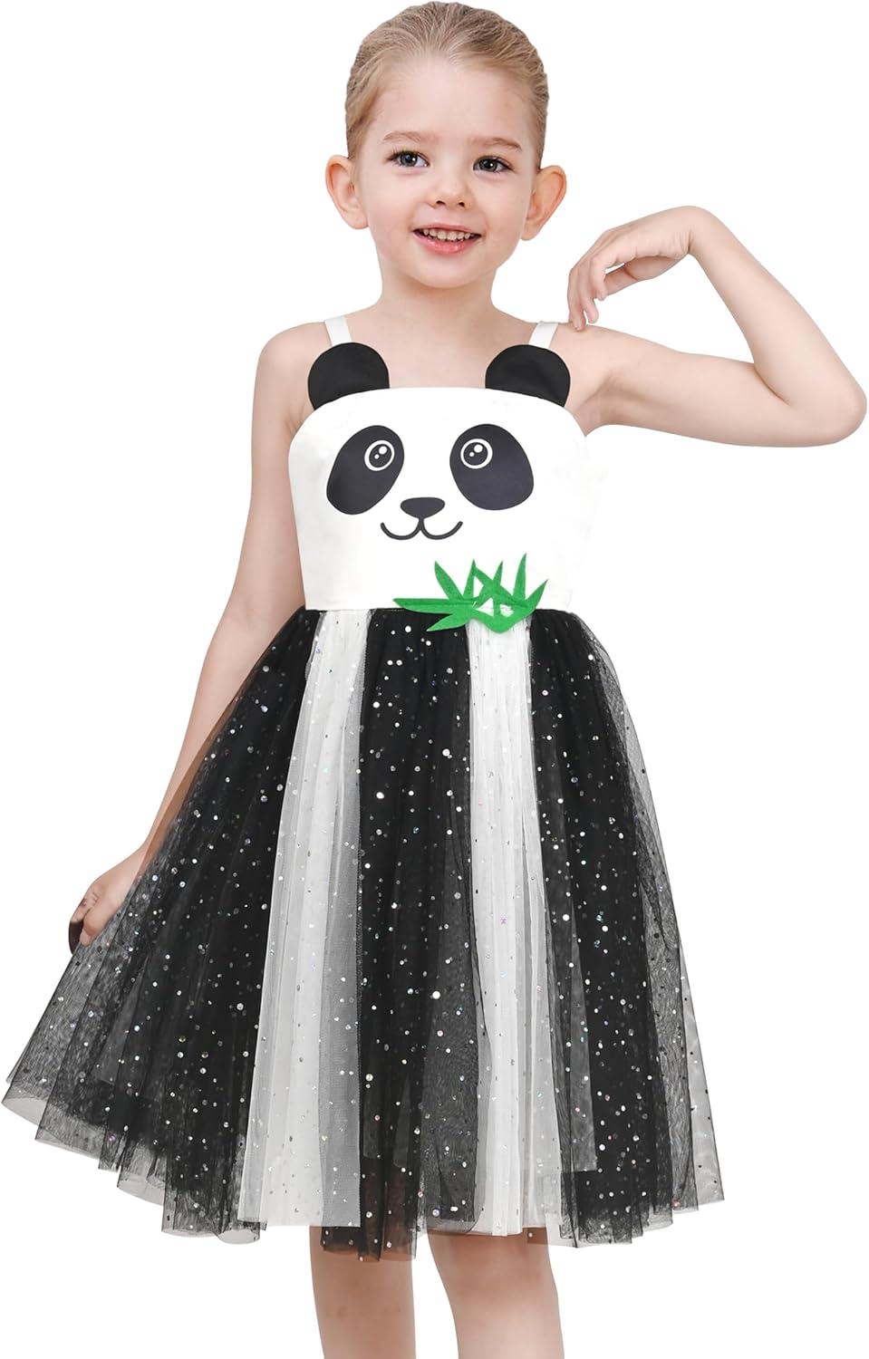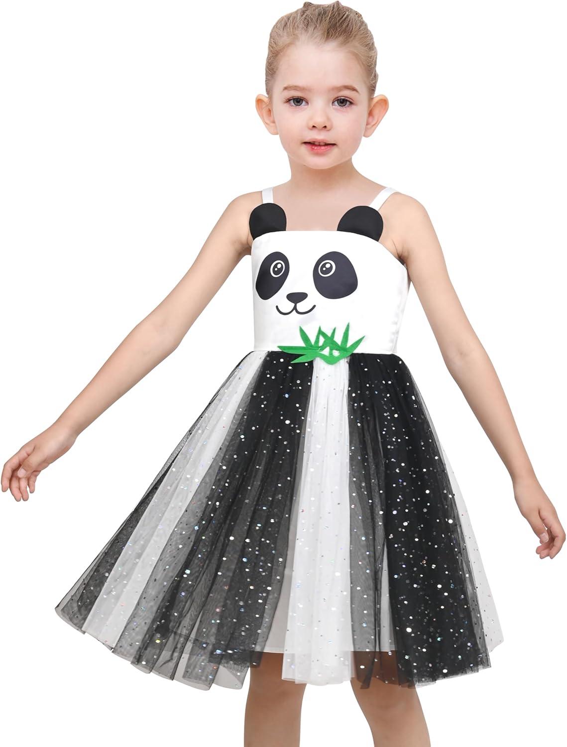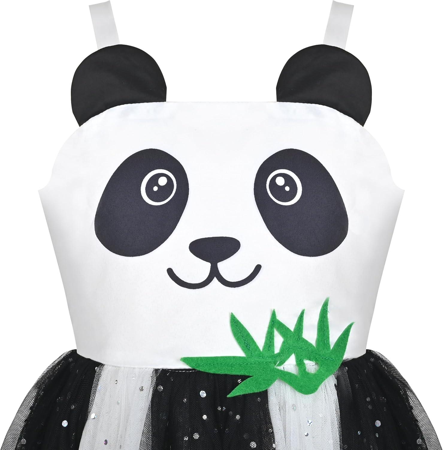 - Sunny Fashion Girls Dress Cat Face Black Tower Ruffle Dancing Party Size 4-10(Black Panda)