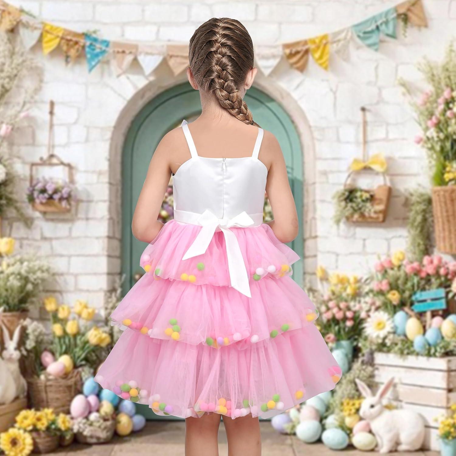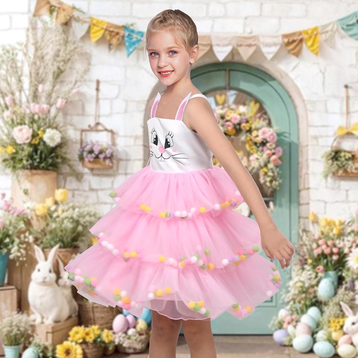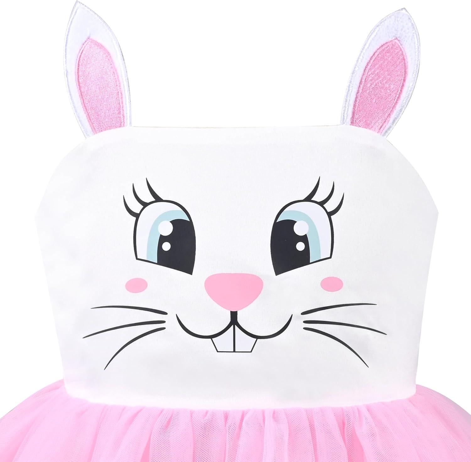 - Sunny Fashion Girls Dress Cat Face Black Tower Ruffle Dancing Party Size 4-10(Pink Bunny)