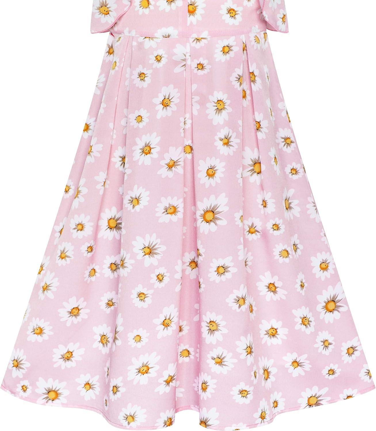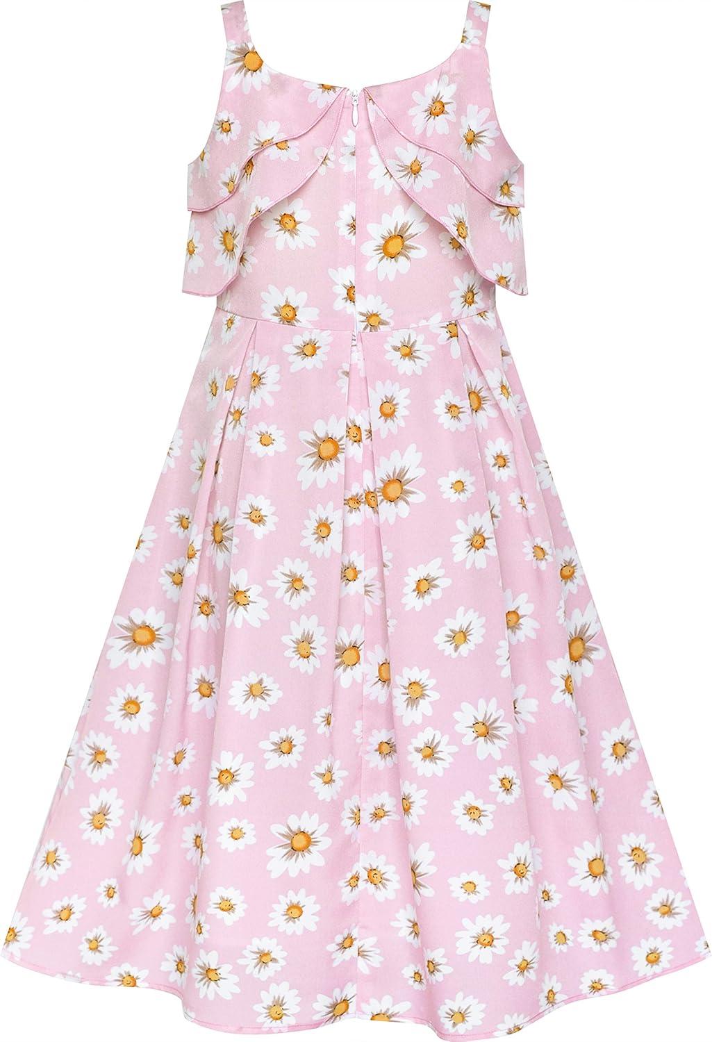 - Sunny Fashion Girls Dress Chiffon Suspender Yellow Floral Ruffle Sleeveless(Pink Flower)
