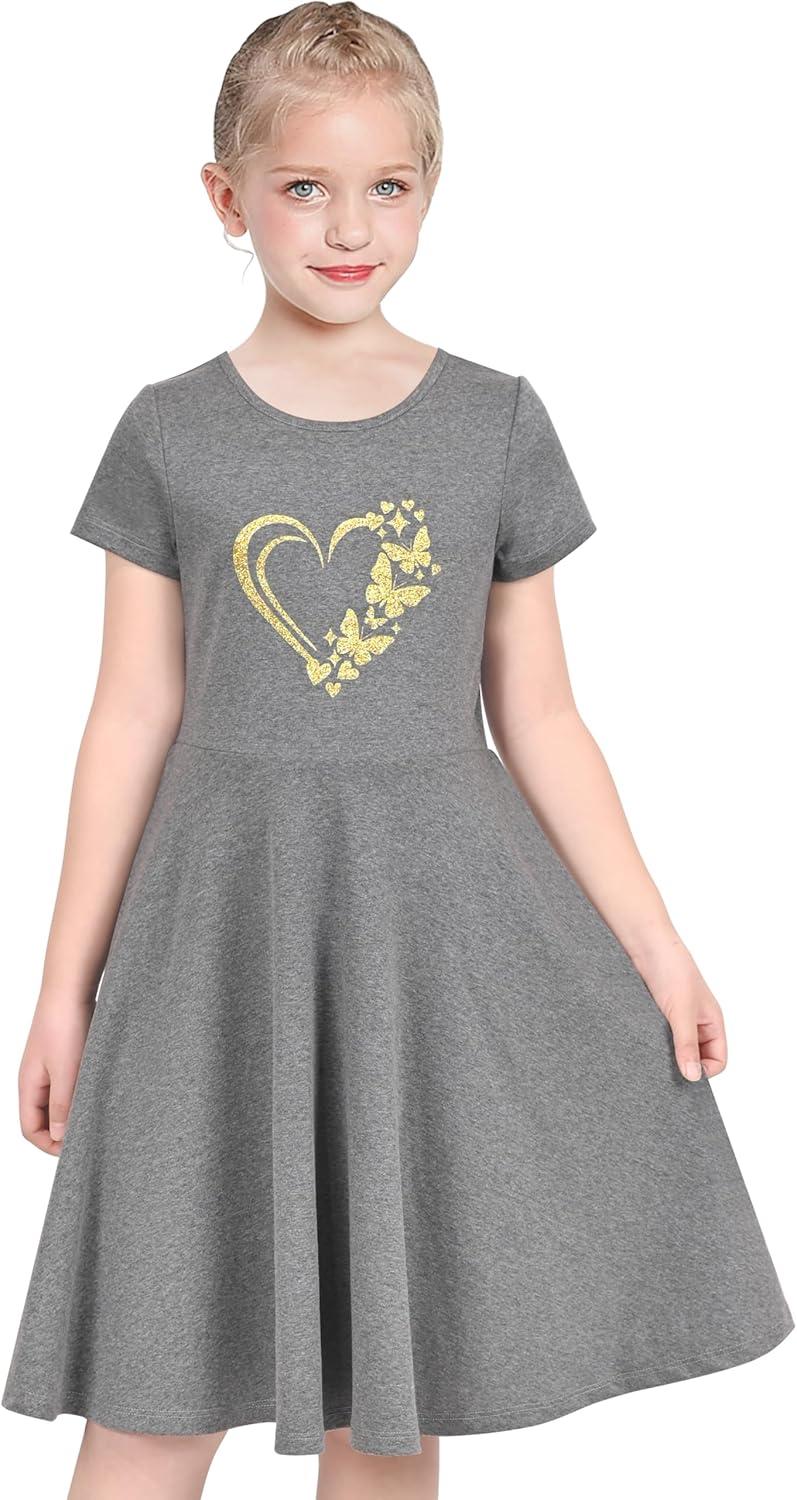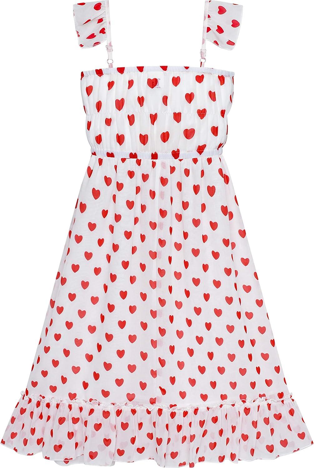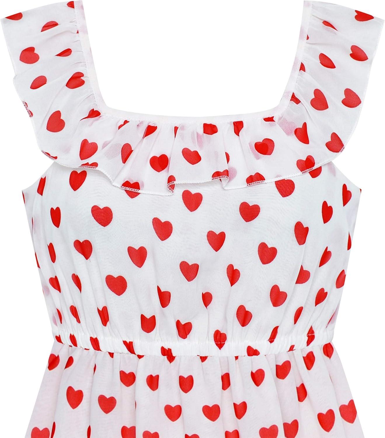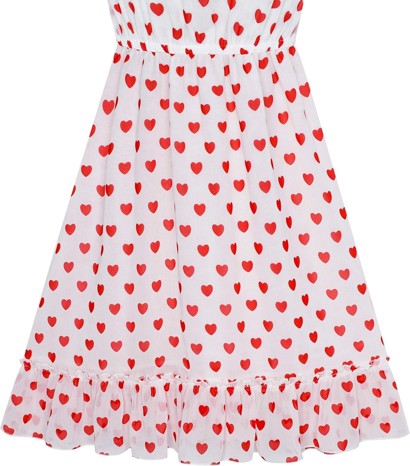 - Sunny Fashion Girls Dress Chiffon Suspender Yellow Floral Ruffle Sleeveless(Red Heart)